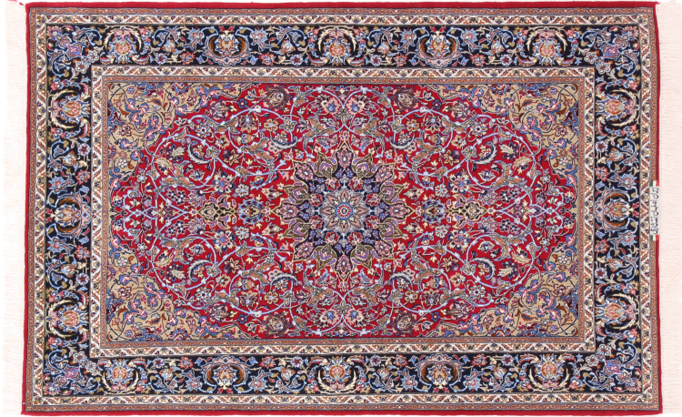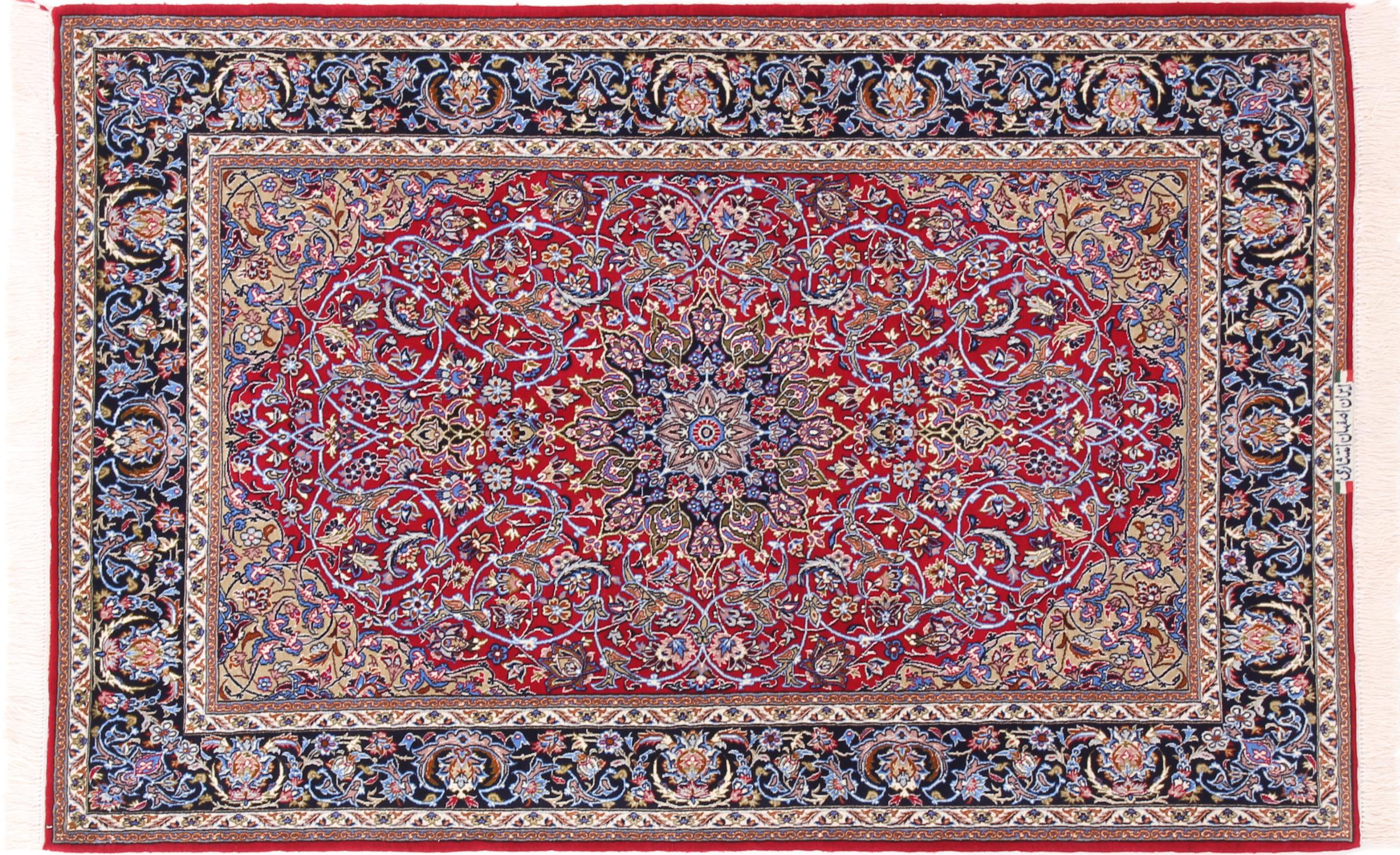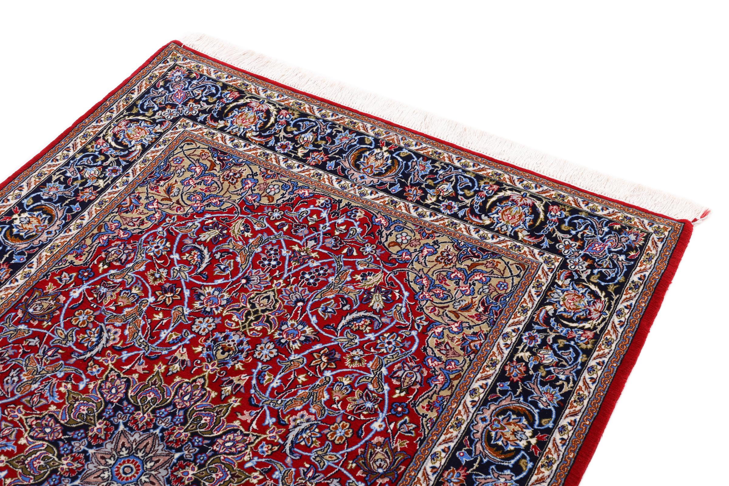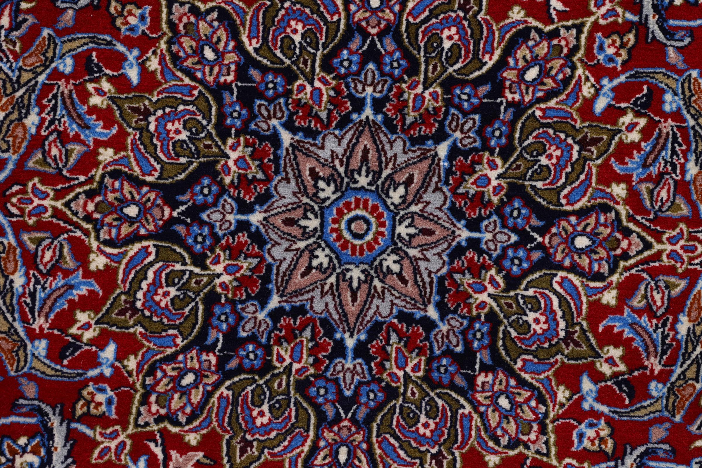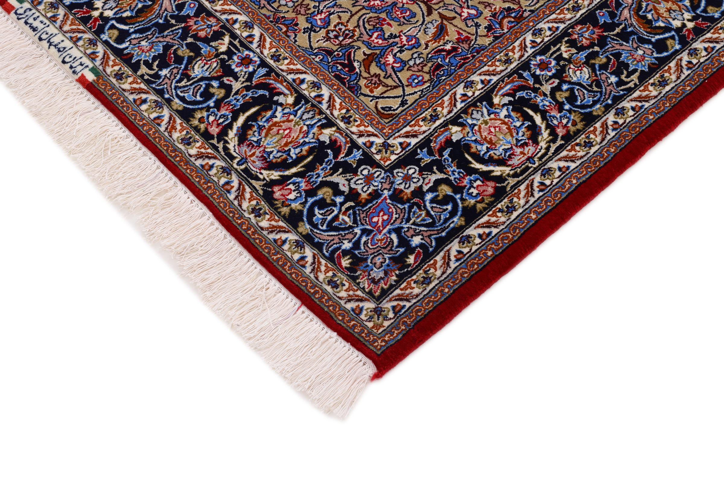 This Isfahan carpet is a piece of the most traditional handicraft. It has been made by hand with the most beautiful patterns. In fact, Isfahan carpets are known to count to the finest Persian carpets. This one has been knotted in Isfahan, which is famous of being the most beautiful city in Iran. The carpet is an exceptionally piece of art.