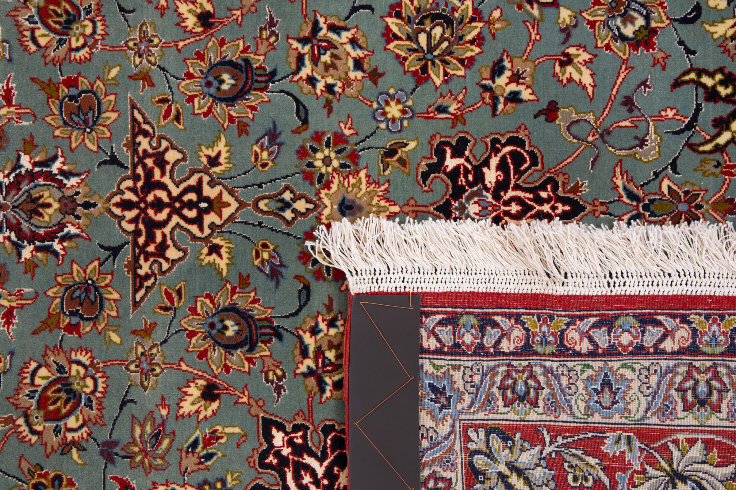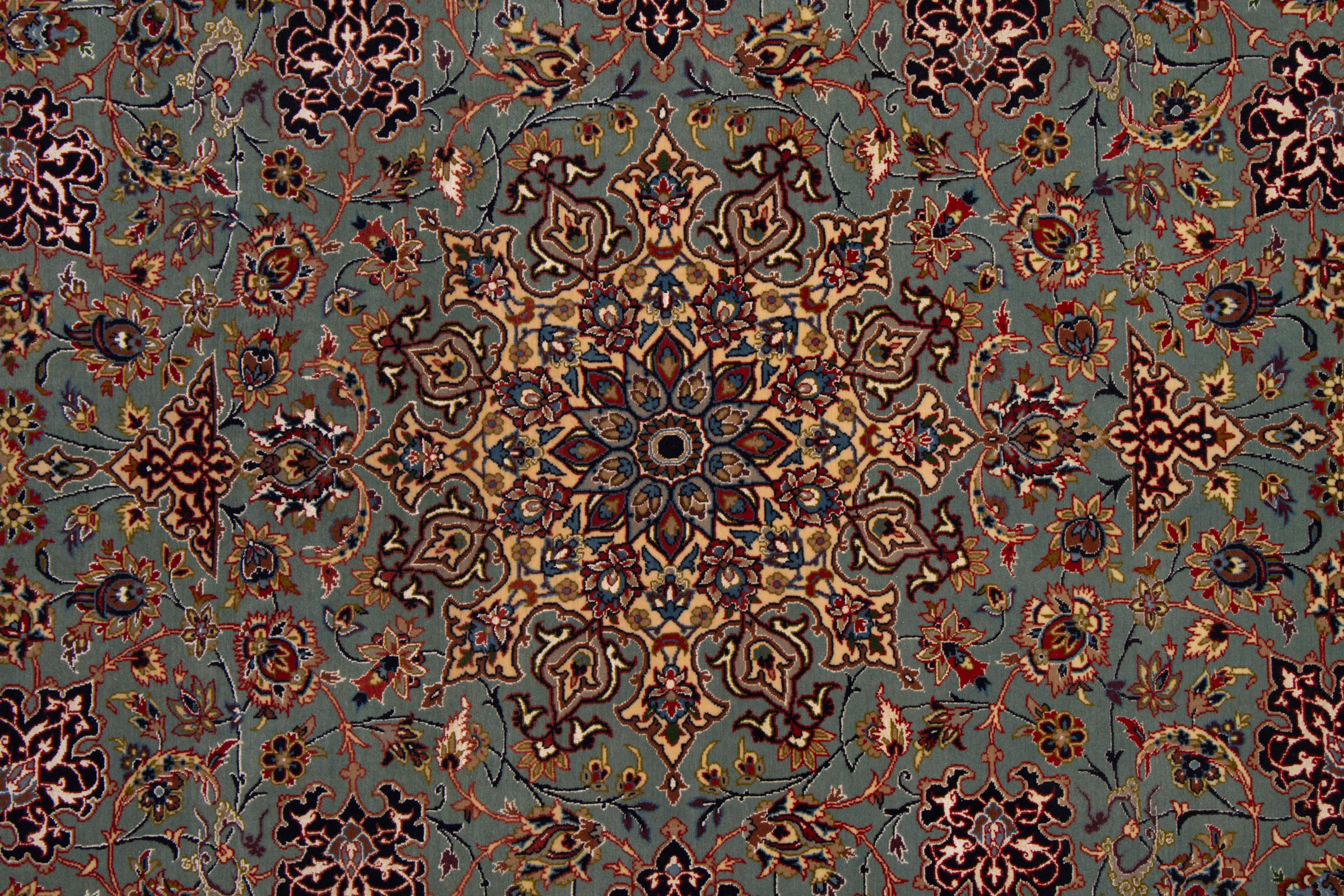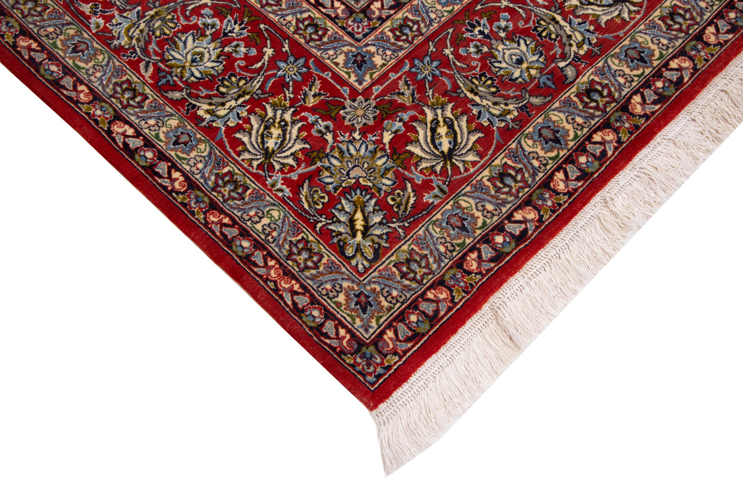 This Isfahan carpet is a piece of the most traditional handicraft. It has been made by hand with the most beautiful patterns. In fact, Isfahan carpets are known to count to the finest Persian carpets. This one has been knotted in Isfahan, which is famous of being the most beautiful city in Iran. The carpet is an exceptionally piece of art.