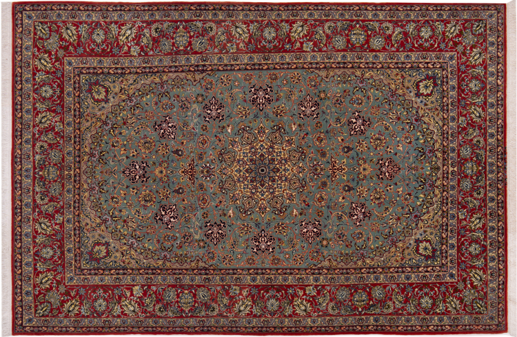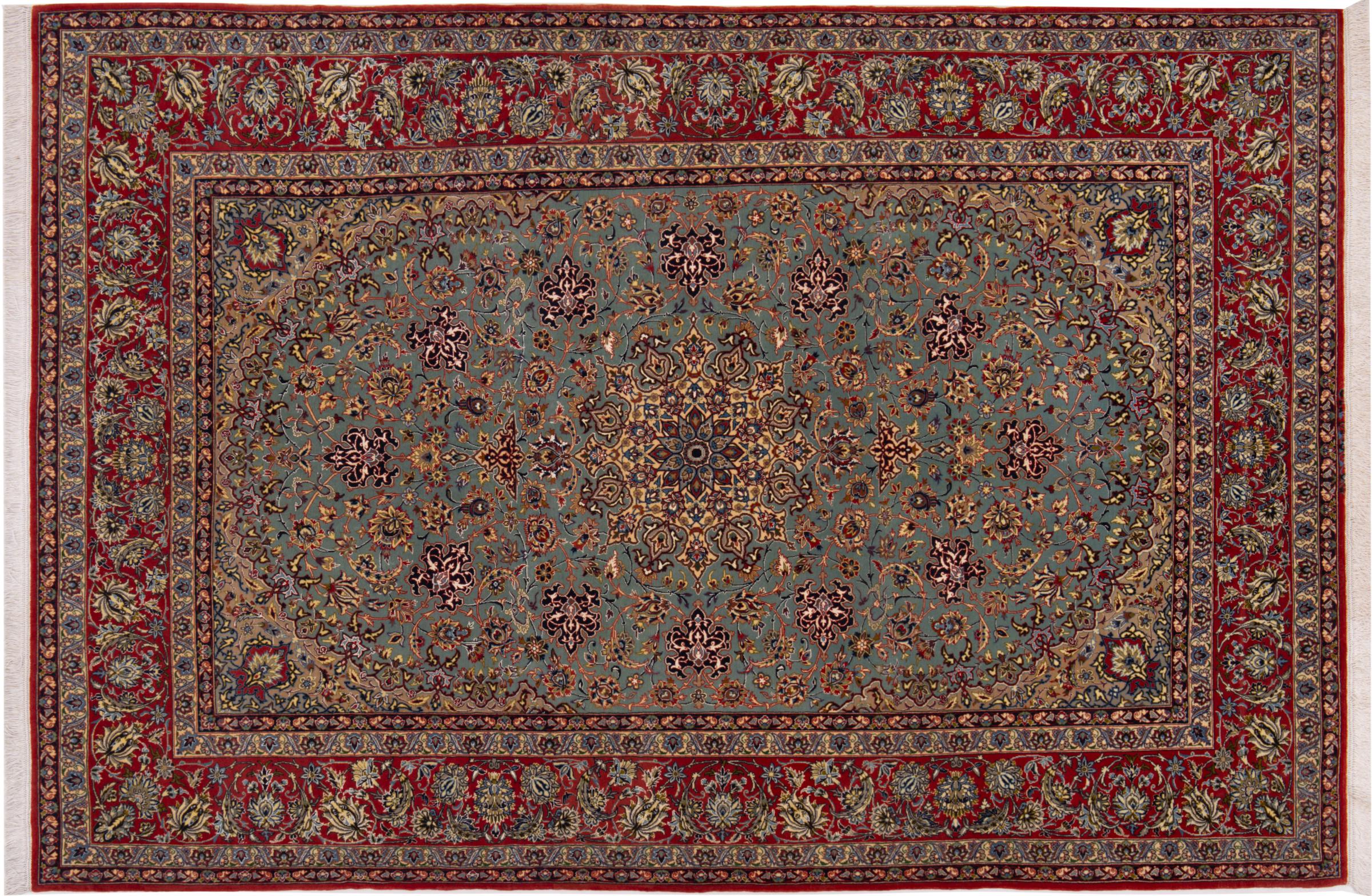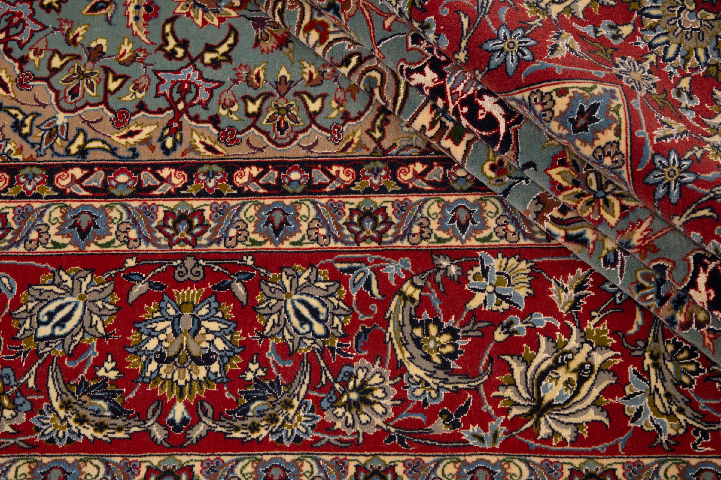 This Isfahan carpet is a piece of the most traditional handicraft. It has been made by hand with the most beautiful patterns. In fact, Isfahan carpets are known to count to the finest Persian carpets. This one has been knotted in Isfahan, which is famous of being the most beautiful city in Iran. The carpet is an exceptionally piece of art.