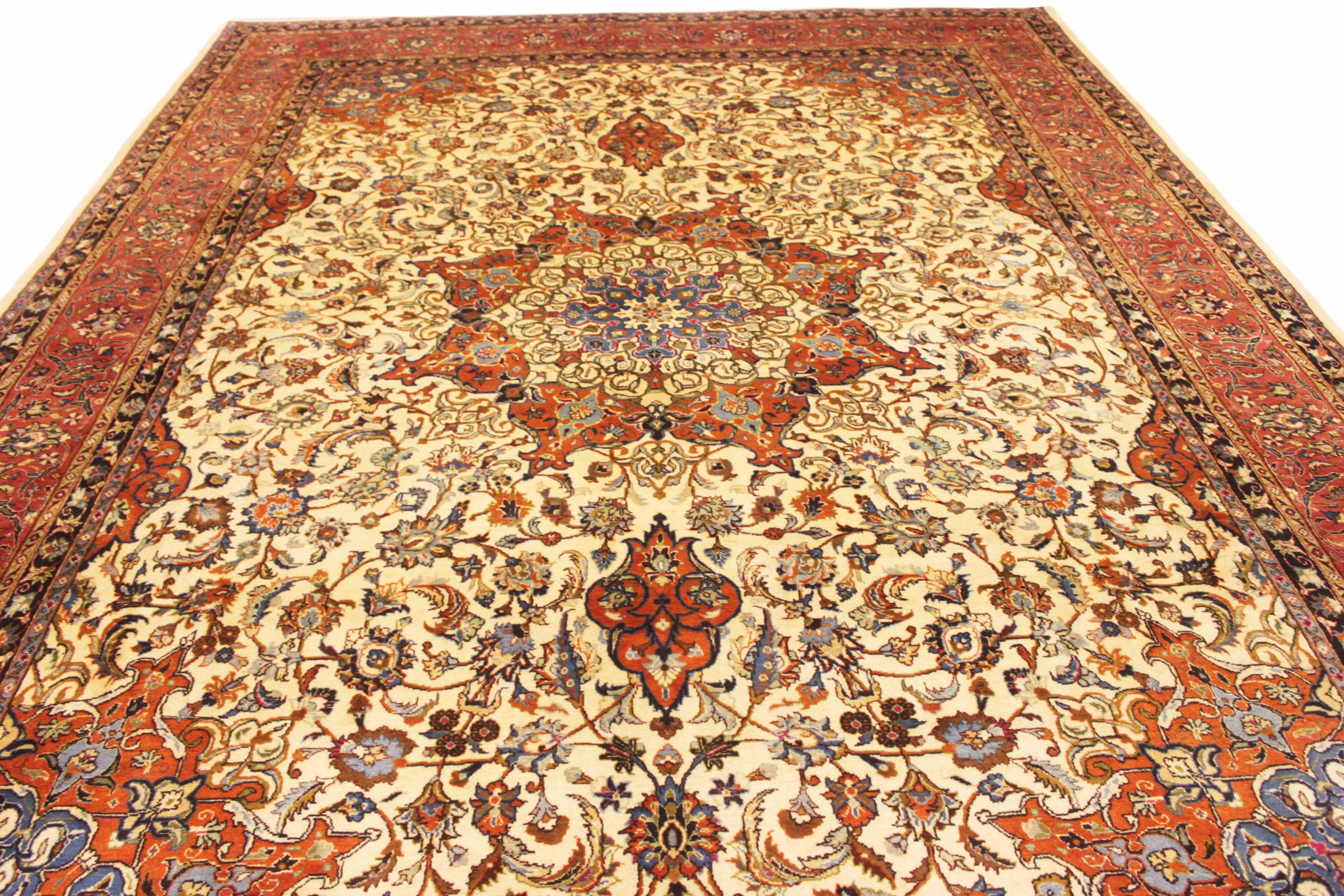 This carpet comes from Iran (formerly Persia) and as a Persian rug enjoys probably the highest reputation among all hand-knotted rug types. No other region looks back on such a long tradition in rug making as Iran. Thus, the probably finest and most elaborate rugs originate here. The robustness, durability and quality of the Persian knot are still unsurpassed today. Persian rugs are usually named after their region of origin. For instance, a Nain, a Ghom as well as an Isfahan carpet comes from the city of the same name in Iran.