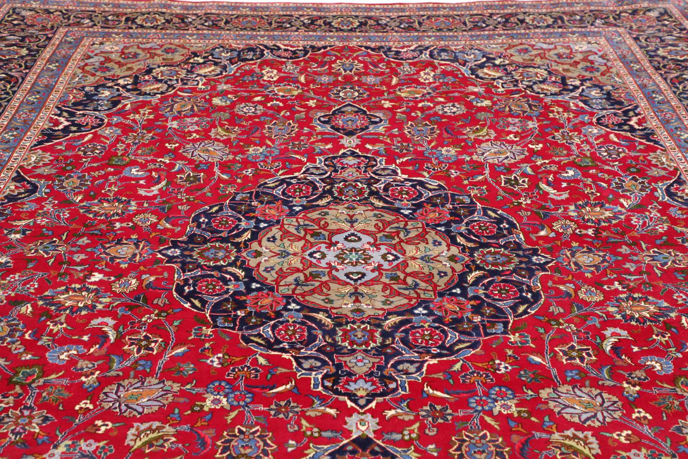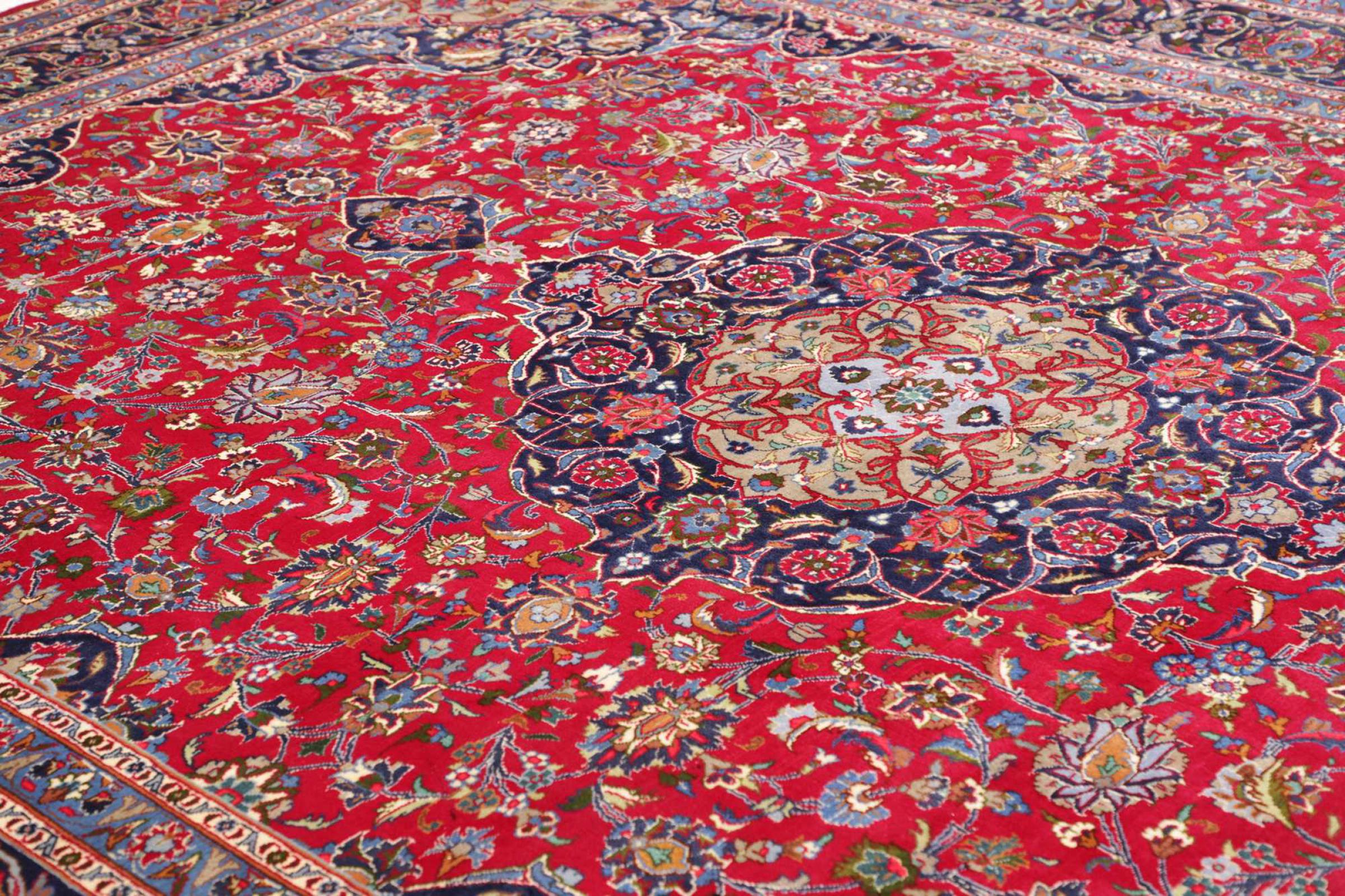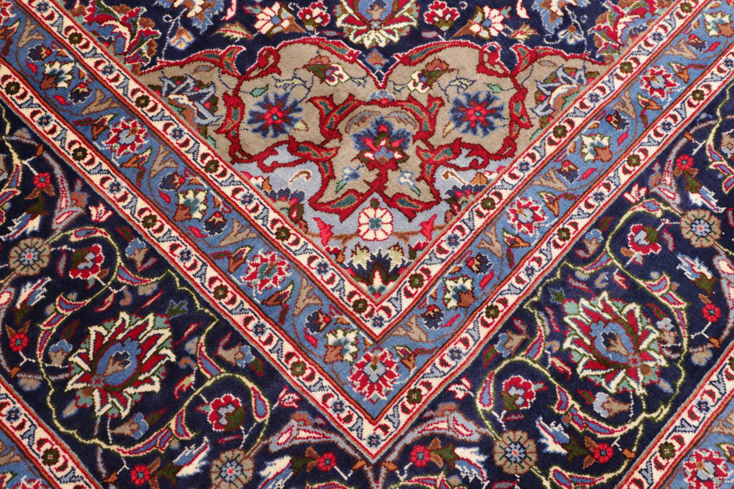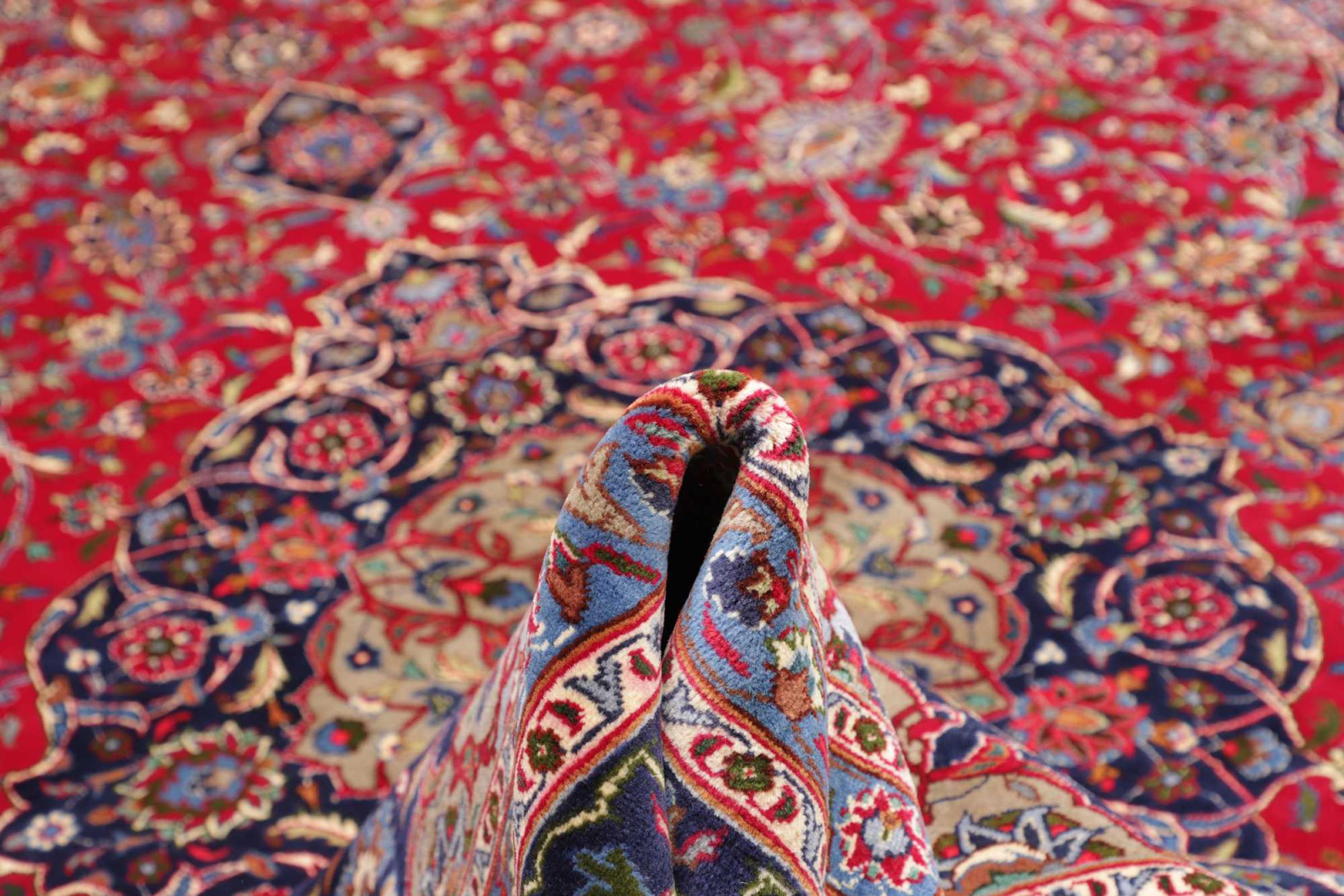 This carpet comes from Iran (formerly Persia) and as a Persian rug enjoys probably the highest reputation among all hand-knotted rug types. No other region looks back on such a long tradition in rug making as Iran. Thus, the probably finest and most elaborate rugs originate here. The robustness, durability and quality of the Persian knot are still unsurpassed today. Persian rugs are usually named after their region of origin. For instance, a Nain, a Ghom as well as an Isfahan carpet comes from the city of the same name in Iran.