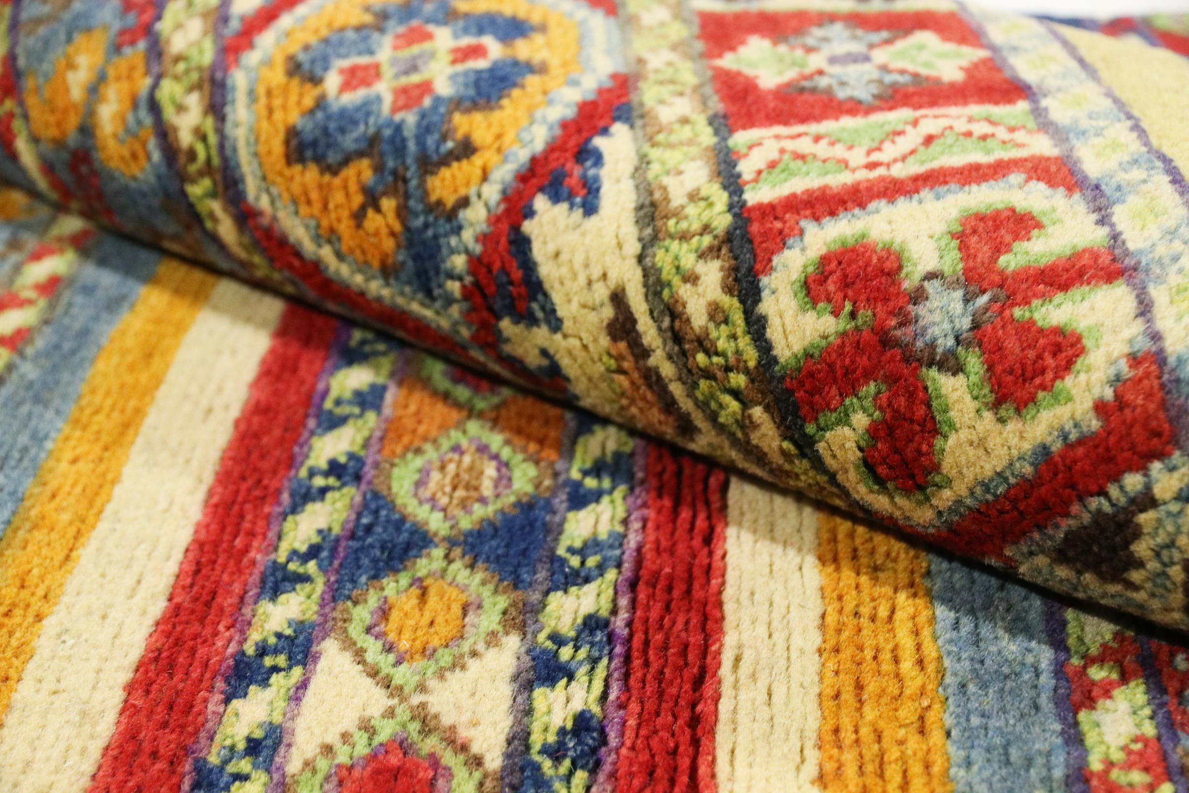 Kazak rugs are originally Caucasian rugs and are considered the best of their kind. They are hand-knotted from high-quality wool and are characterised by their design with warm natural colours and straight geometric shapes.