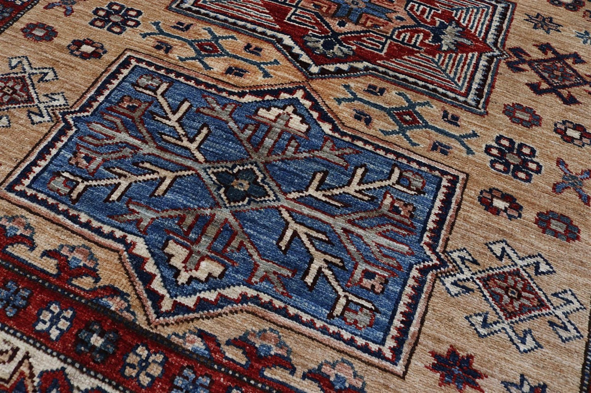 Kazak rugs are originally Caucasian rugs and are considered the best of their kind. They are hand-knotted from high-quality wool and are characterised by their design with warm natural colours and straight geometric shapes.