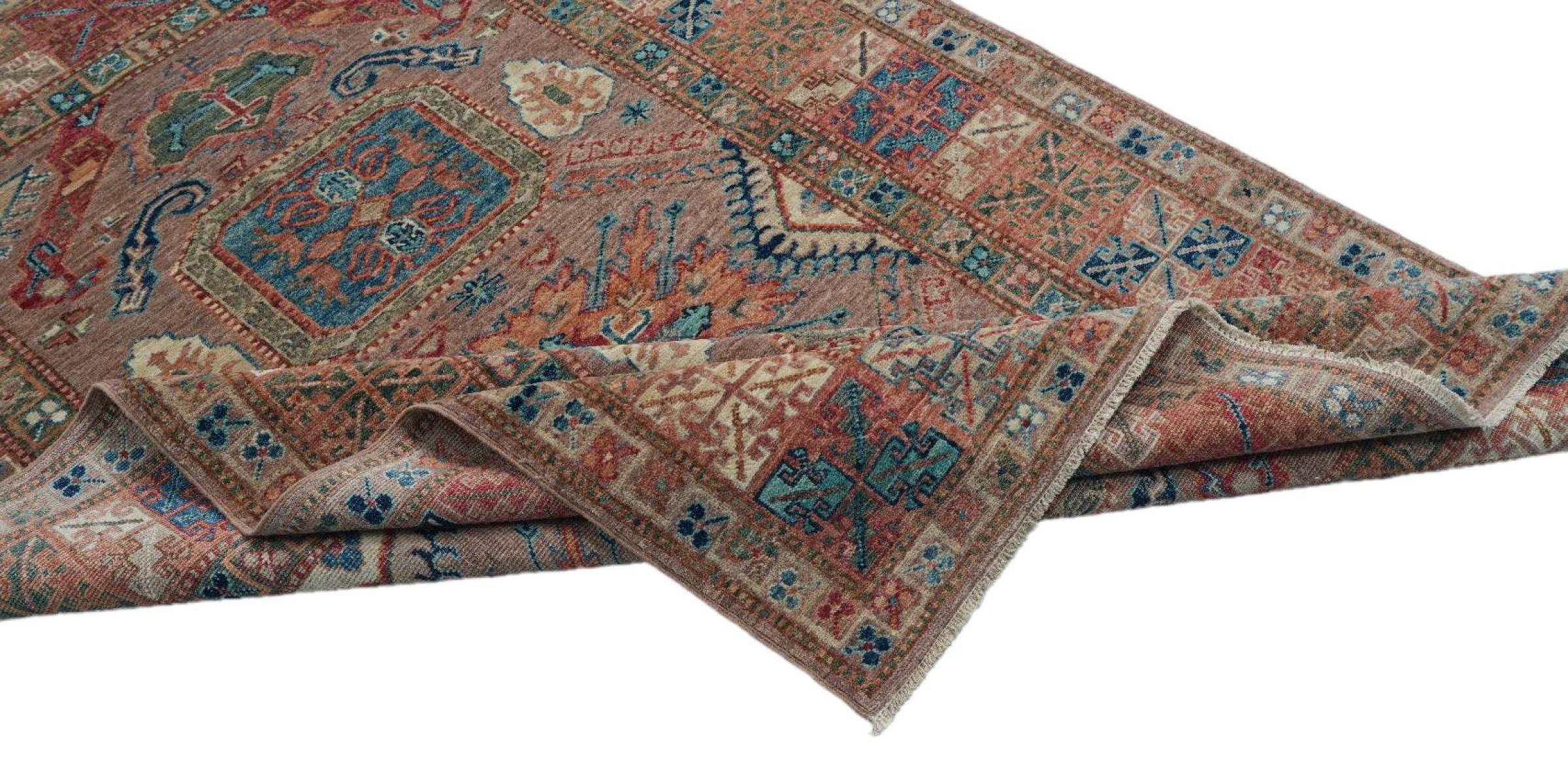 Carpet ID: 313306005890506 Size: 189x125 cm Thickness: ap. 6 mm Knot density: 120 000 - 150 000 / m² Manufacturing: Knotted by hand Pile: Handspun wool Warp: Cotton Origin: Pakistan Age: New Weight: ap. 8 kg In stock: Unique - Only 1 in stock