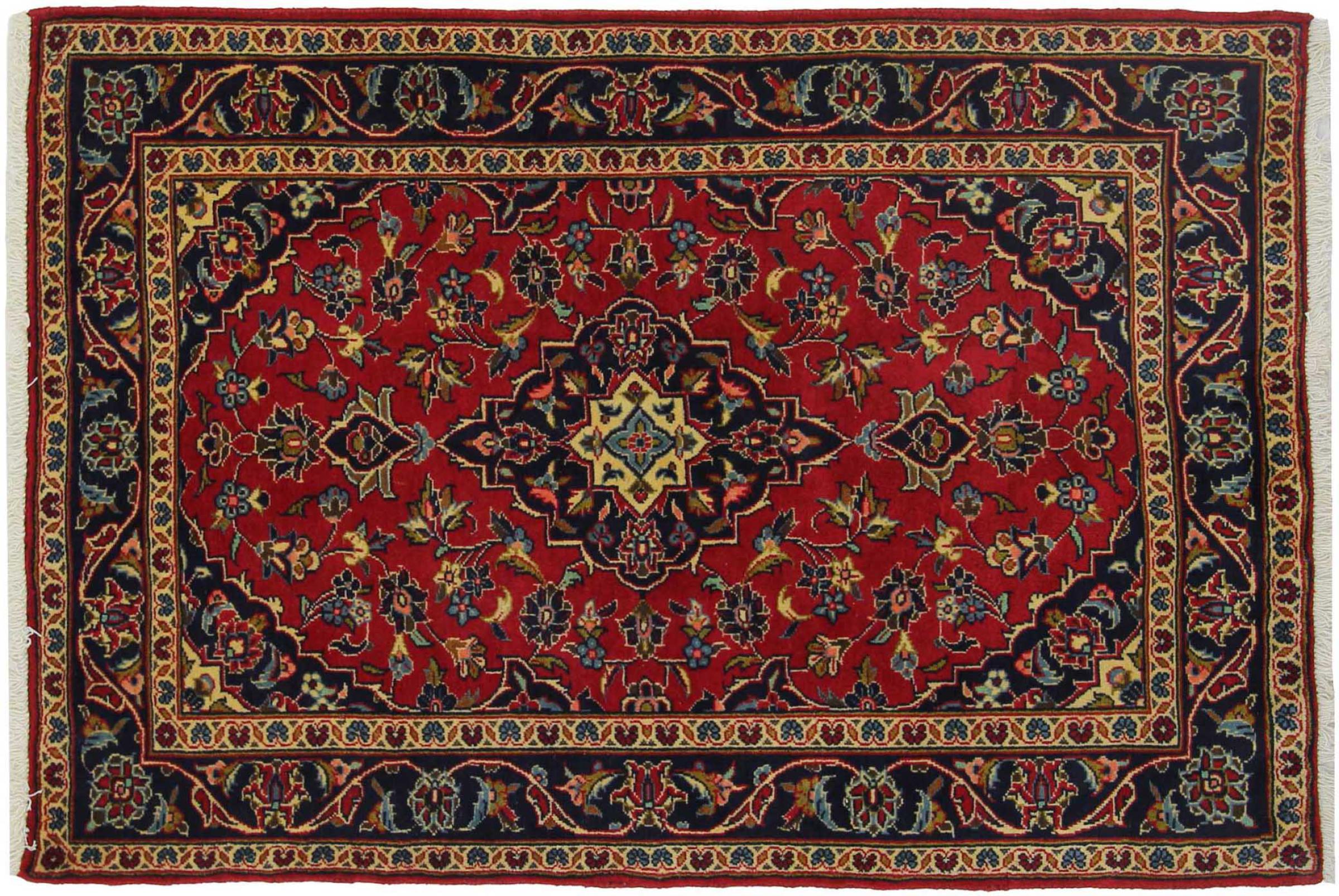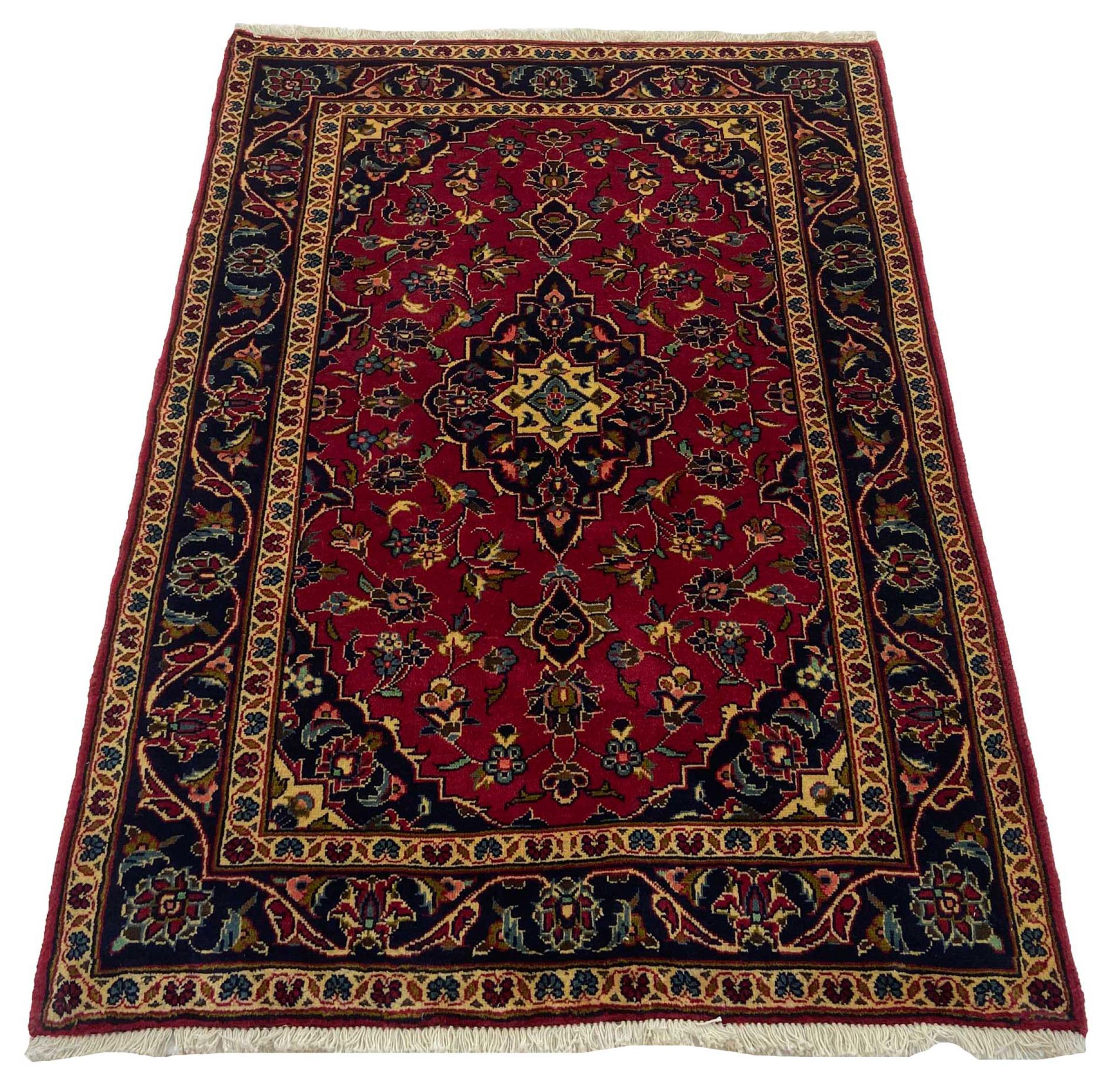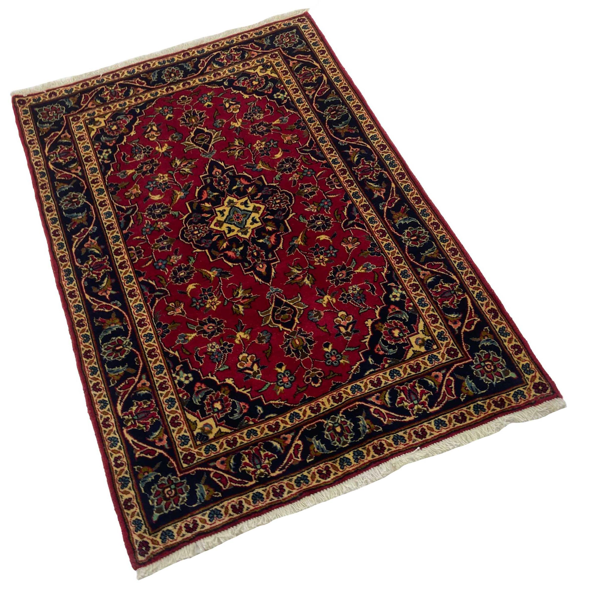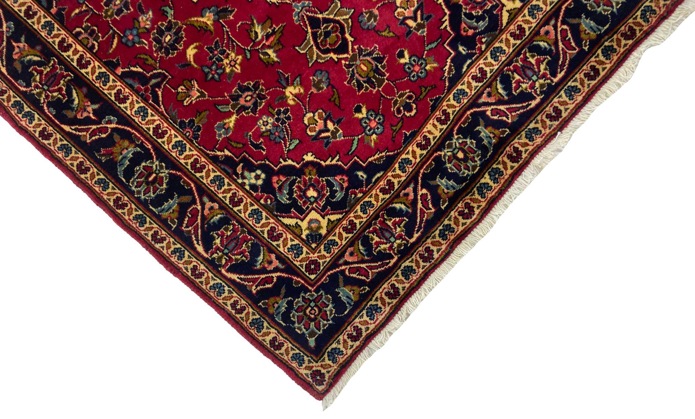 Hand knotted rugs from the city of Kashan (Keshan) are known worldwide. Not only do these Persian rugs have a very popular design, but their quality is undisputedly one of the best. In the Persian Empire the city was considered one of the most important trading places along the famous Silk Road. Kashan rugs usually have a central medallion, floral ornaments and a red background. They are made of high-quality sheep's wool and vegetable dyes.