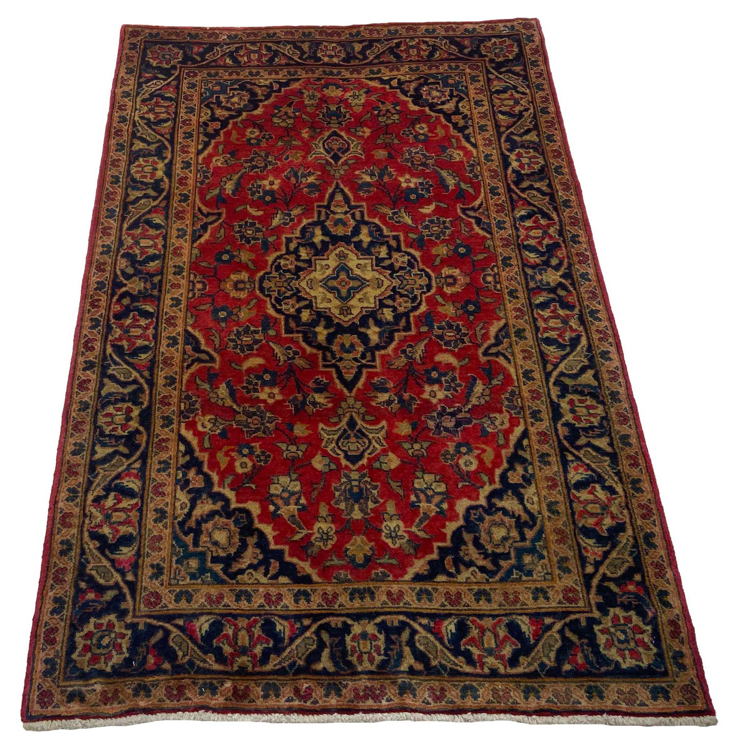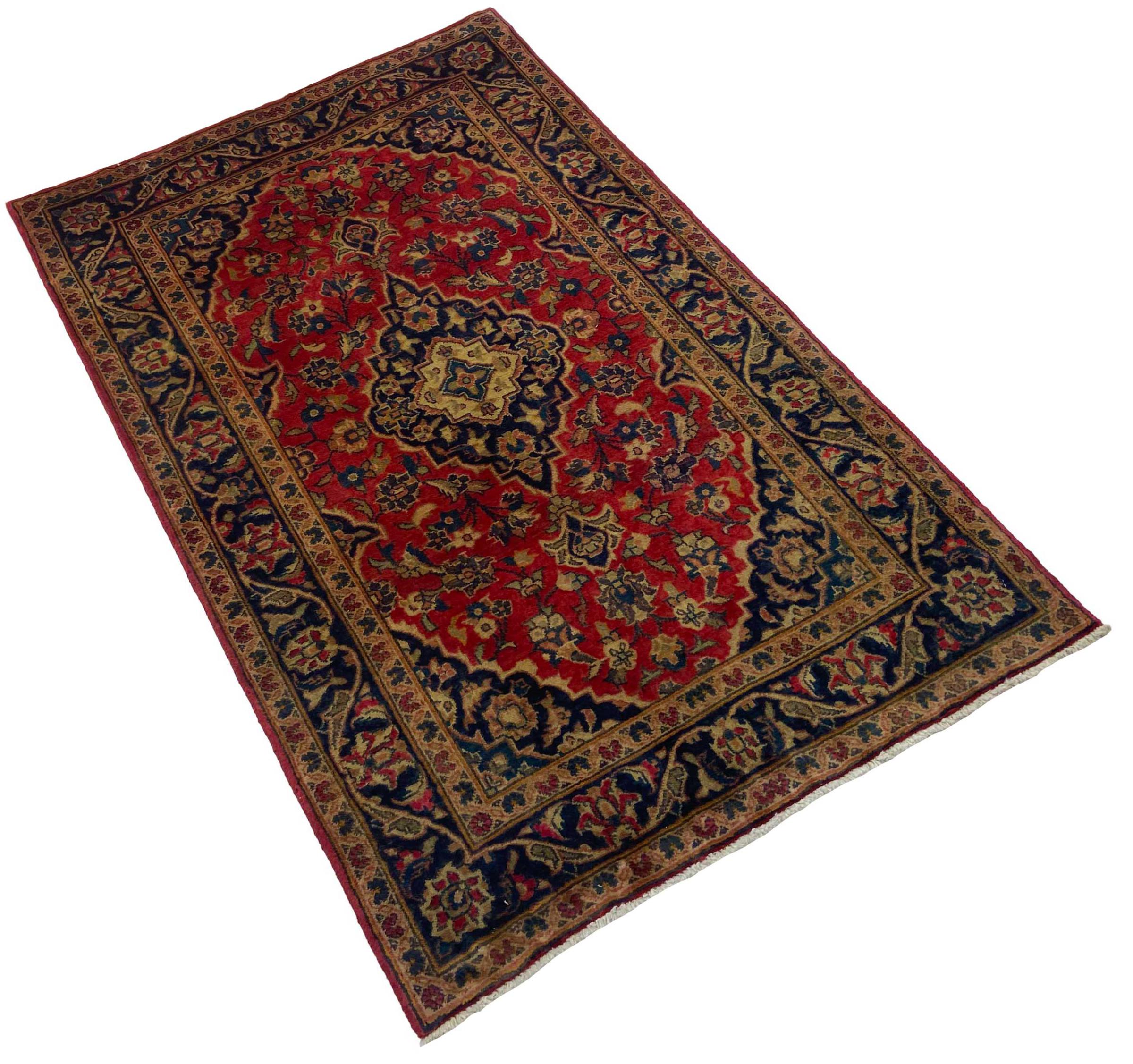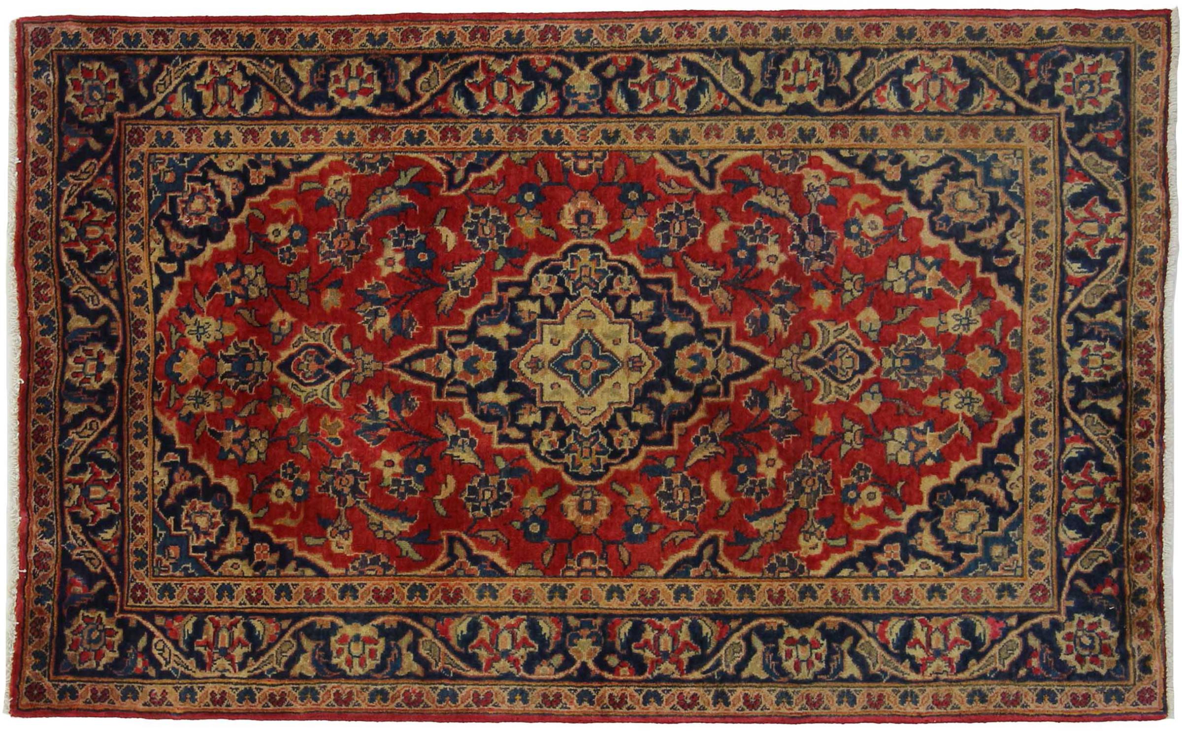 Hand knotted rugs from the city of Kashan (Keshan) are known worldwide. Not only do these Persian rugs have a very popular design, but their quality is undisputedly one of the best. In the Persian Empire the city was considered one of the most important trading places along the famous Silk Road. Kashan rugs usually have a central medallion, floral ornaments and a red background. They are made of high-quality sheep's wool and vegetable dyes.