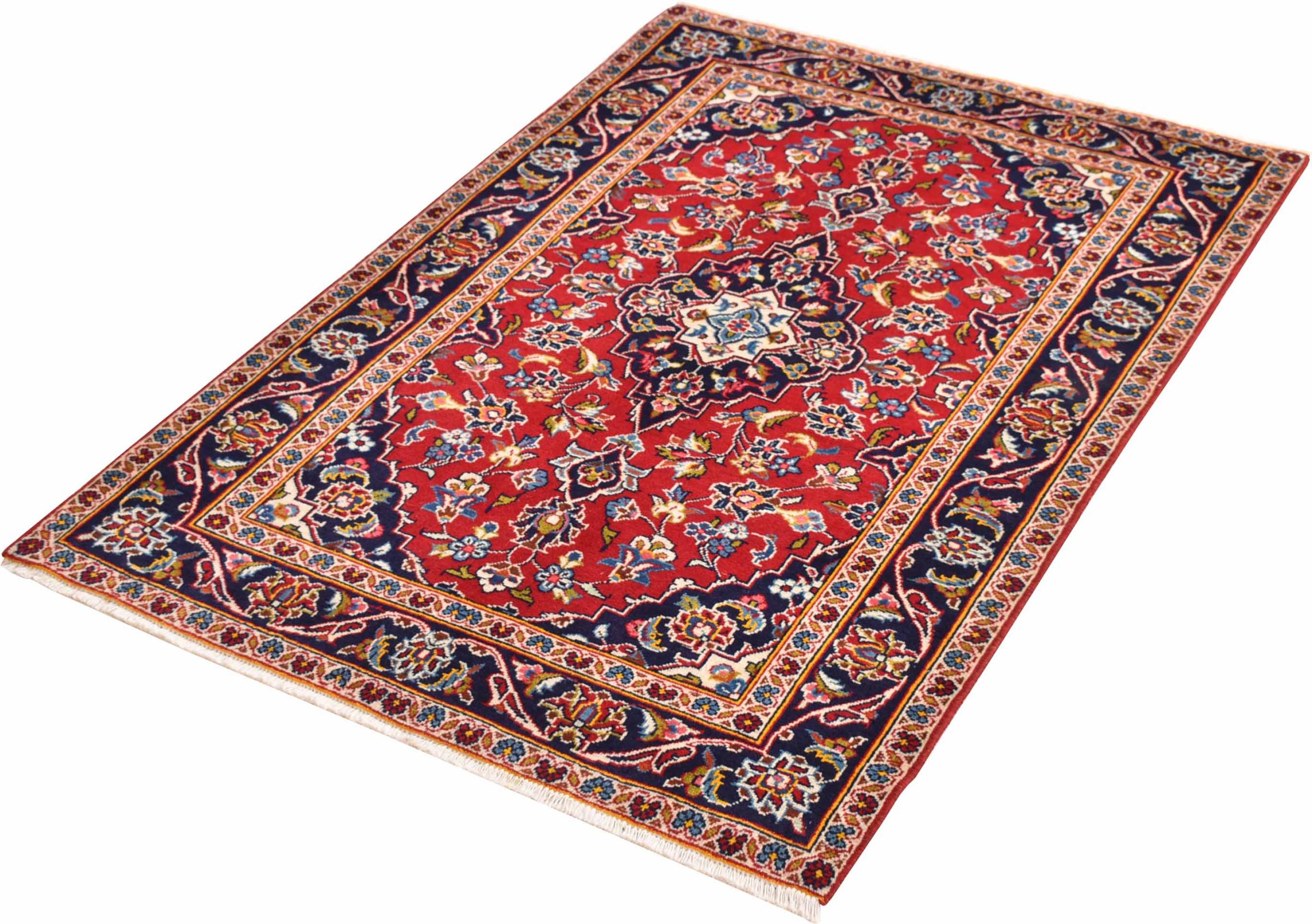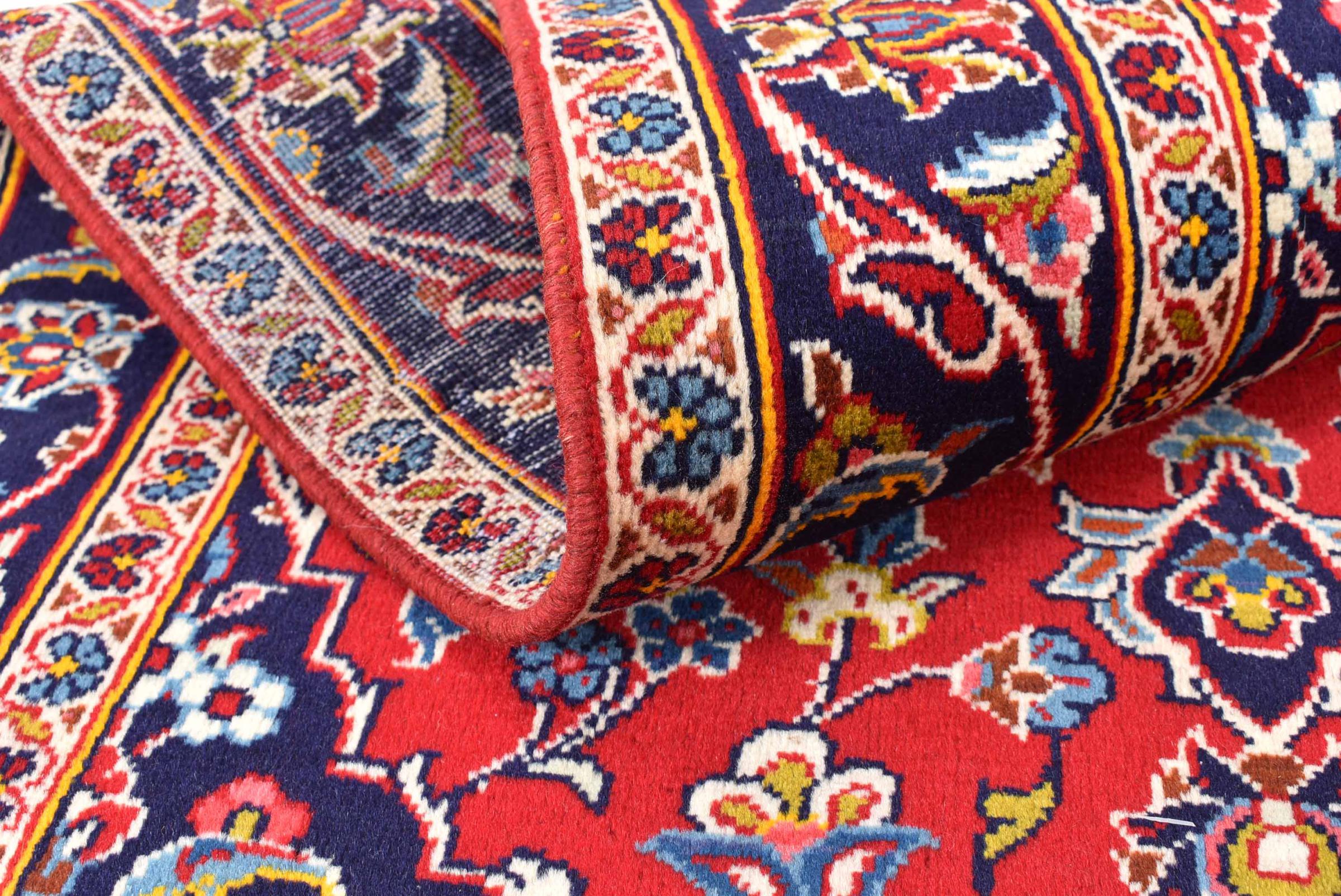 Hand knotted rugs from the city of Kashan (Keshan) are known worldwide. Not only do these Persian rugs have a very popular design, but their quality is undisputedly one of the best. In the Persian Empire the city was considered one of the most important trading places along the famous Silk Road. Kashan rugs usually have a central medallion, floral ornaments and a red background. They are made of high-quality sheep's wool and vegetable dyes.