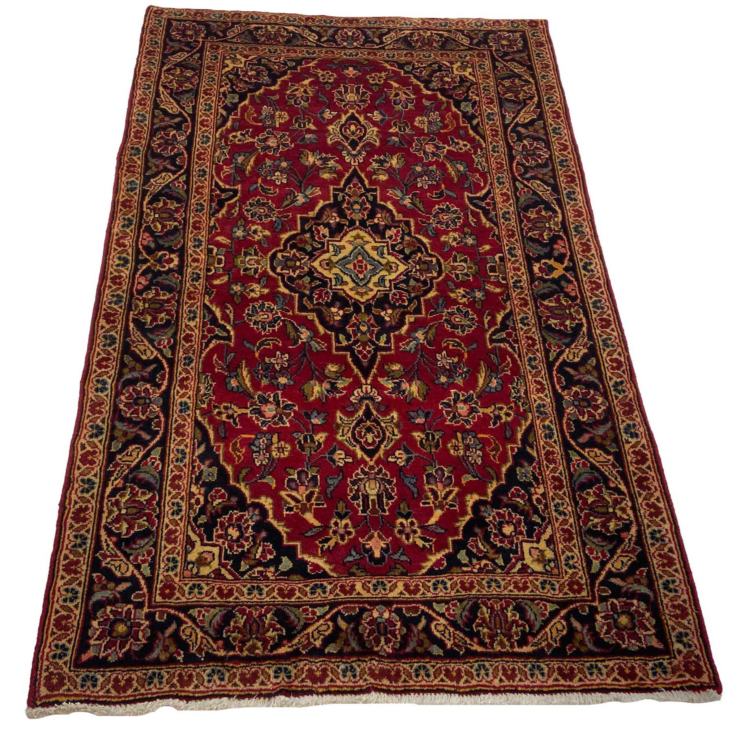 Hand knotted rugs from the city of Kashan (Keshan) are known worldwide. Not only do these Persian rugs have a very popular design, but their quality is undisputedly one of the best. In the Persian Empire the city was considered one of the most important trading places along the famous Silk Road. Kashan rugs usually have a central medallion, floral ornaments and a red background. They are made of high-quality sheep's wool and vegetable dyes.