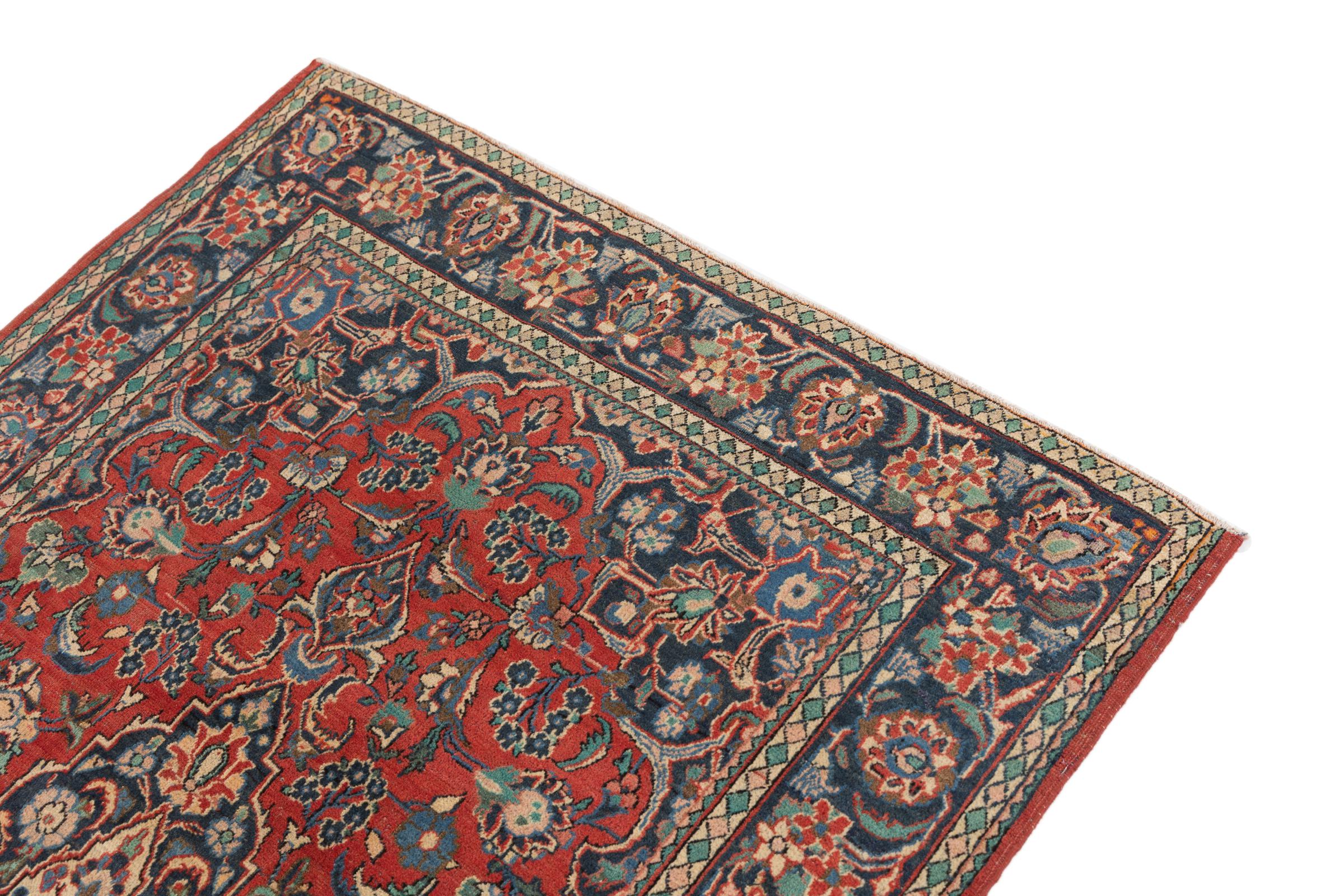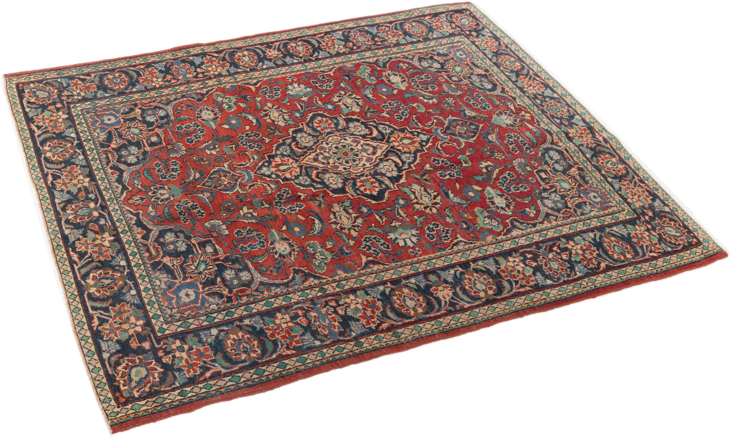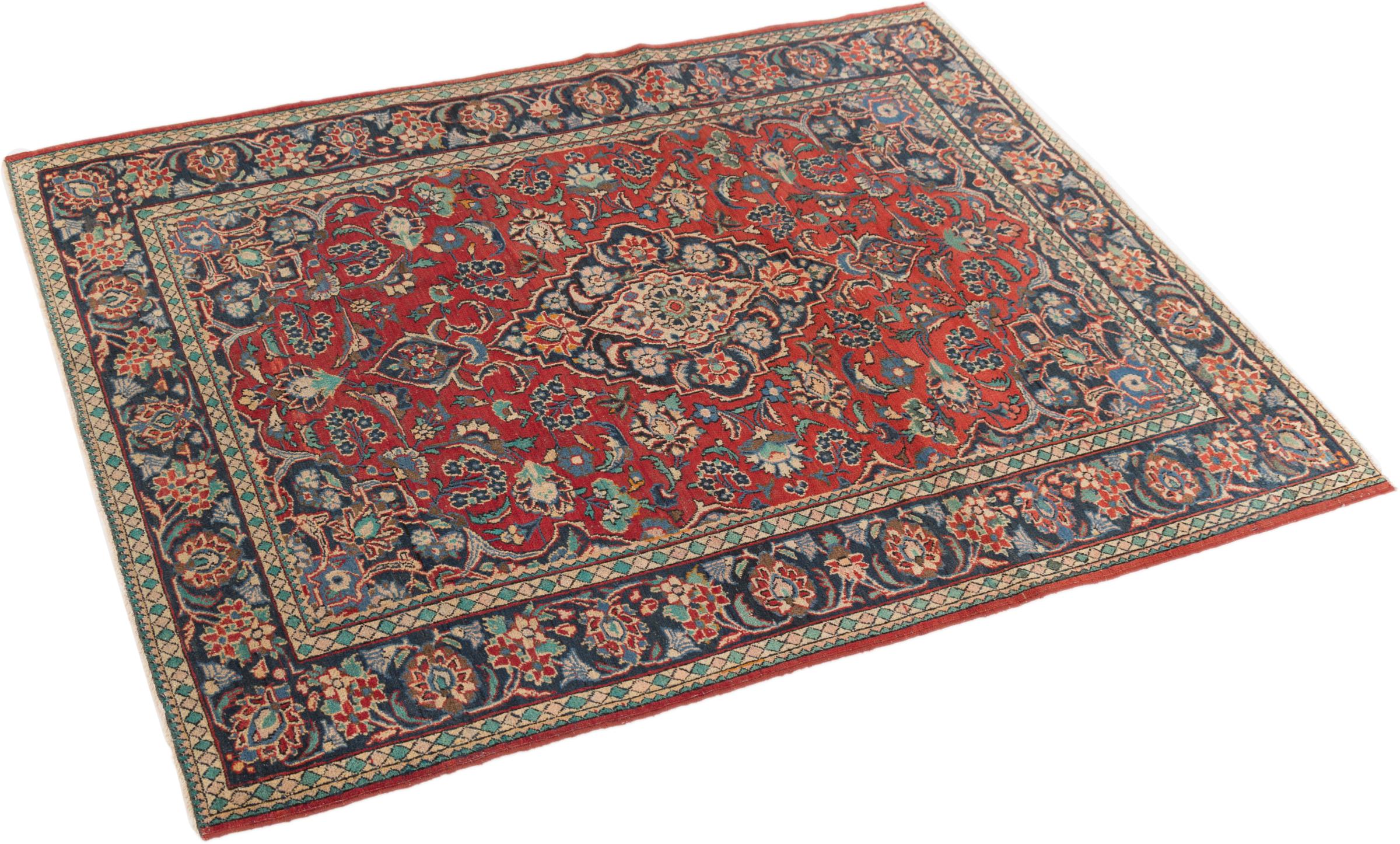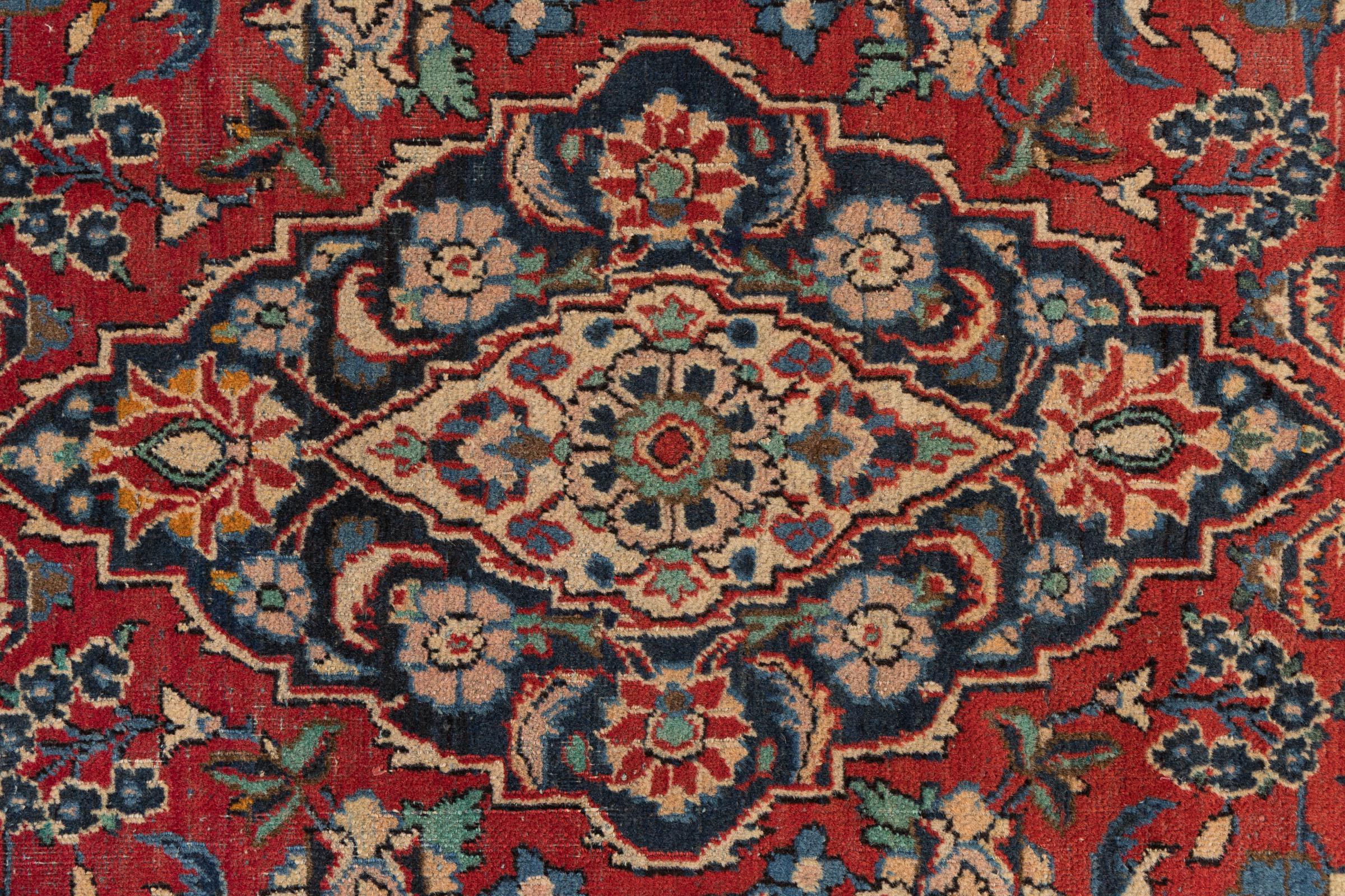 This antique Keshan rug is a beautiful unique piece. It was hand-knotted decades ago in the city of Kashan in Iran. Its ornaments have been woven in durable and strong colours with a lot of experience. Thanks to the high knot density, the patterns appear fine and lively. The rug has been fully checked, cleaned and cared for by our experts. This antique Persian rug from one of the most popular provenances is an extremely valuable piece of traditional craftsmanship from the history of Persia.