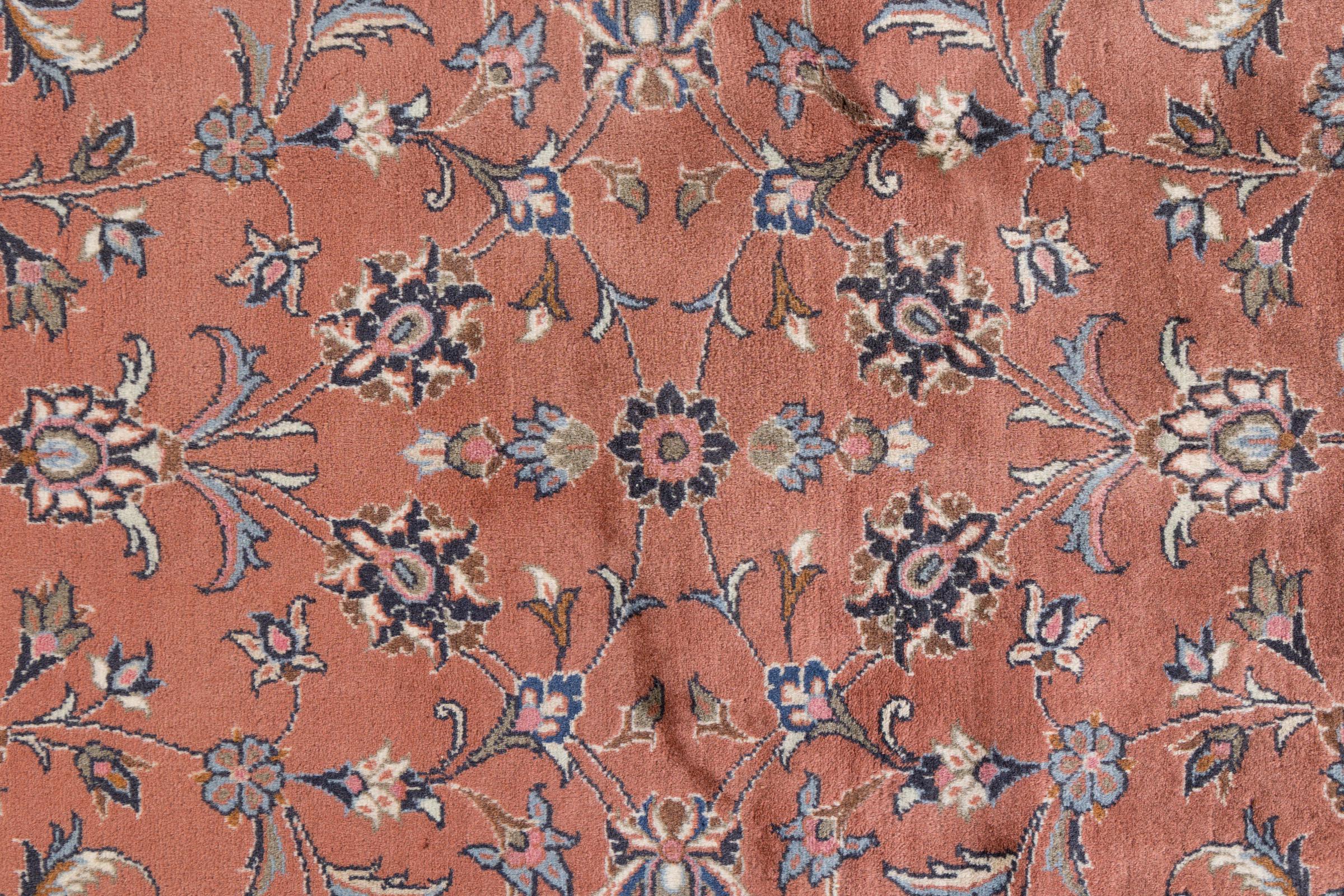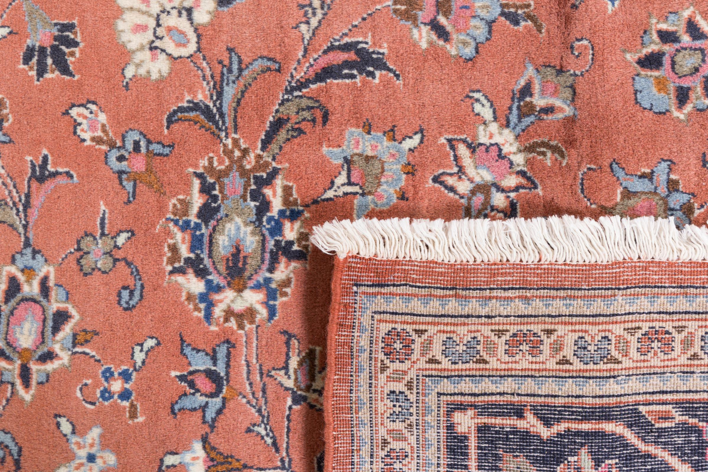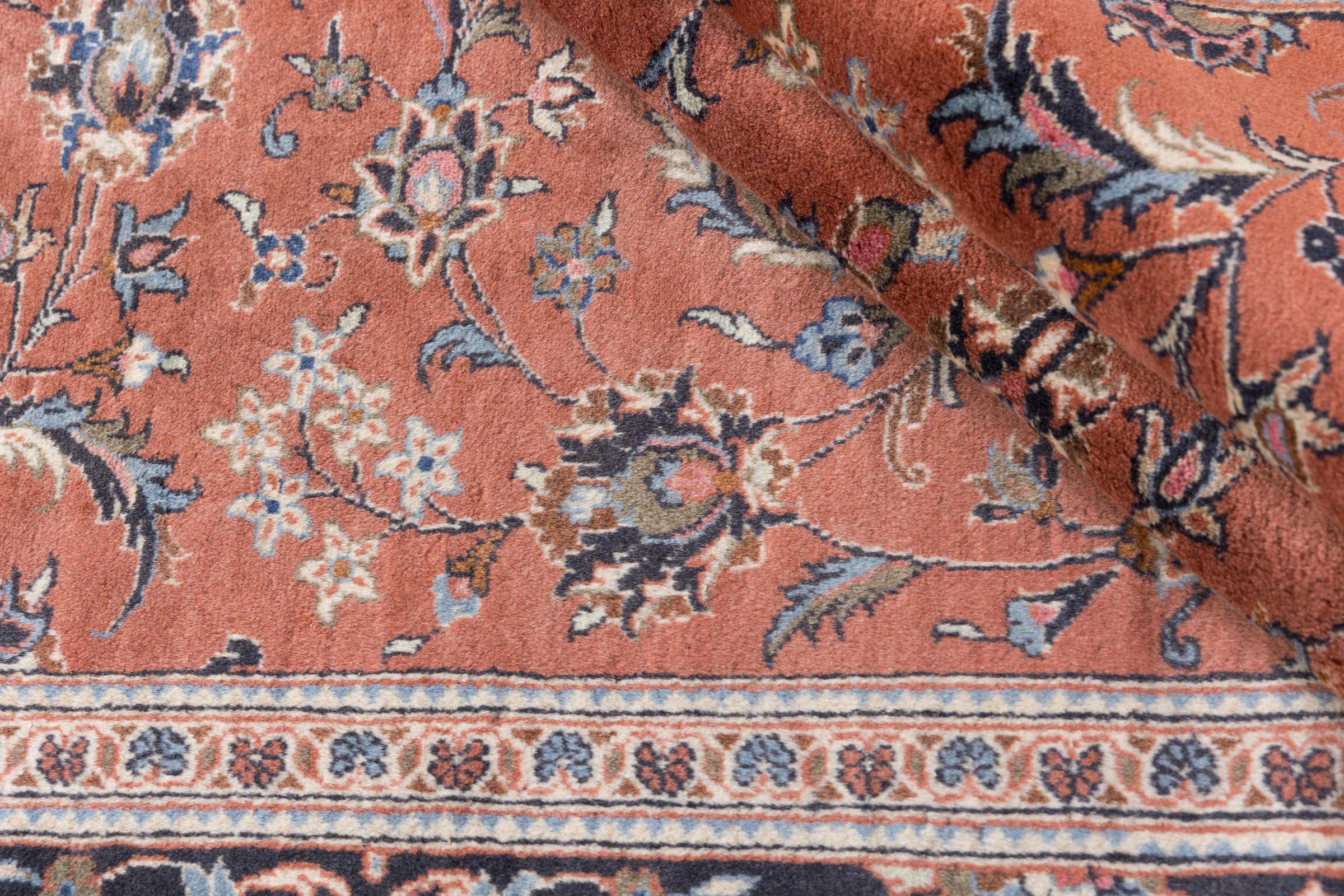 This carpet from Kashan (Keshan) is held in its very traditional and typical Persian design with beautiful ornaments. Kashan rugs are highly popular due to their exceptionally elegant design. These carpets originate from Kashan, a city on the ancient Silk Road. This carpet has been knotted by hand from high grade sheep wool and is going to be an one-of-a-kind highlight in your home.