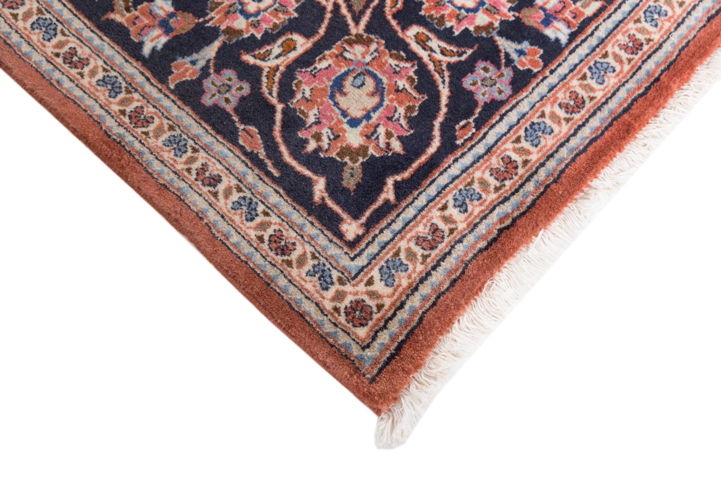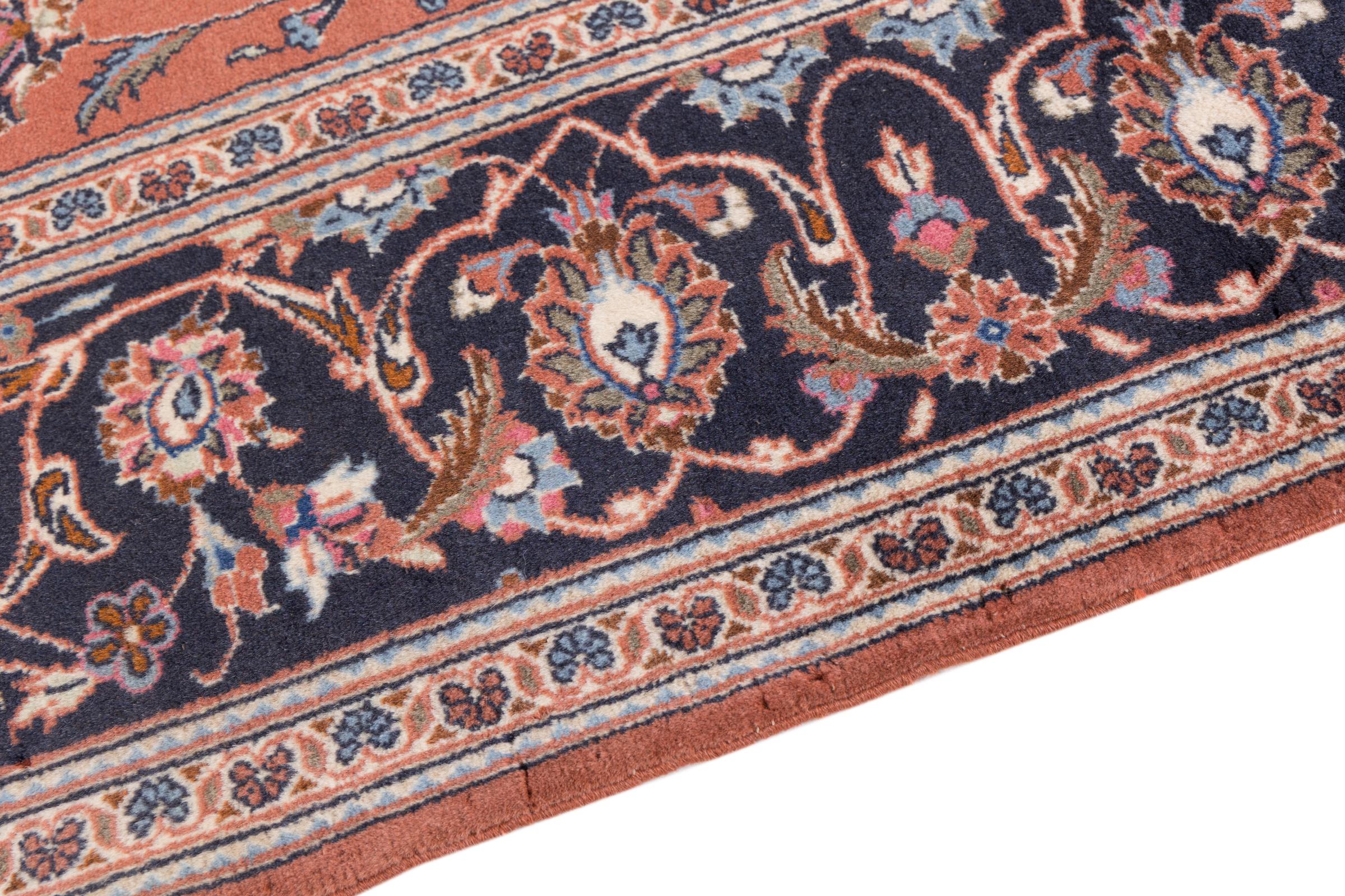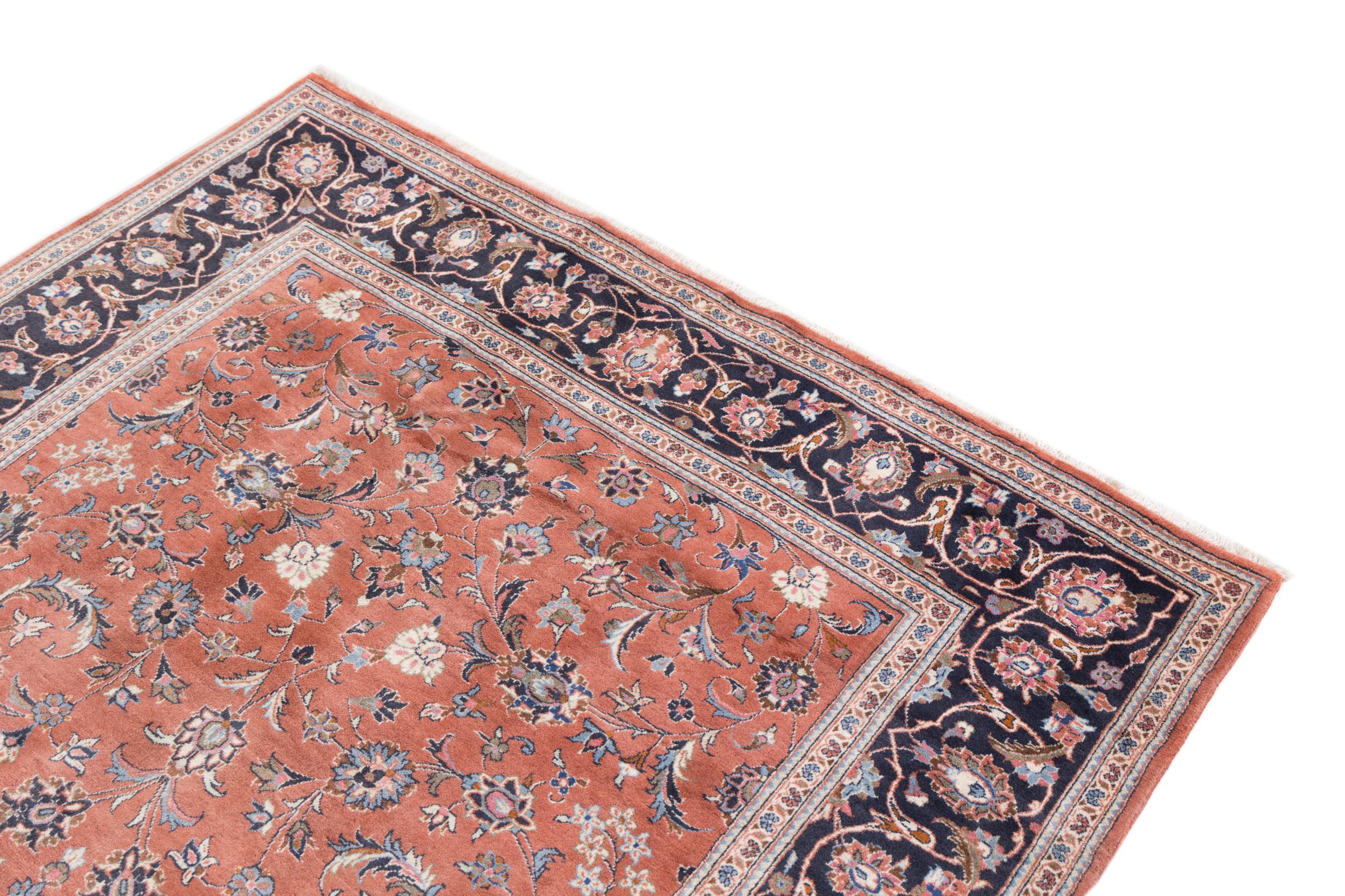 This carpet from Kashan (Keshan) is held in its very traditional and typical Persian design with beautiful ornaments. Kashan rugs are highly popular due to their exceptionally elegant design. These carpets originate from Kashan, a city on the ancient Silk Road. This carpet has been knotted by hand from high grade sheep wool and is going to be an one-of-a-kind highlight in your home.