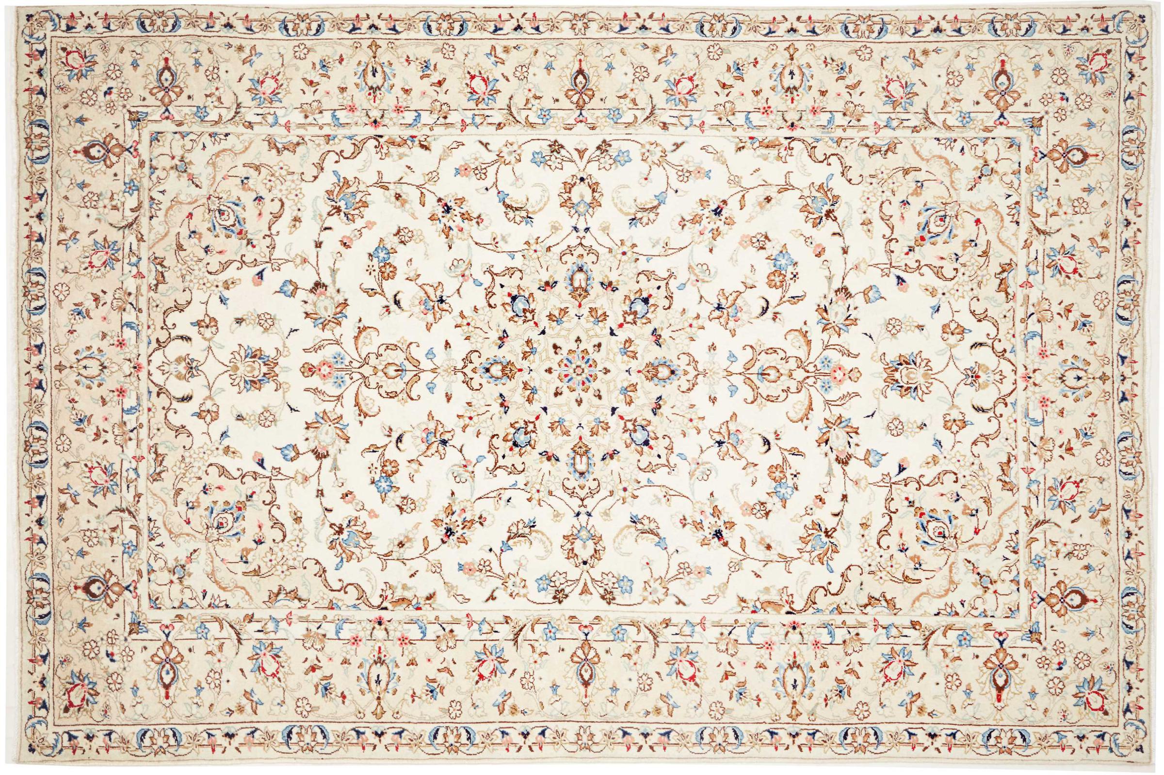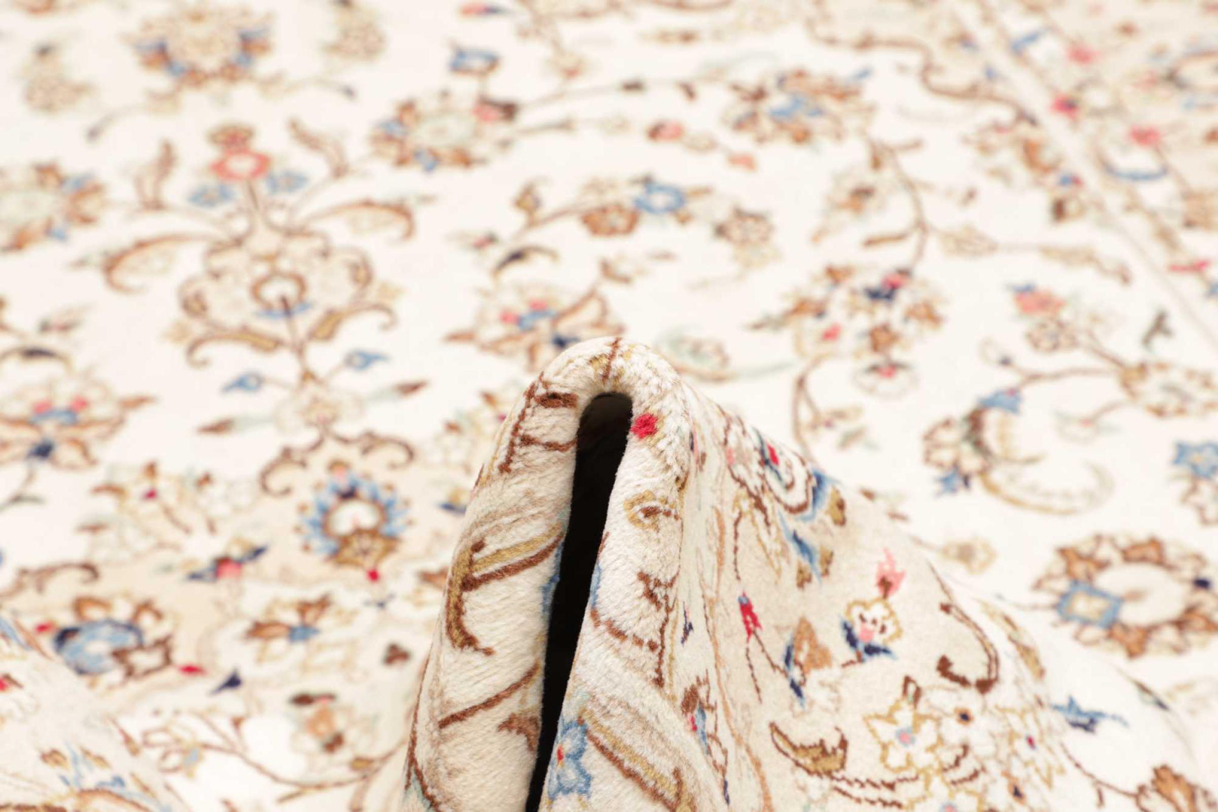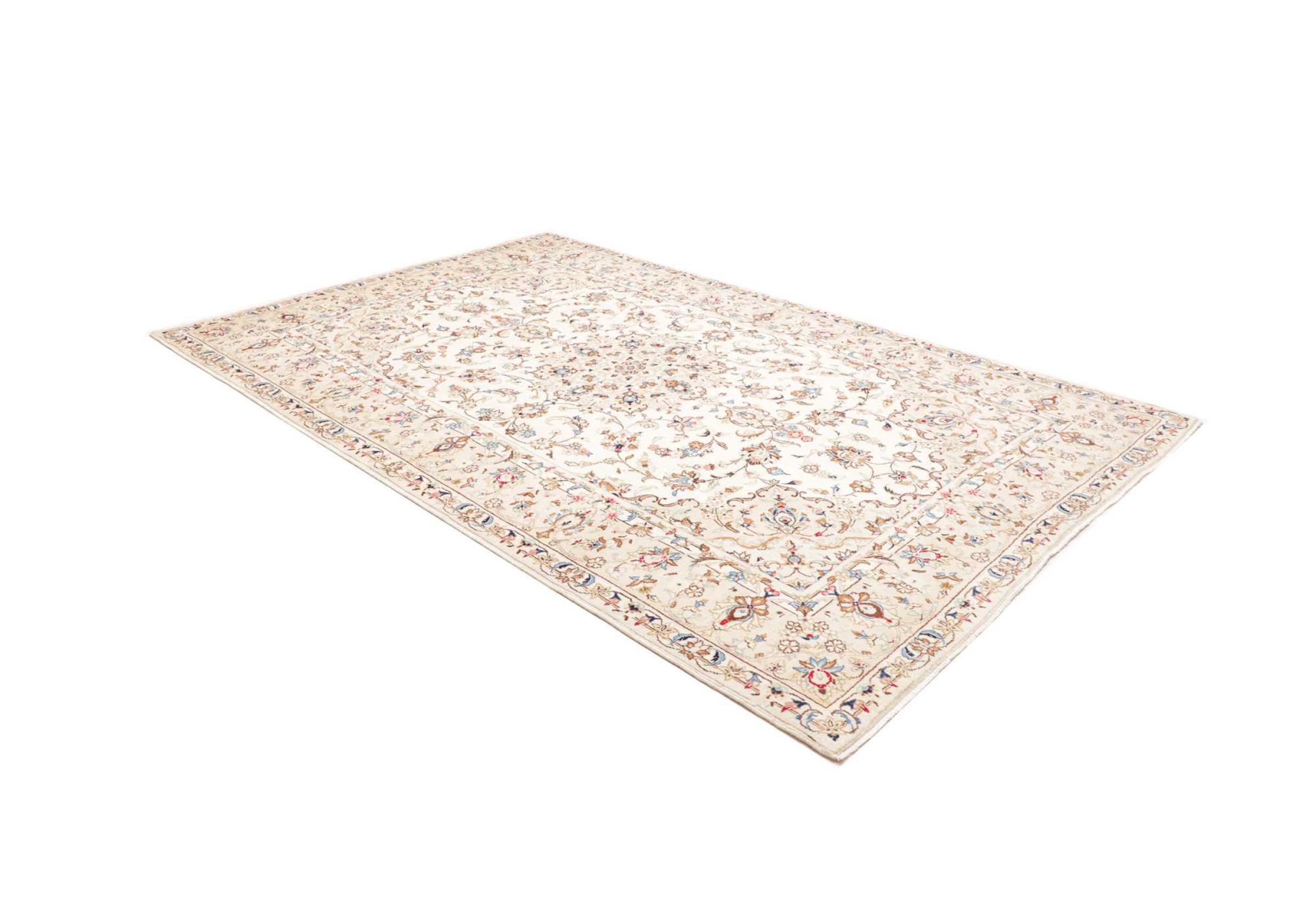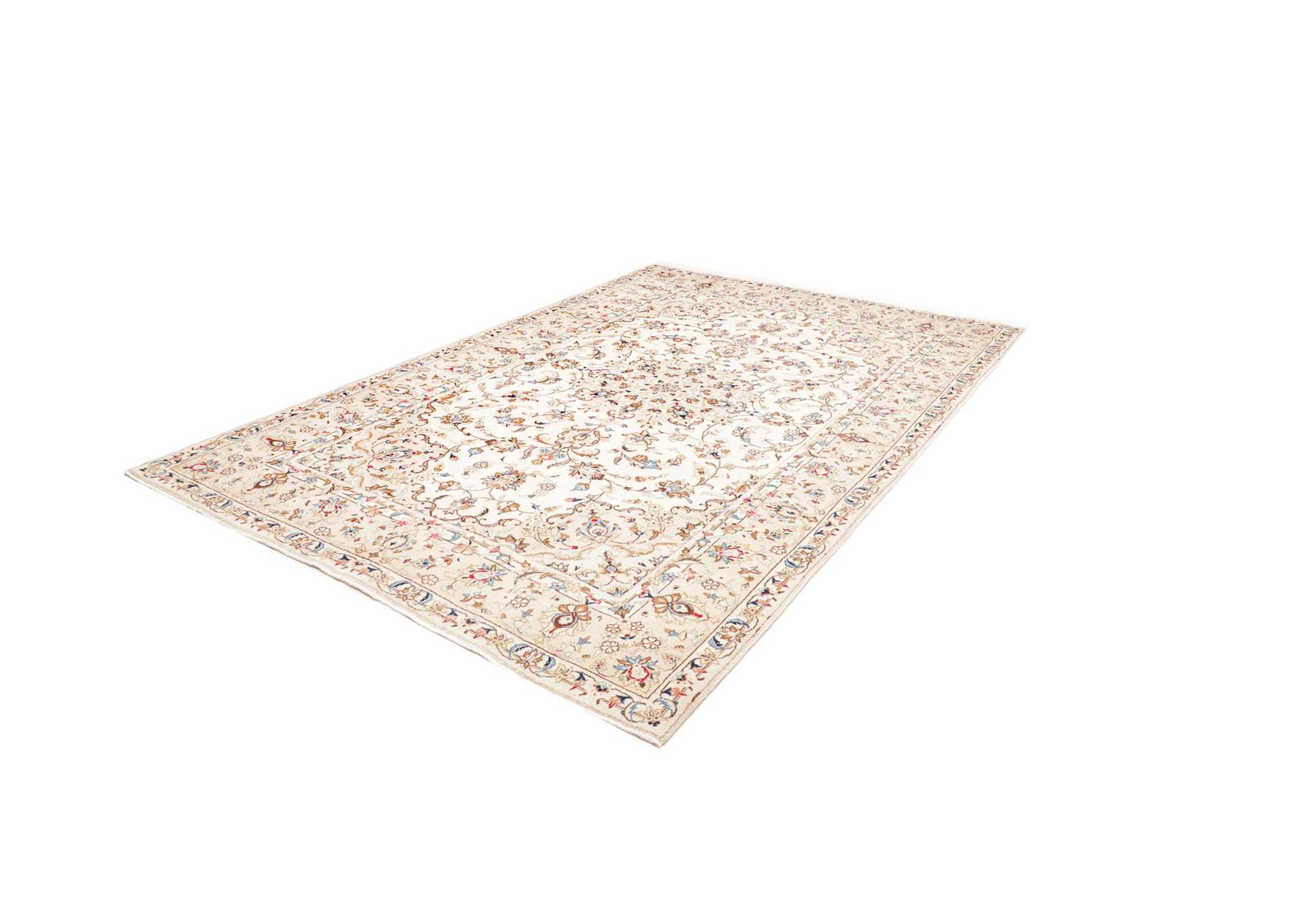 This carpet from Kashan (Keshan) is held in its very traditional and typical Persian design with beautiful ornaments. Kashan rugs are highly popular due to their exceptionally elegant design. These carpets originate from Kashan, a city on the ancient Silk Road. This carpet has been knotted by hand from high grade sheep wool and is going to be an one-of-a-kind highlight in your home.