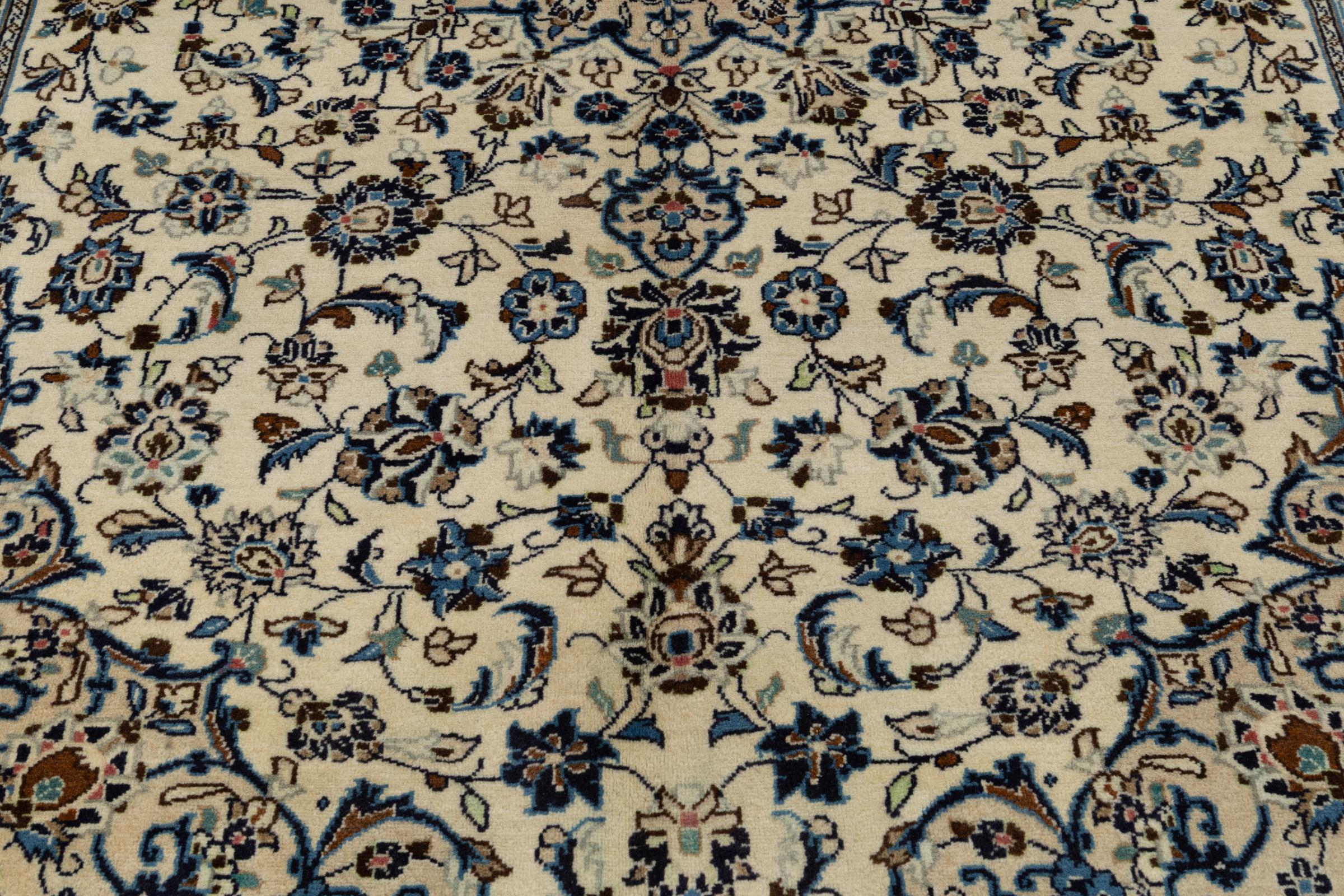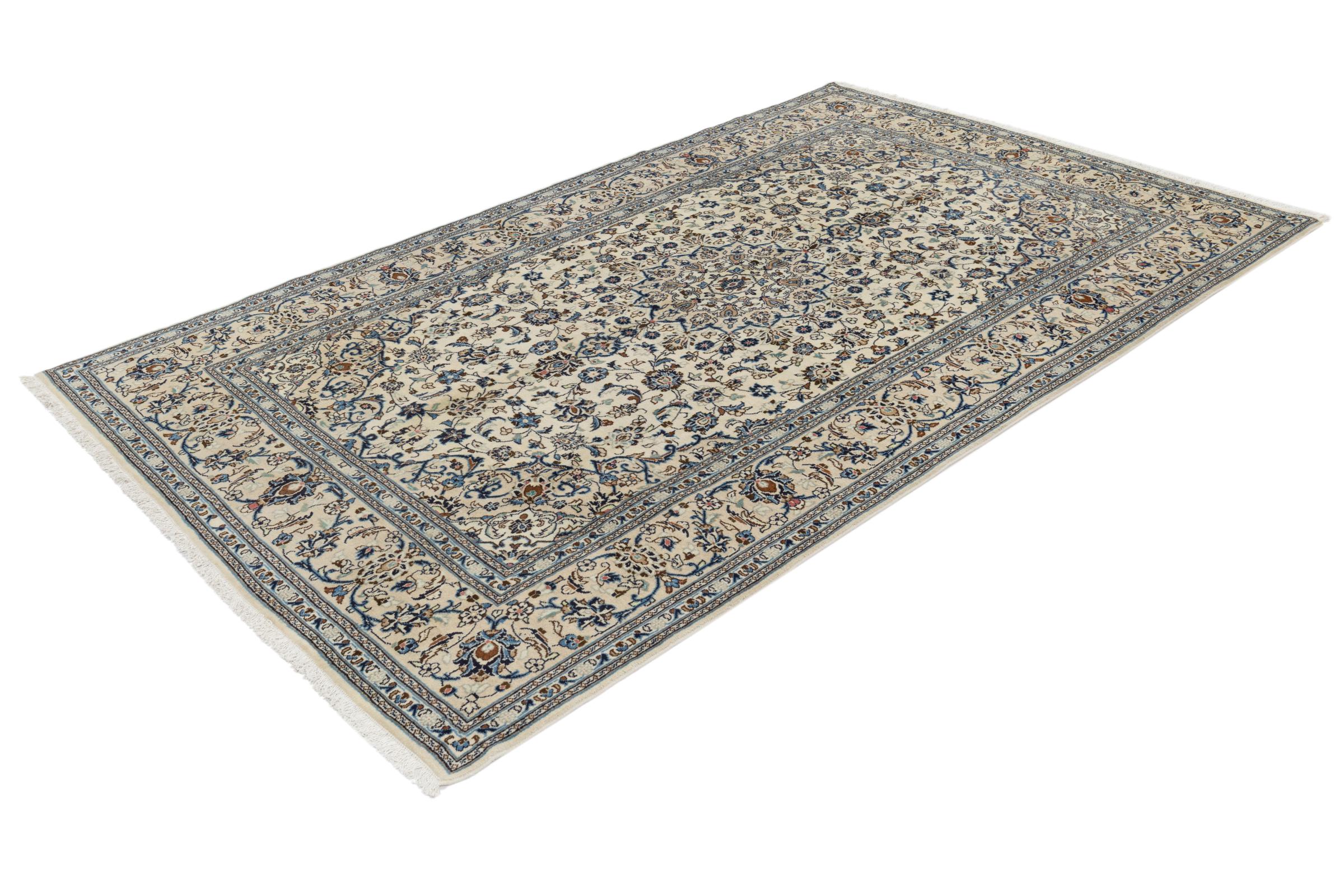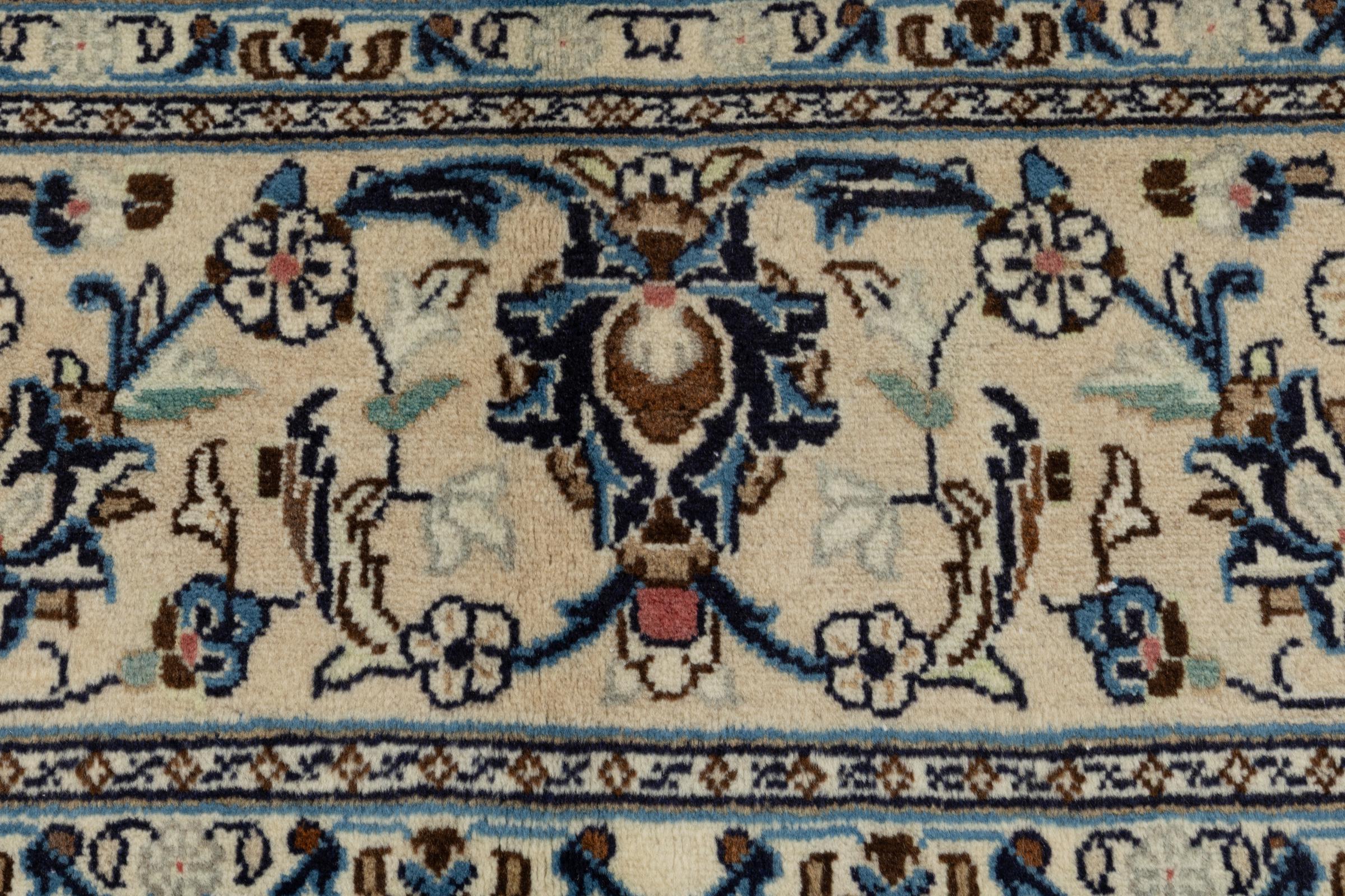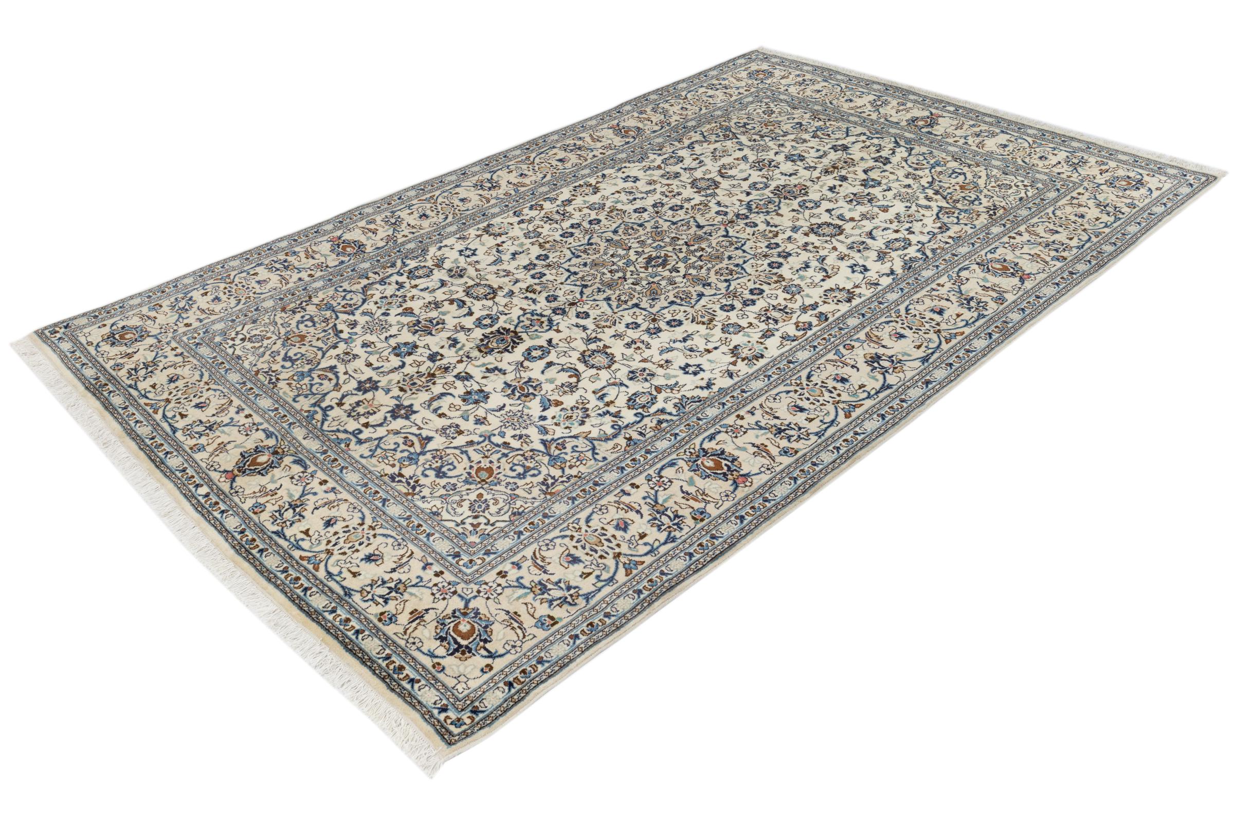 This carpet from Kashan (Keshan) is held in its very traditional and typical Persian design with beautiful ornaments. Kashan rugs are highly popular due to their exceptionally elegant design. These carpets originate from Kashan, a city on the ancient Silk Road. This carpet has been knotted by hand from high grade sheep wool and is going to be an one-of-a-kind highlight in your home.