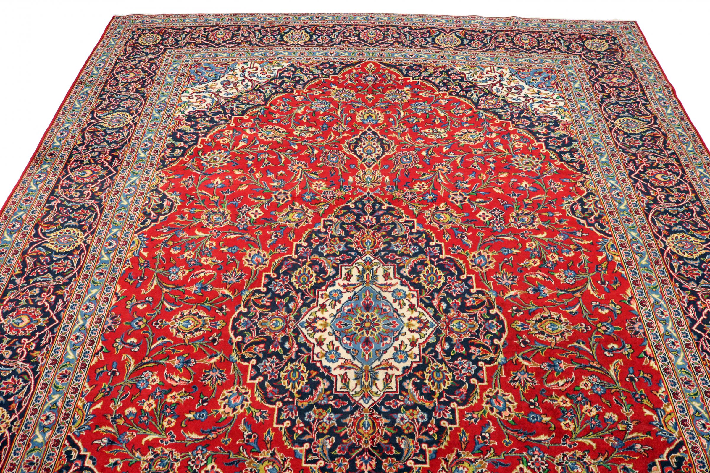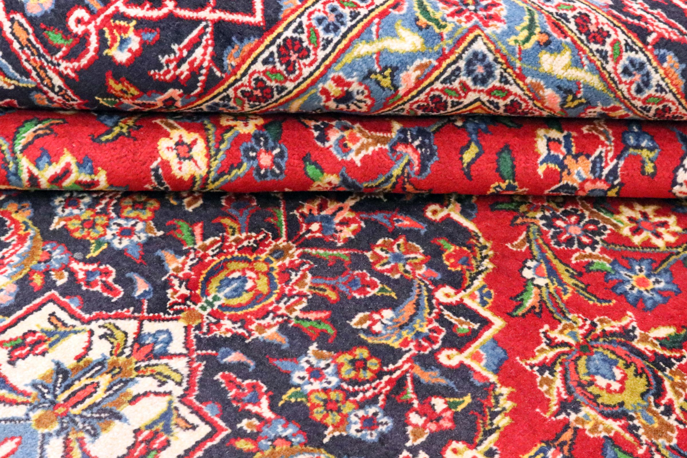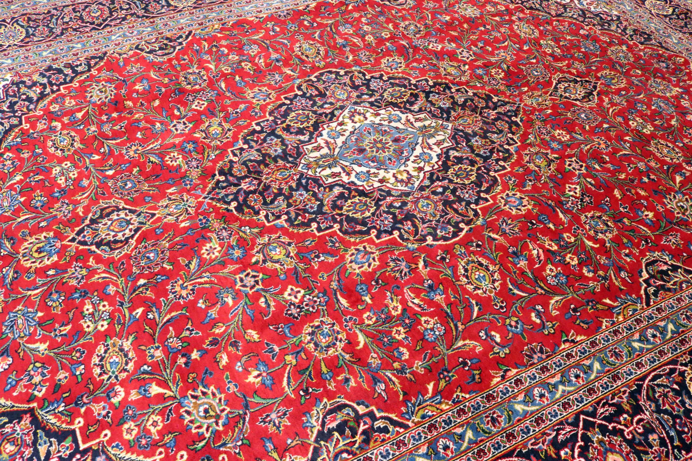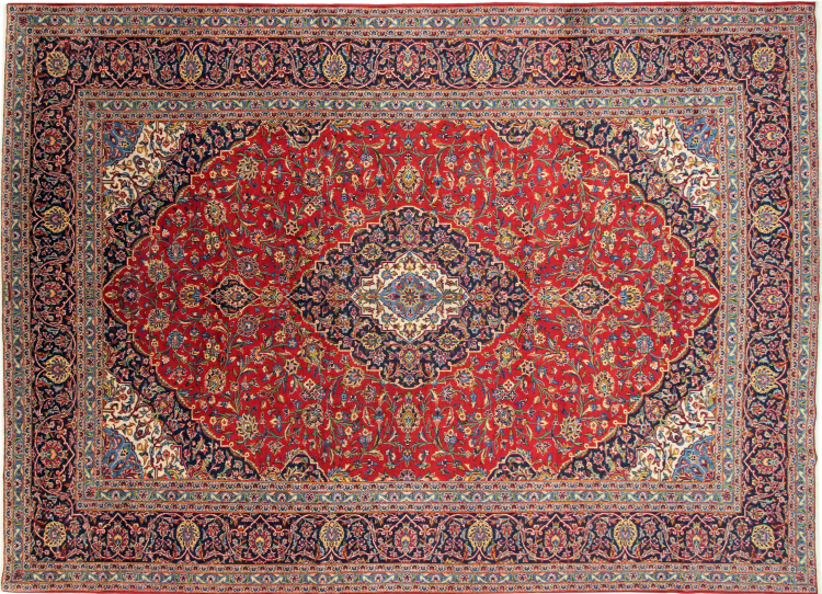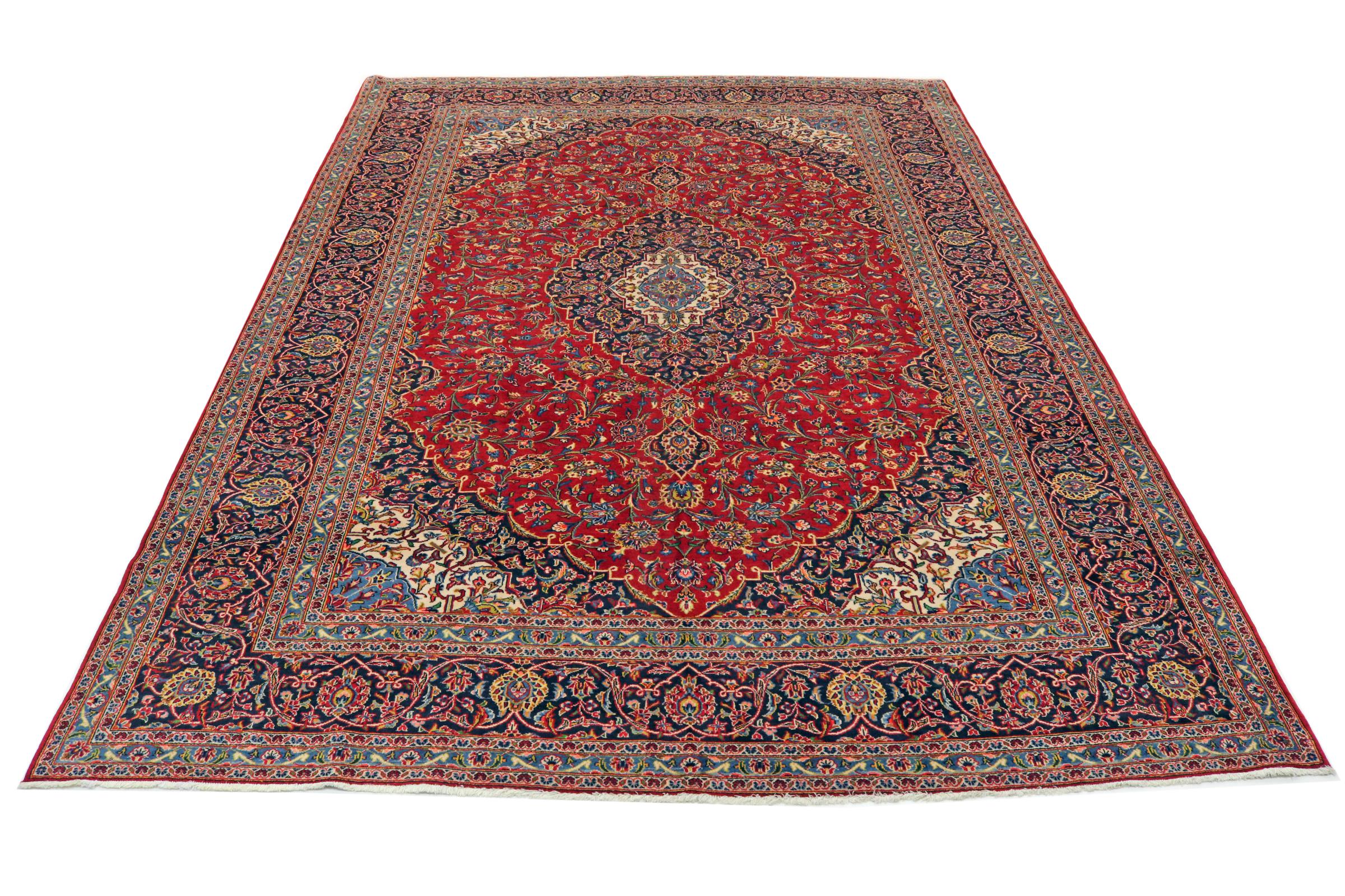 Hand knotted rugs from the city of Kashan (Keshan) are known worldwide. Not only do these Persian rugs have a very popular design, but their quality is undisputedly one of the best. In the Persian Empire the city was considered one of the most important trading places along the famous Silk Road. Kashan rugs usually have a central medallion, floral ornaments and a red background. They are made of high-quality sheep's wool and vegetable dyes.