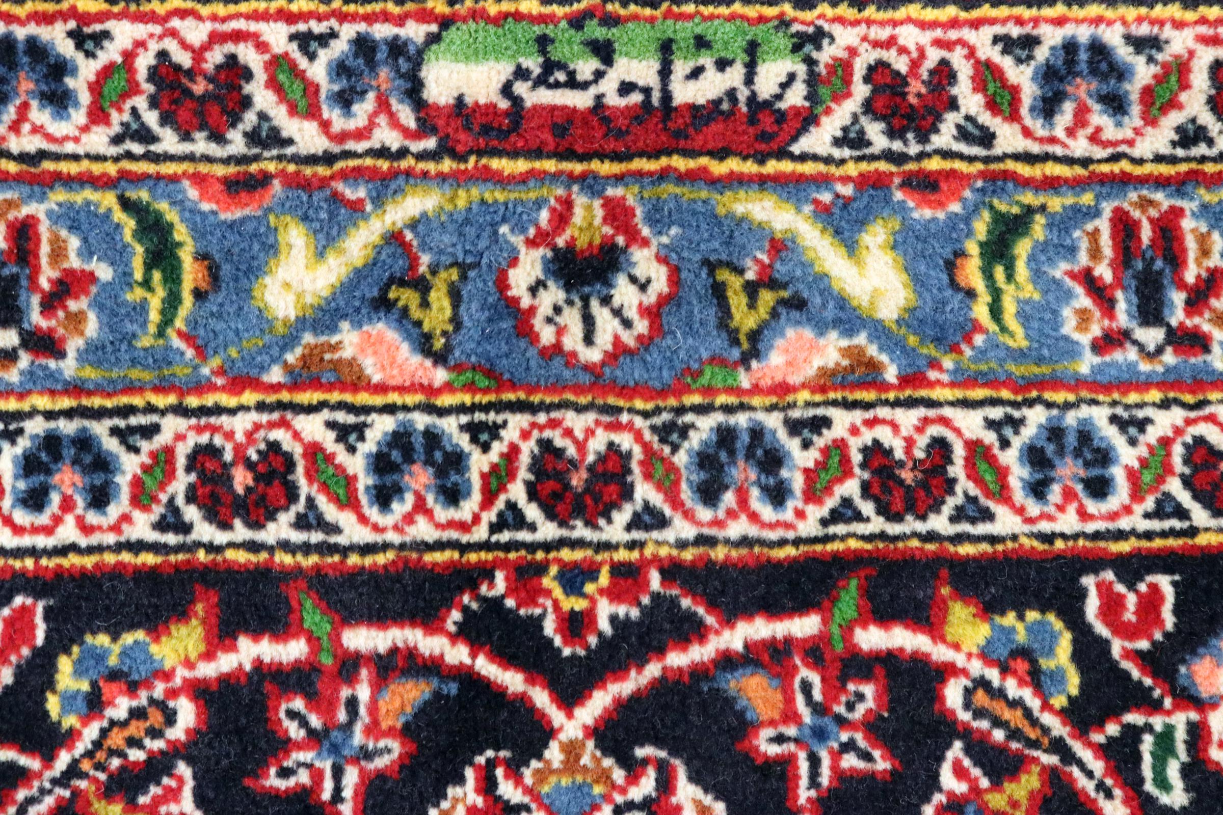 This carpet from Kashan (Keshan) is held in its very traditional and typical Persian design with beautiful ornaments. Kashan rugs are highly popular due to their exceptionally elegant design. These carpets originate from Kashan, a city on the ancient Silk Road. This carpet has been knotted by hand from high grade sheep wool and is going to be an one-of-a-kind highlight in your home.