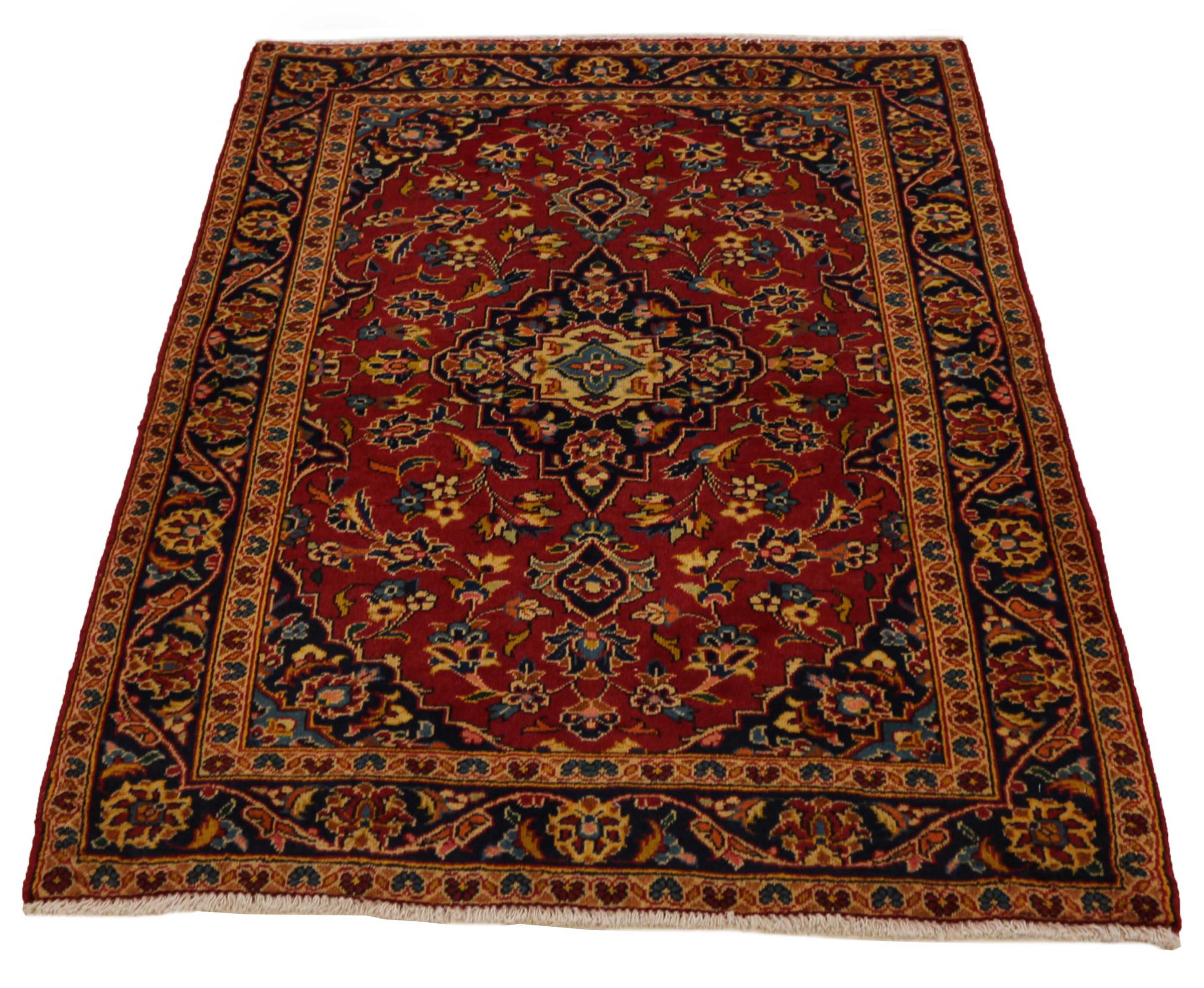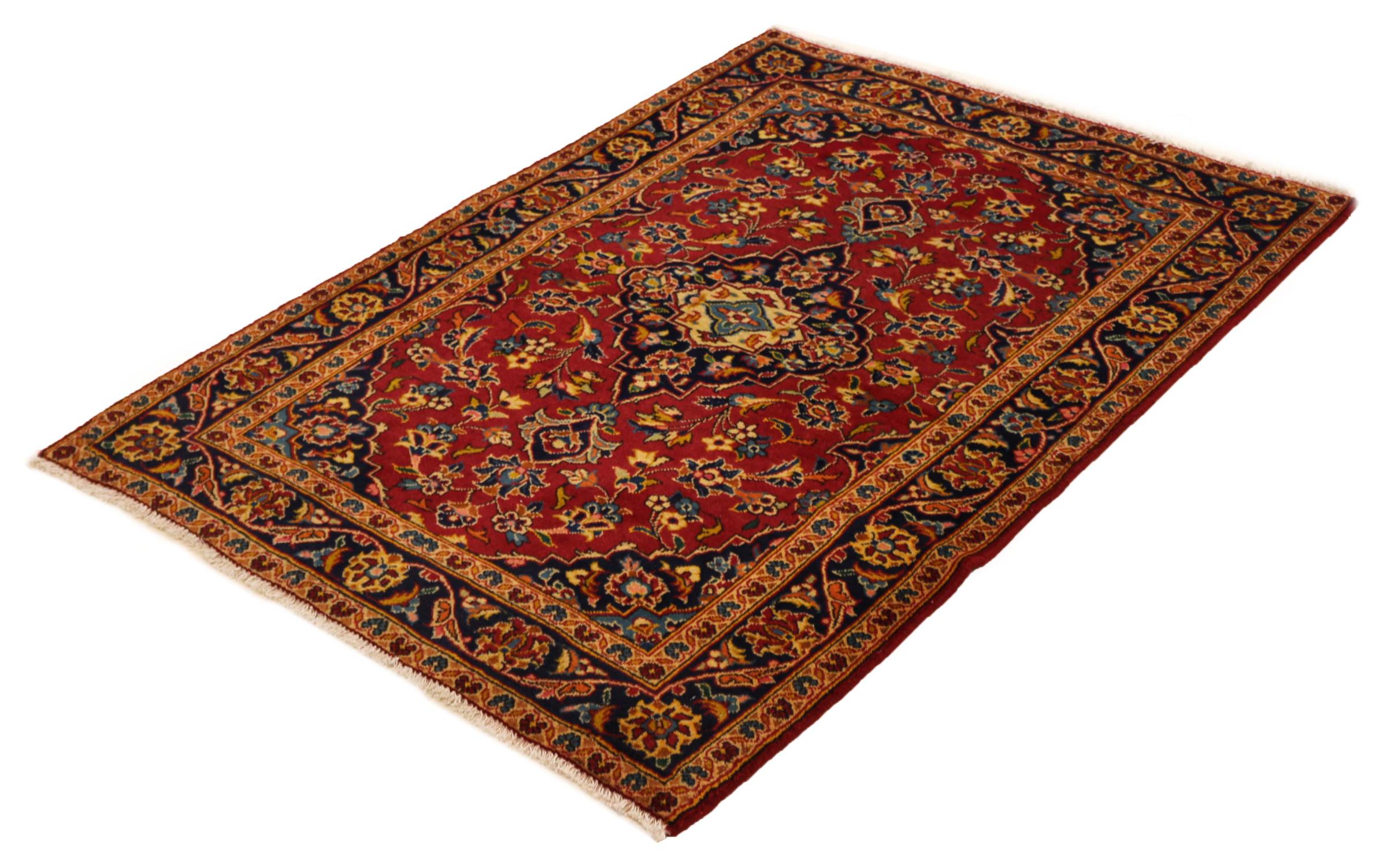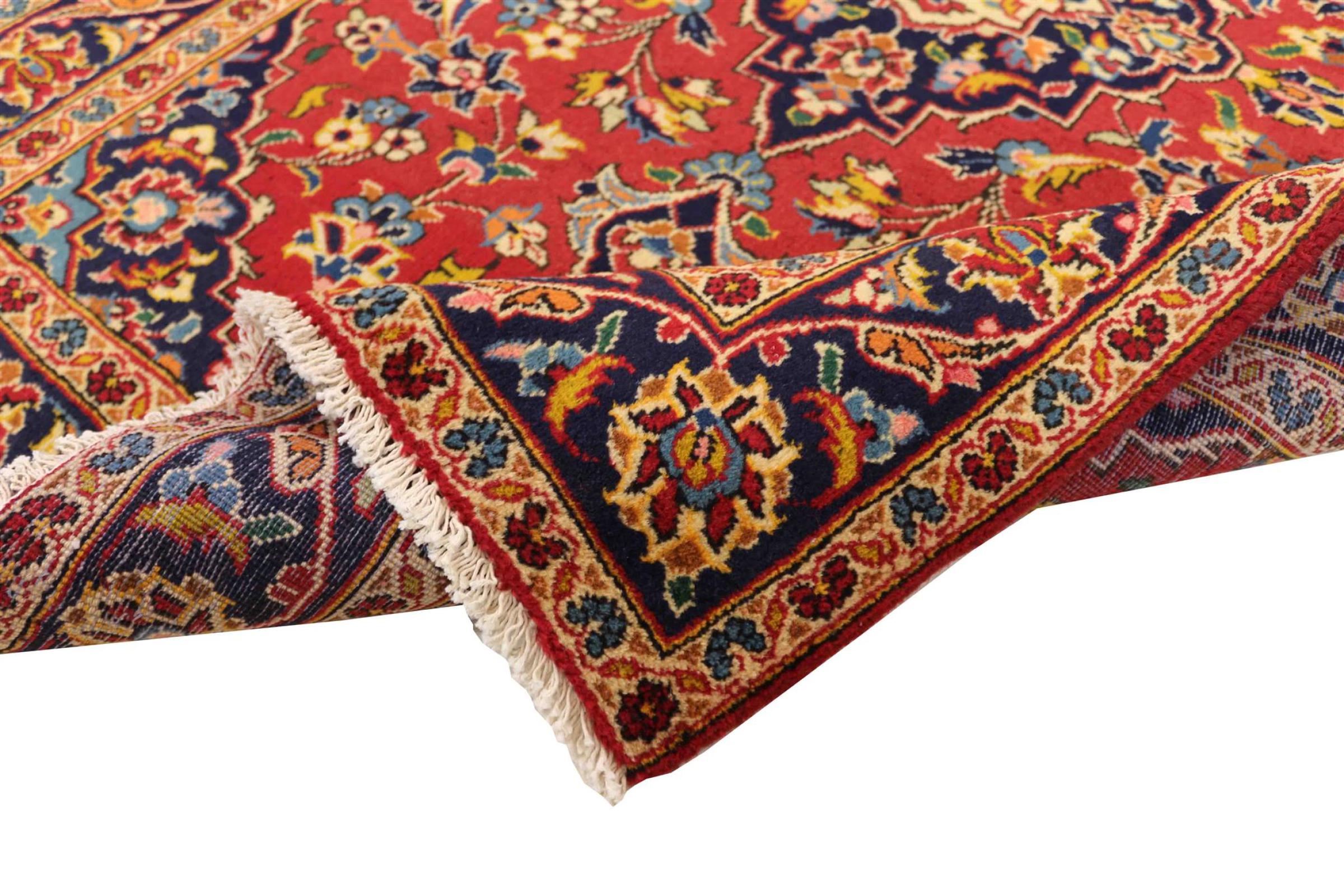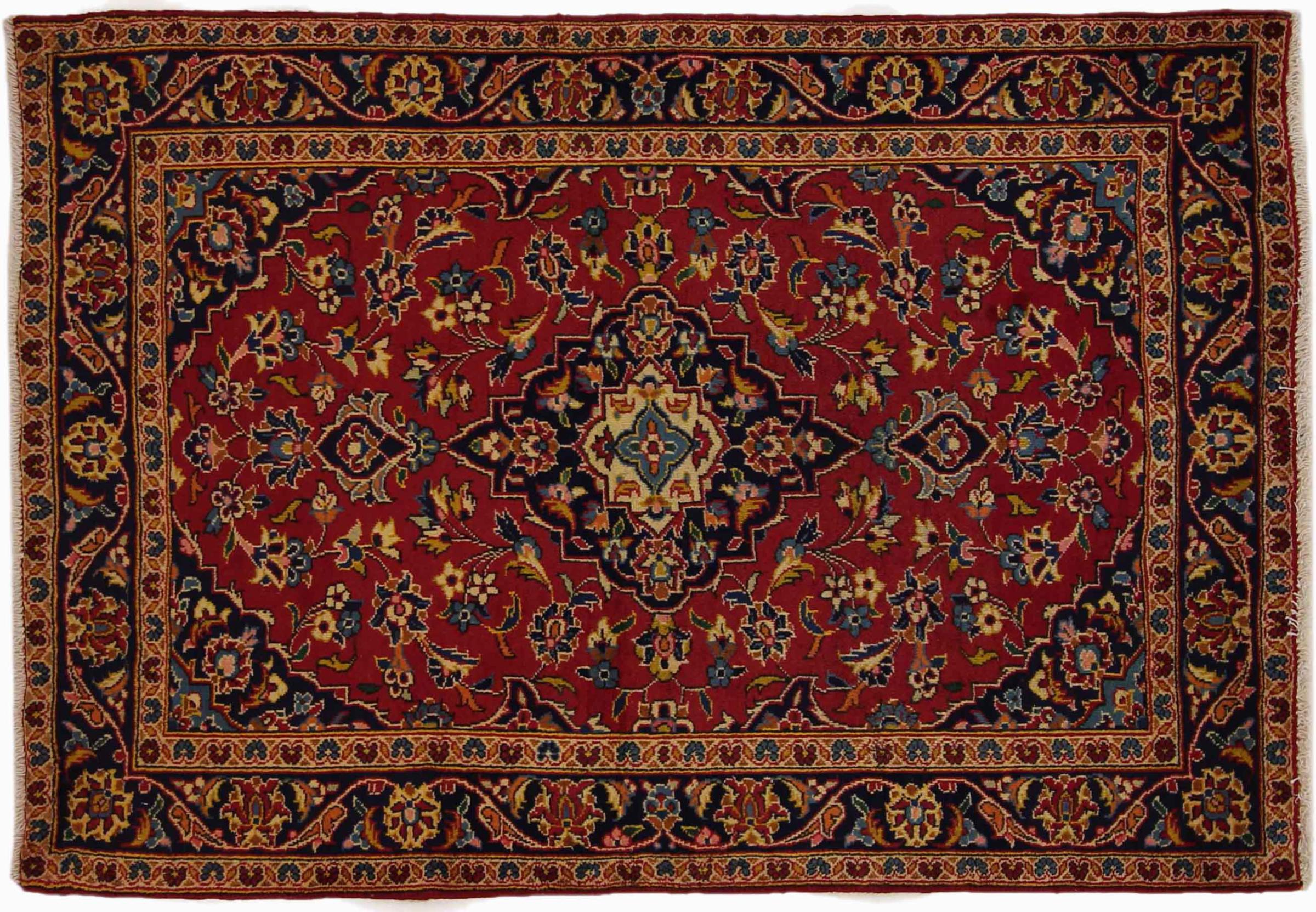 Hand knotted rugs from the city of Kashan (Keshan) are known worldwide. Not only do these Persian rugs have a very popular design, but their quality is undisputedly one of the best. In the Persian Empire the city was considered one of the most important trading places along the famous Silk Road. Kashan rugs usually have a central medallion, floral ornaments and a red background. They are made of high-quality sheep's wool and vegetable dyes.