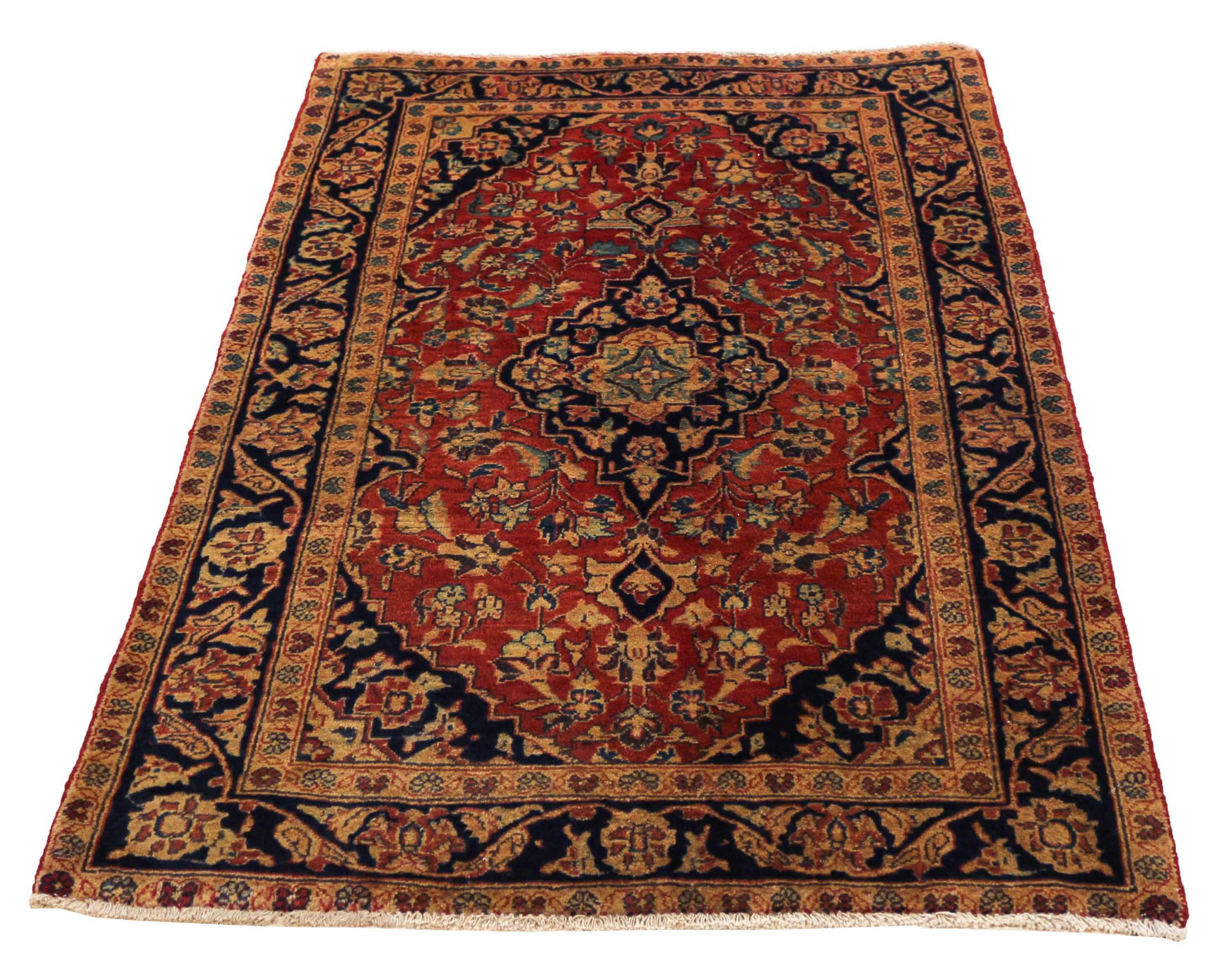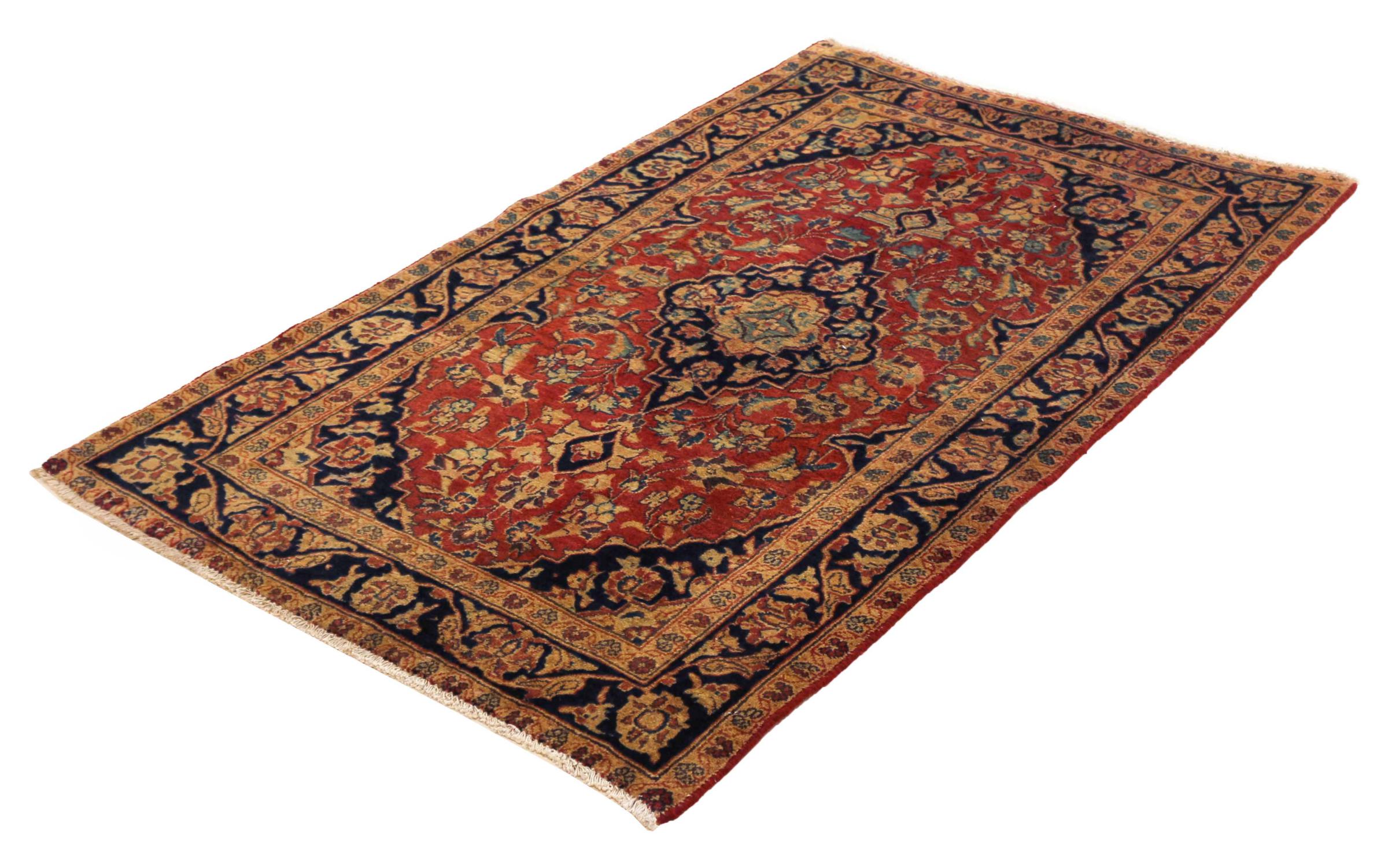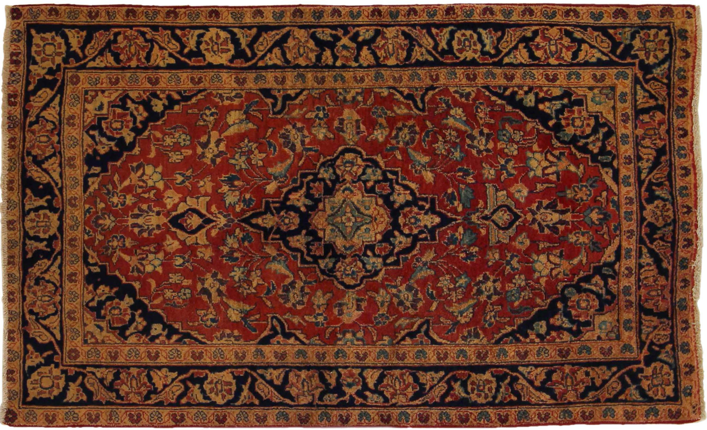 Hand knotted rugs from the city of Kashan (Keshan) are known worldwide. Not only do these Persian rugs have a very popular design, but their quality is undisputedly one of the best. In the Persian Empire the city was considered one of the most important trading places along the famous Silk Road. Kashan rugs usually have a central medallion, floral ornaments and a red background. They are made of high-quality sheep's wool and vegetable dyes.