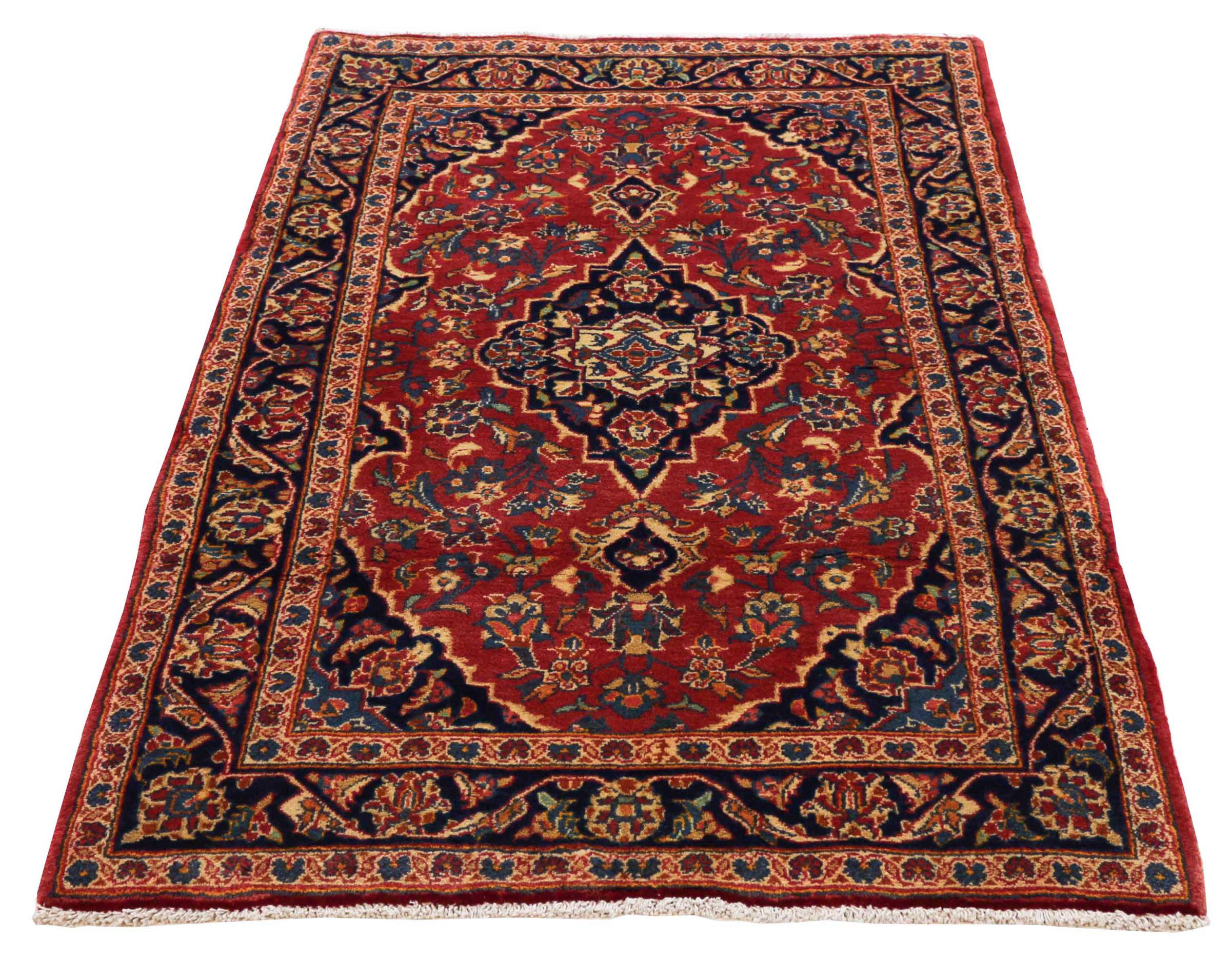 Hand knotted rugs from the city of Kashan (Keshan) are known worldwide. Not only do these Persian rugs have a very popular design, but their quality is undisputedly one of the best. In the Persian Empire the city was considered one of the most important trading places along the famous Silk Road. Kashan rugs usually have a central medallion, floral ornaments and a red background. They are made of high-quality sheep's wool and vegetable dyes.