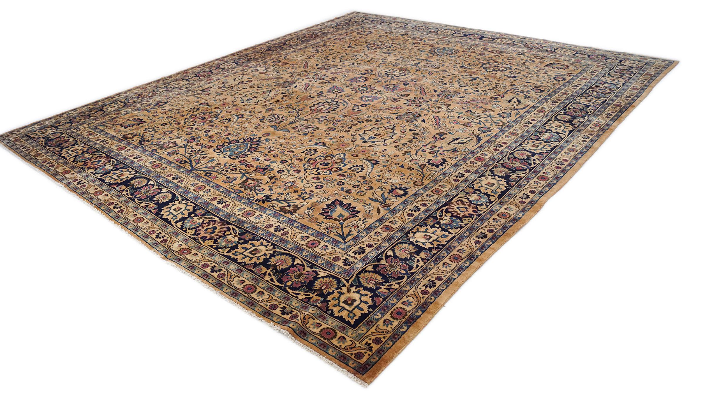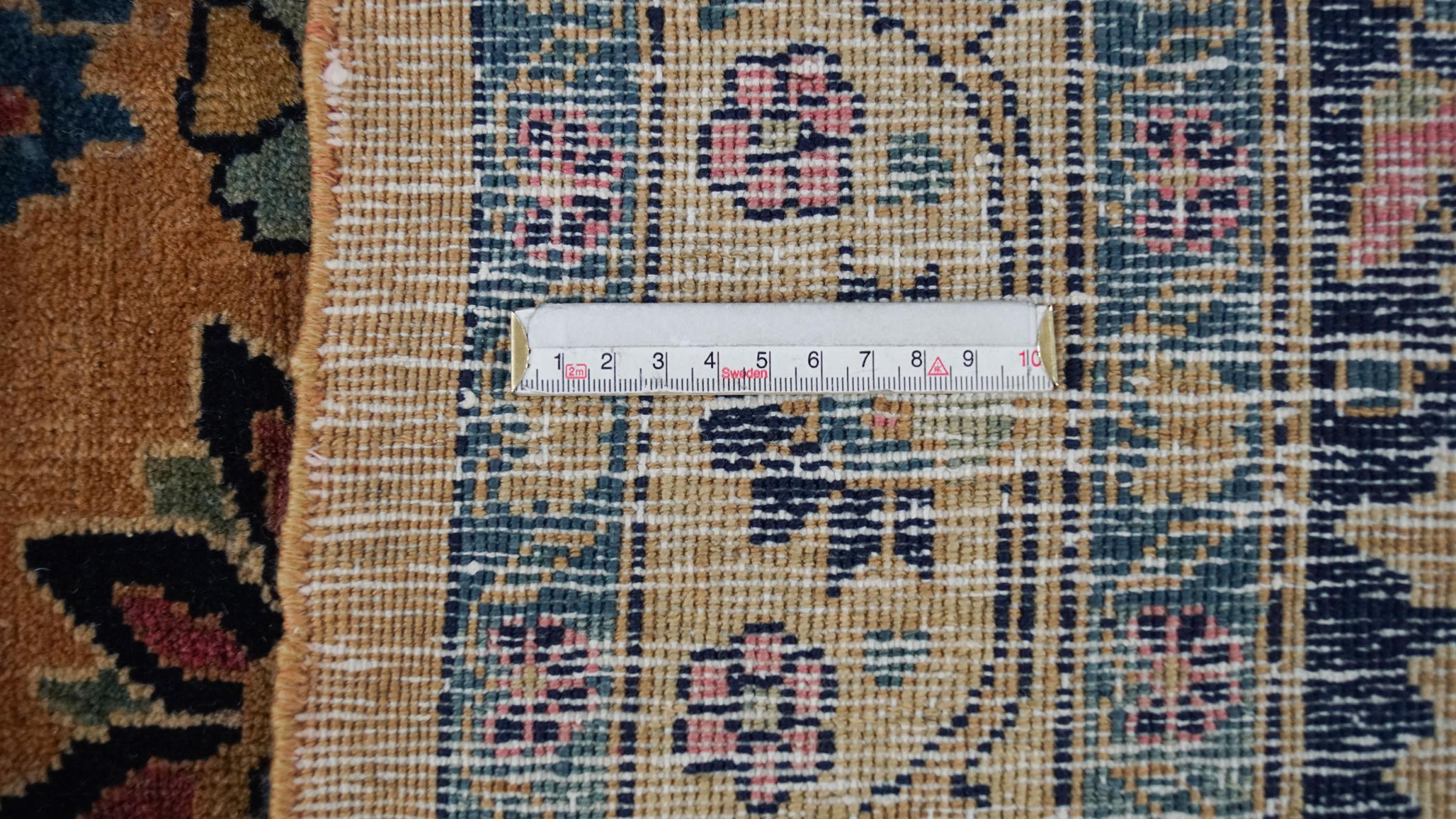 This carpet originates from Mashhad, one of the biggest cities of Iran and Persia. Mashhad carpets are known to be robust and enduring. Mostly they come in extraordinary large scales. A large genuine Persian carpet like this one requires a lot of skill and experience. Generally, it takes several months to craft such a carpet by hand in traditional handicraft.