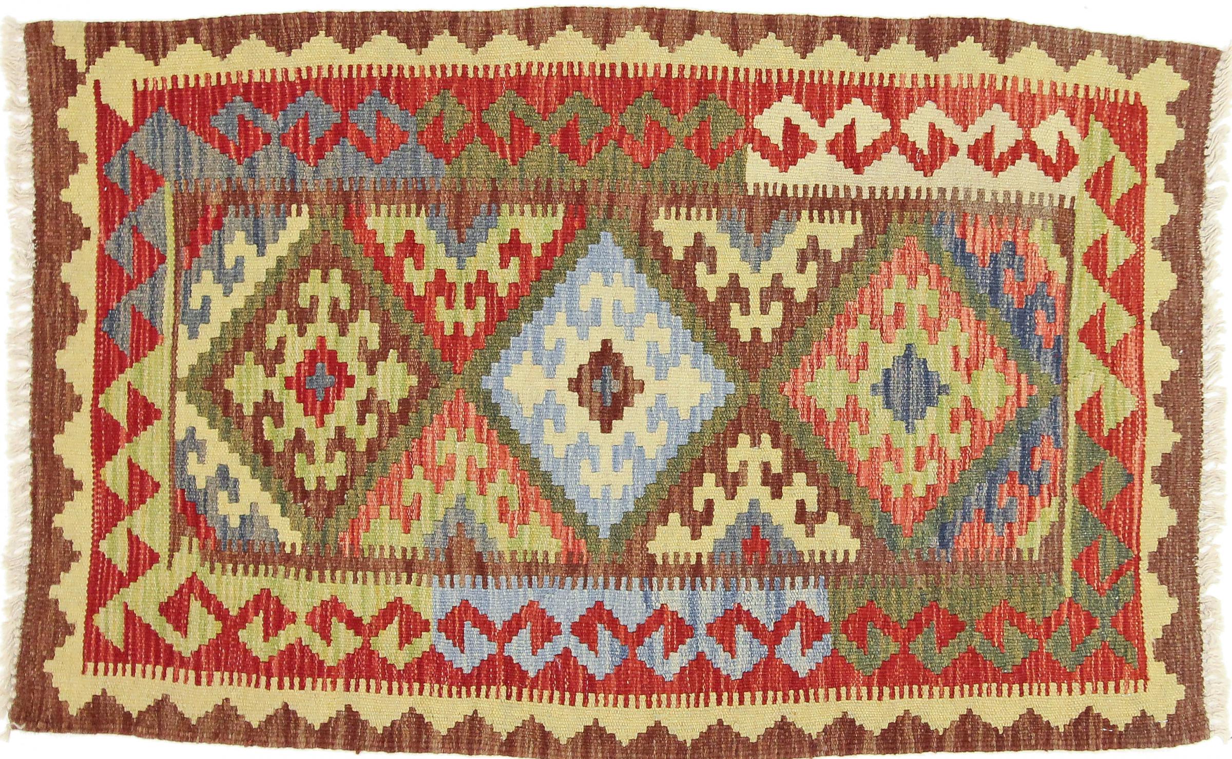 These kilim rugs show a decisive difference to hand-knotted rugs - they are woven by hand. Thus, they do not have a high pile of wool and are often flatter and rougher than knotted wool rugs. Their making is less elaborate and so they are usually much more affordable. As an advantage, kilim rugs are also much lighter and can be laid out from the front and back side. Hand-woven kilims originally come from the former Persia and are now also often made in Afghanistan. They have rather simple, straightforward patterns, which are determined by their weaving technique.