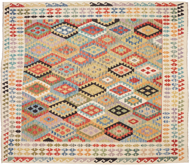 Carpet ID: 291187002745055 Size: 293x259 cm Thickness: ap. 3 mm Manufacturing: Woven by hand Pile: Handspun wool Warp: Cotton Origin: Afghanistan Age: New Weight: ap. 11 kg In stock: Unique - Only 1 in stock