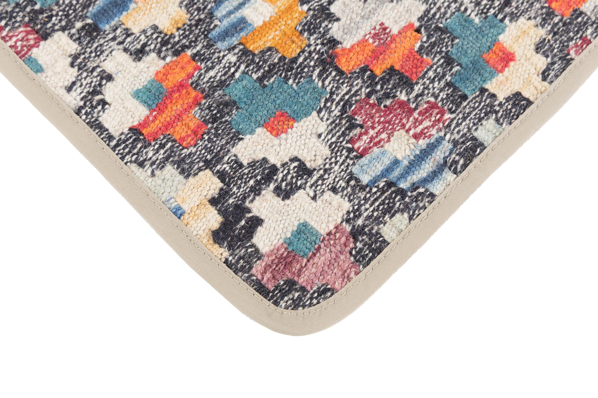 This handwoven Kilim Afghan is a wonderful and unique piece of art. Hard to believe that these modern colours and patterns have already been used centuries ago. This carpet has been woven by hand in old tradition in Afghanistan. It delivers a portion of contemporary history, which you won't find in this specific design a second time. It consists of high-grade natural wool and gives your home a personalised touch.