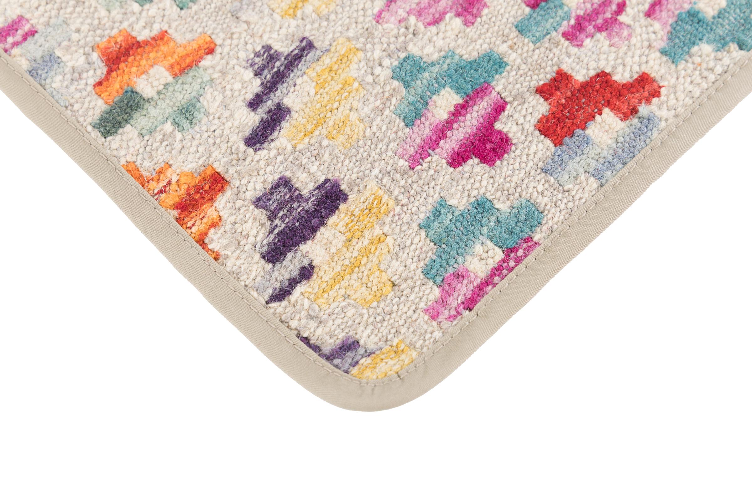 This handwoven Kilim Afghan is a wonderful and unique piece of art. Hard to believe that these modern colours and patterns have already been used centuries ago. This carpet has been woven by hand in old tradition in Afghanistan. It delivers a portion of contemporary history, which you won't find in this specific design a second time. It consists of high-grade natural wool and gives your home a personalised touch.