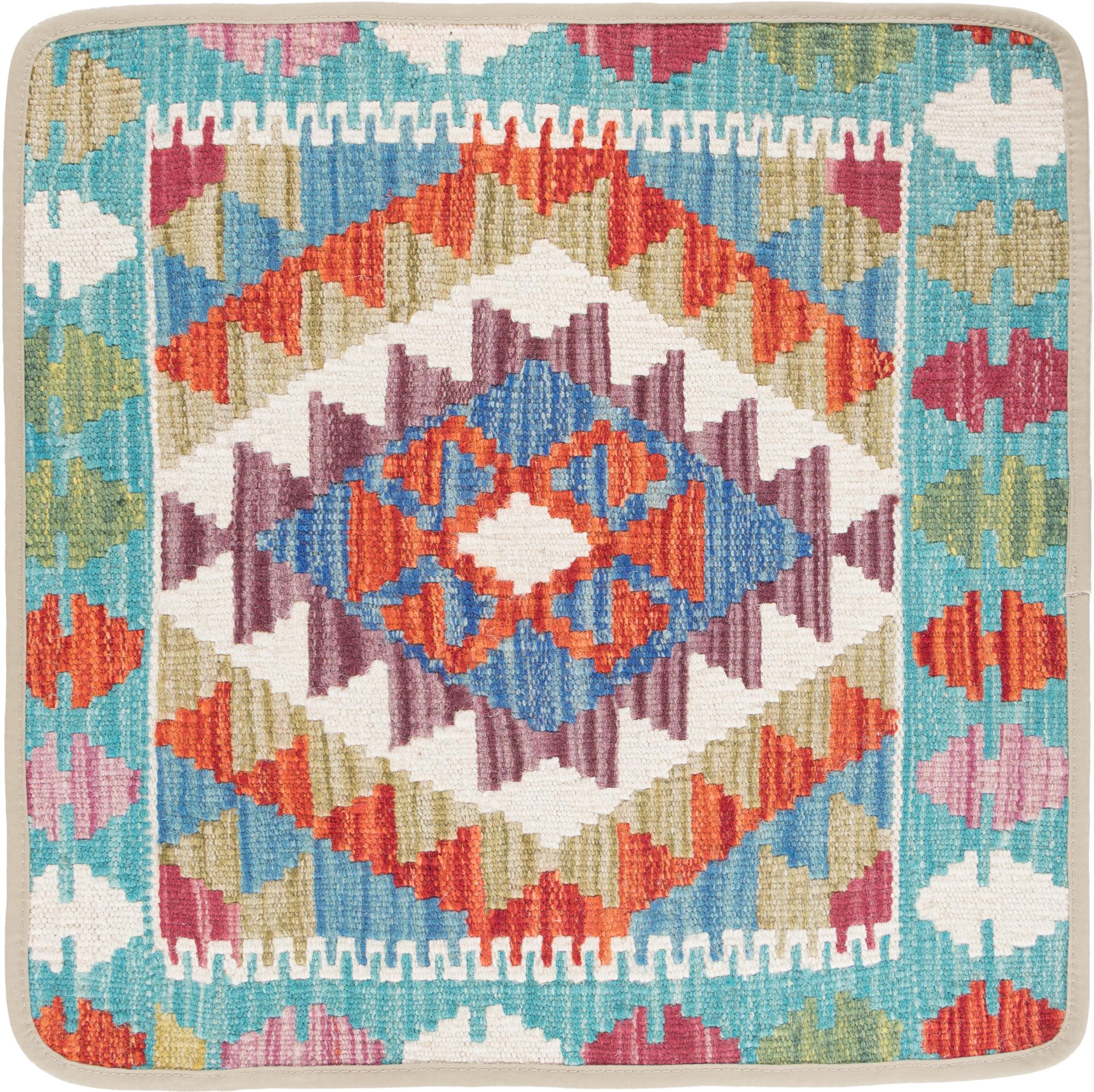 This handwoven Kilim Afghan is a wonderful and unique piece of art. Hard to believe that these modern colours and patterns have already been used centuries ago. This carpet has been woven by hand in old tradition in Afghanistan. It delivers a portion of contemporary history, which you won't find in this specific design a second time. It consists of high-grade natural wool and gives your home a personalised touch.
