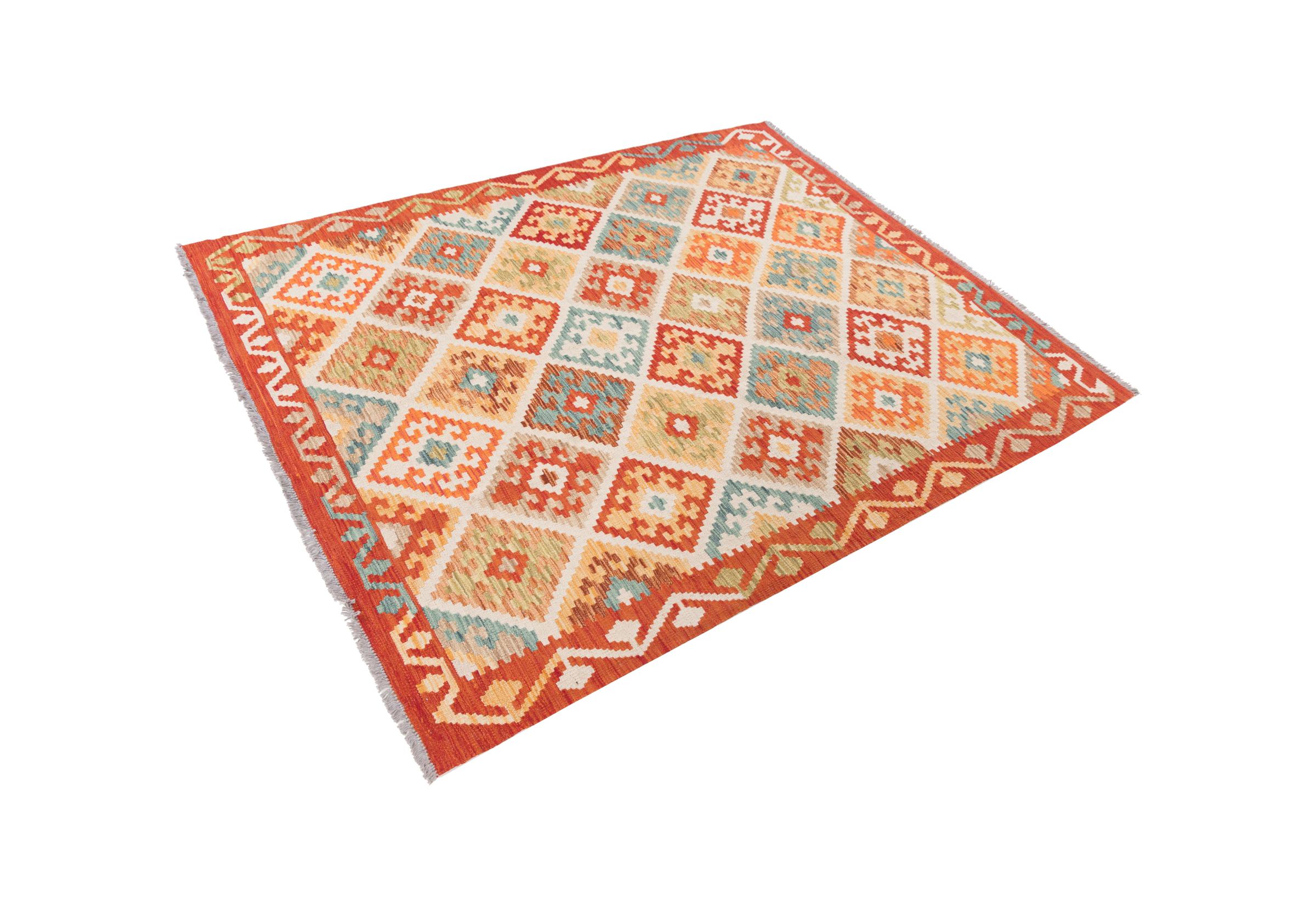 Our Kilim Afghan Heritage collection is in each and every detail exceptional. It combines the most traditional way of crafting a Kilim with contemporary modern design elements. Not only has this carpet been woven by hand, its wool has also been spun by hand like for Kilims centuries ago. The geometric patterns make this carpet a pure enrichment for modern interior concepts. It is going to deeply impress you and your guests. You won't get more value for your money than for this Kilim Heritage.