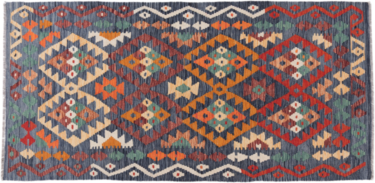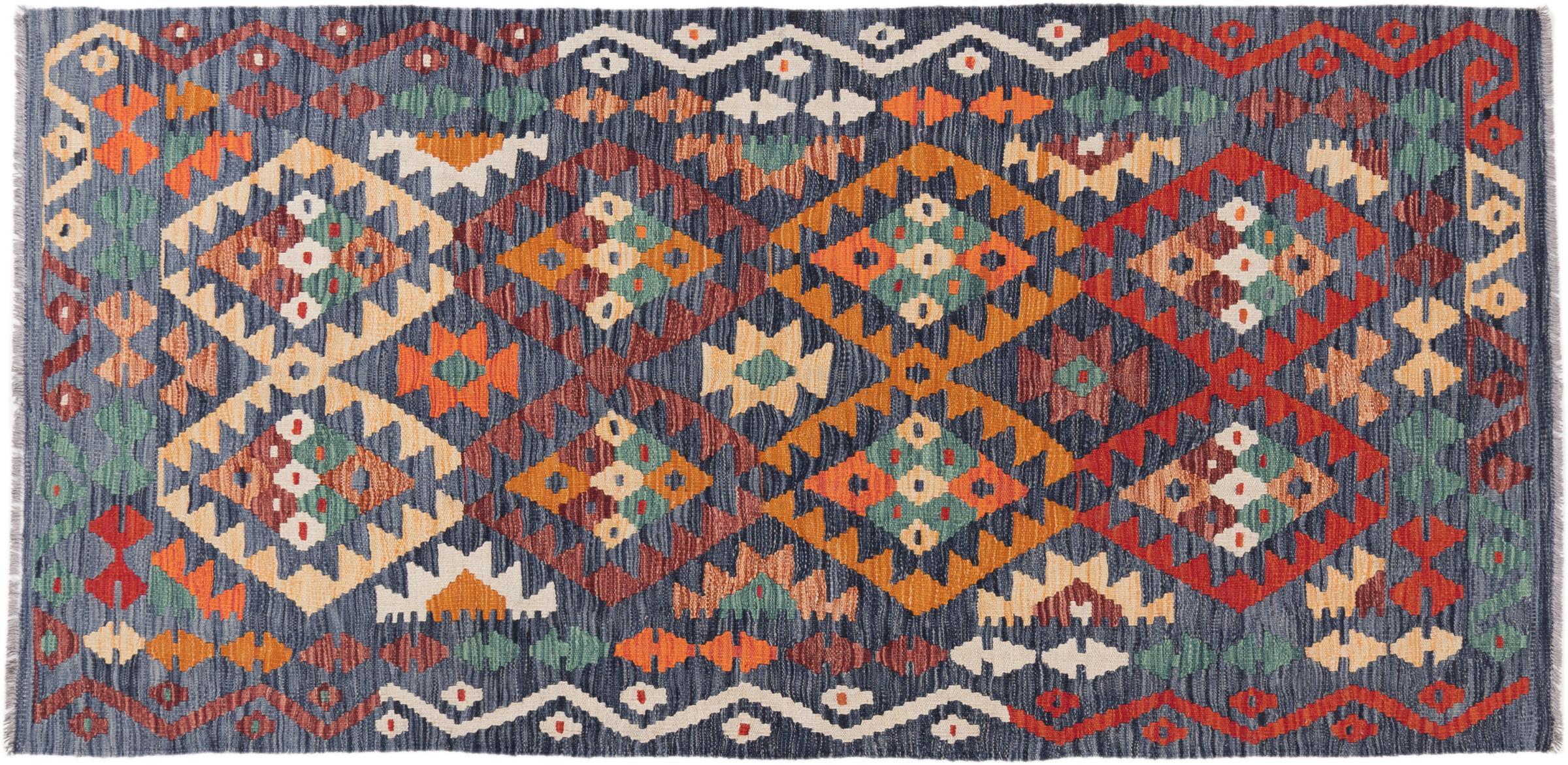 Carpet ID: 2943540047450 Size: 214x105 cm Thickness: ap. 3 mm Manufacturing: Woven by hand Pile: Handspun wool Warp: Sheep wool Origin: Afghanistan Age: New Weight: ap. 3 kg Also know as Kilim, Qilim, Chilim, Afgan, Afghán In stock: Unique - Only 1 in stock