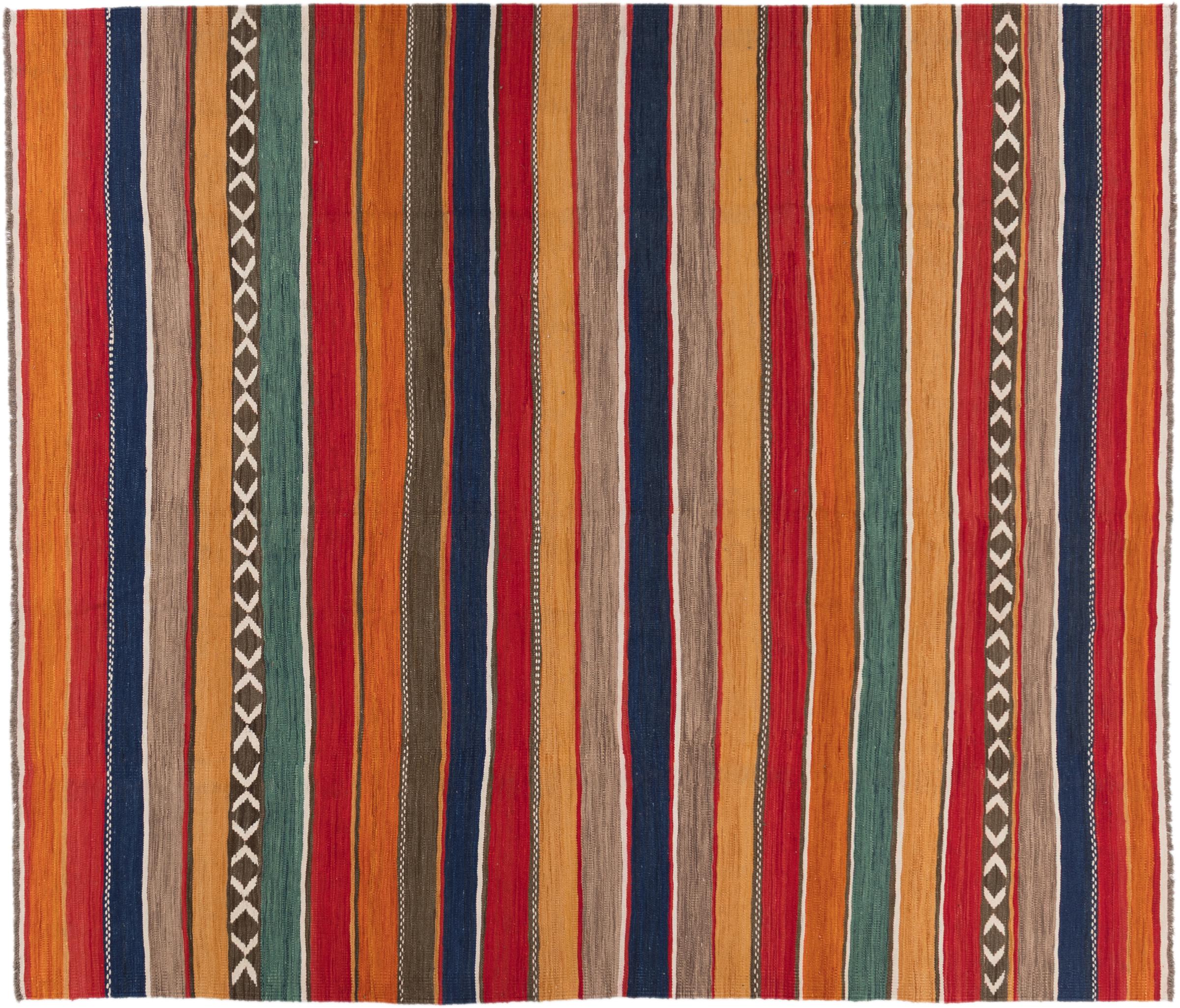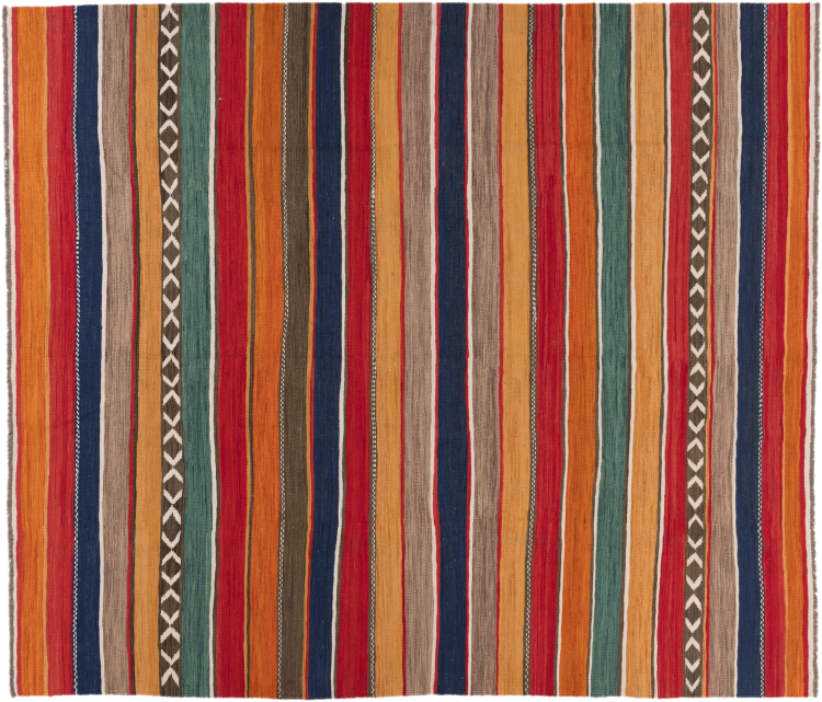 Carpet ID: 2950280048314 Size: 298x258 cm Thickness: ap. 3 mm Manufacturing: Woven by hand Pile: Handspun wool Warp: Sheep wool Origin: Afghanistan Age: New Weight: ap. 12 kg Also know as Kilim, Qilim, Chilim, Afgan, Afghán In stock: Unique - Only 1 in stock