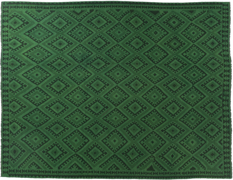 This rug was made as a flat weave by hand on a loom. Flatweave is the term used to describe rugs that have no pile. As the name promises, these rugs are woven and not knotted. This results in a flat rug with a structured surface. Flatweaves are not as soft and usually thinner than knotted rugs. At the same time they are much less complex to manufacture and can usually be laid out from both sides (front and back). Their patterns are usually geometric, which is determined by the fabric.