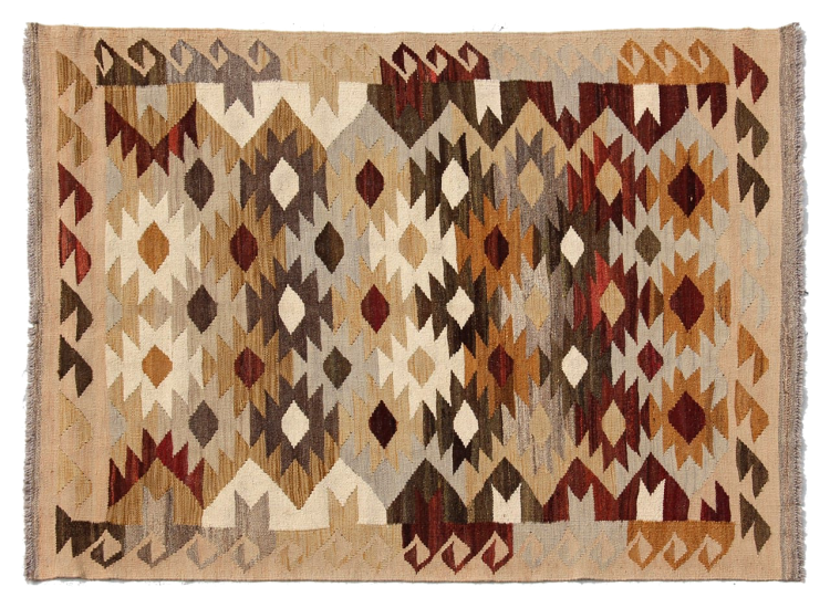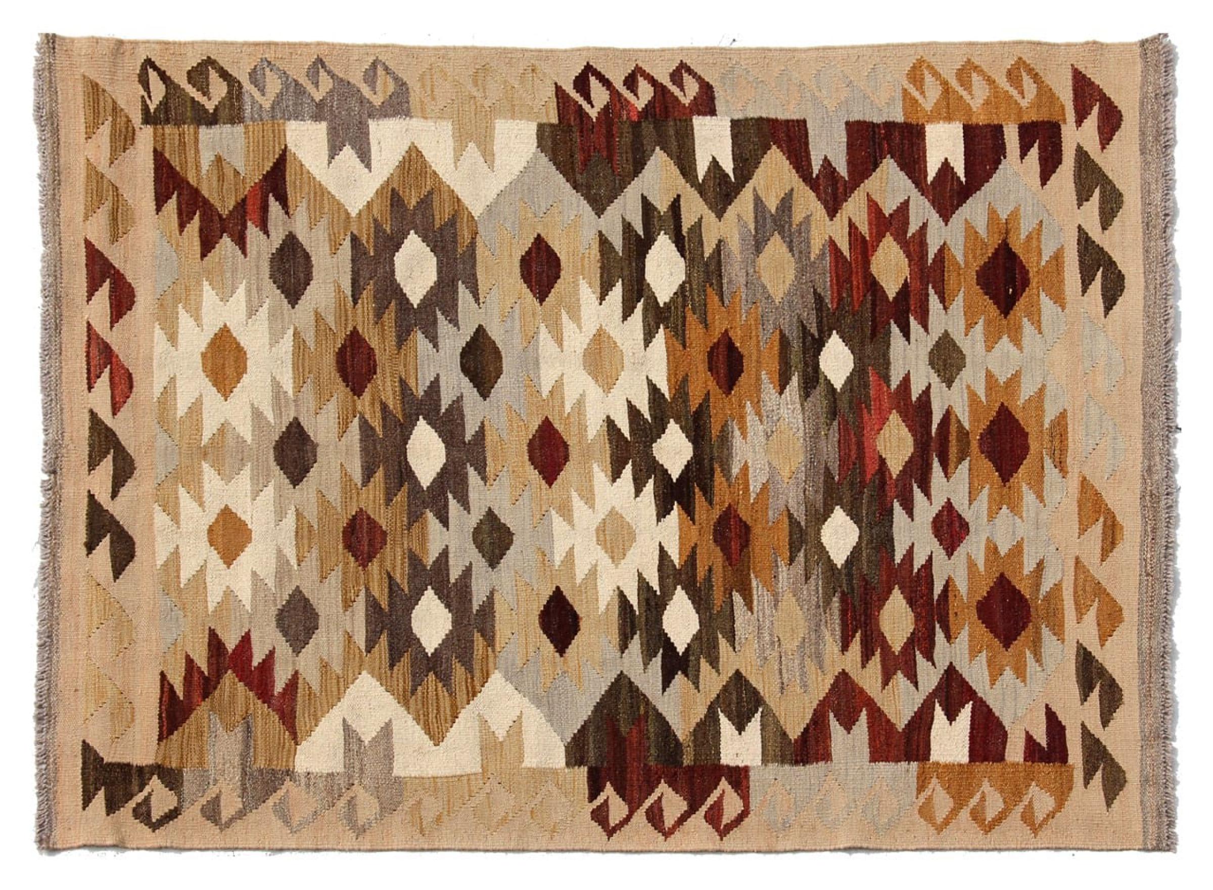 These kilim rugs show a decisive difference to hand-knotted rugs - they are woven by hand. Thus, they do not have a high pile of wool and are often flatter and rougher than knotted wool rugs. Their making is less elaborate and so they are usually much more affordable. As an advantage, kilim rugs are also much lighter and can be laid out from the front and back side. Hand-woven kilims originally come from the former Persia and are now also often made in Afghanistan. They have rather simple, straightforward patterns, which are determined by their weaving technique.