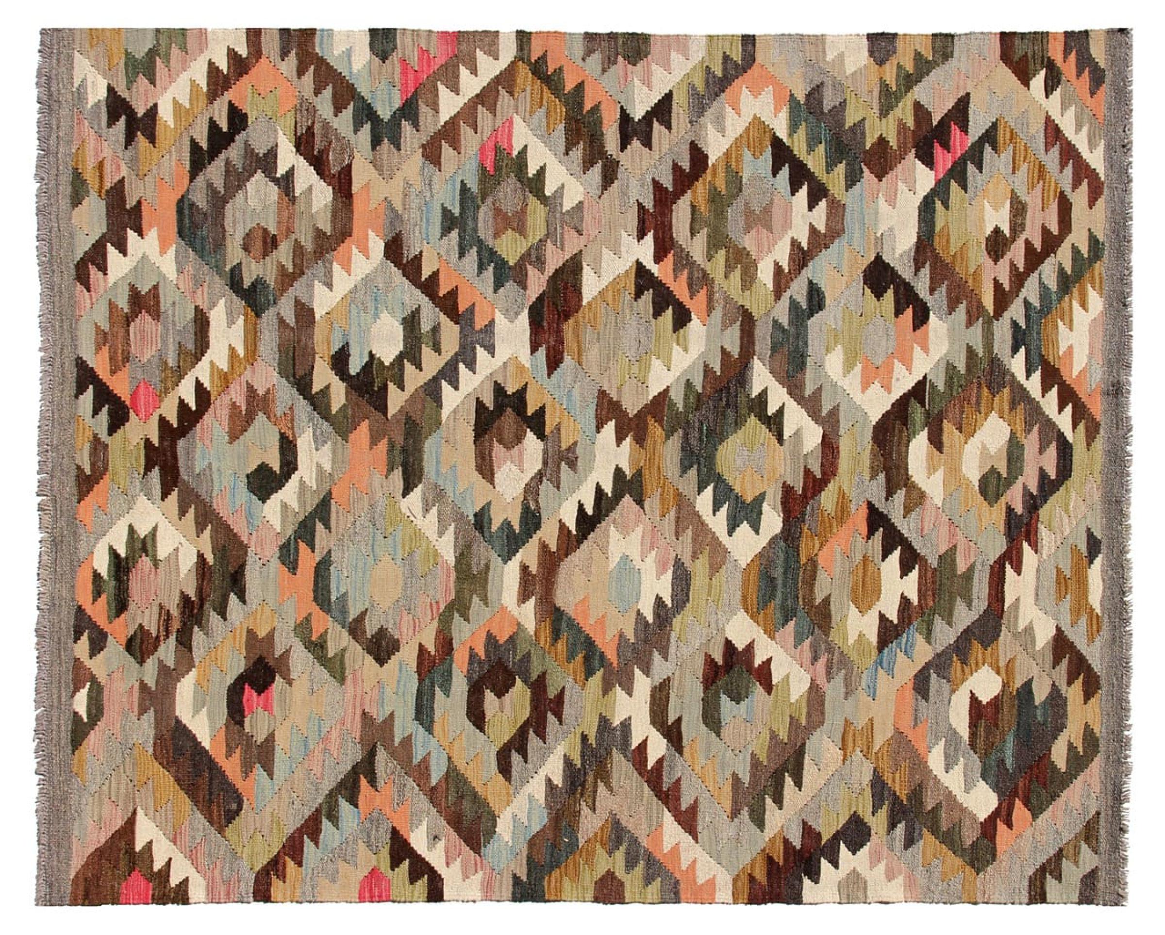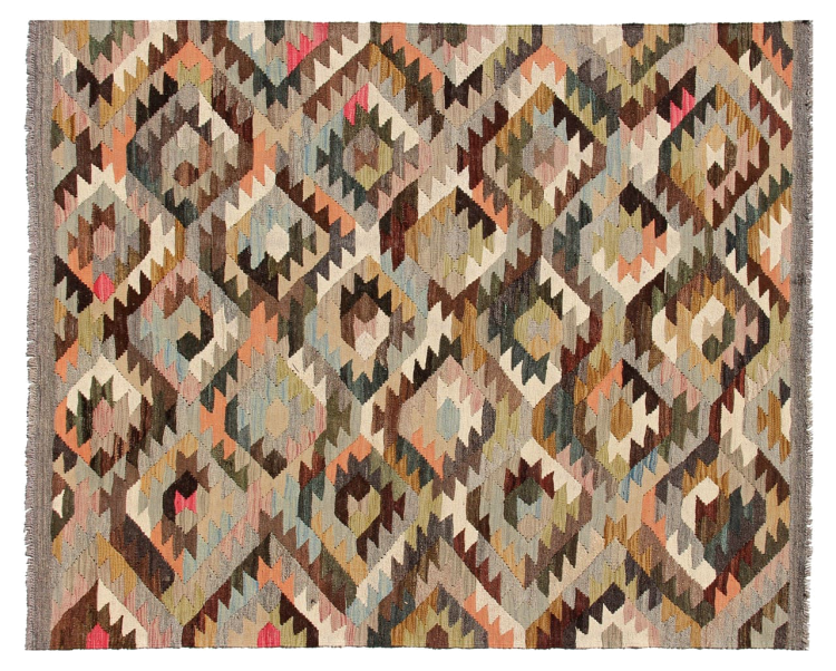 This handwoven Kilim Afghan is a wonderful and unique piece of art. Hard to believe that these modern colours and patterns have already been used centuries ago. This carpet has been woven by hand in old tradition in Afghanistan. It delivers a portion of contemporary history, which you won't find in this specific design a second time. It consists of high-grade natural wool and gives your home a personalised touch.