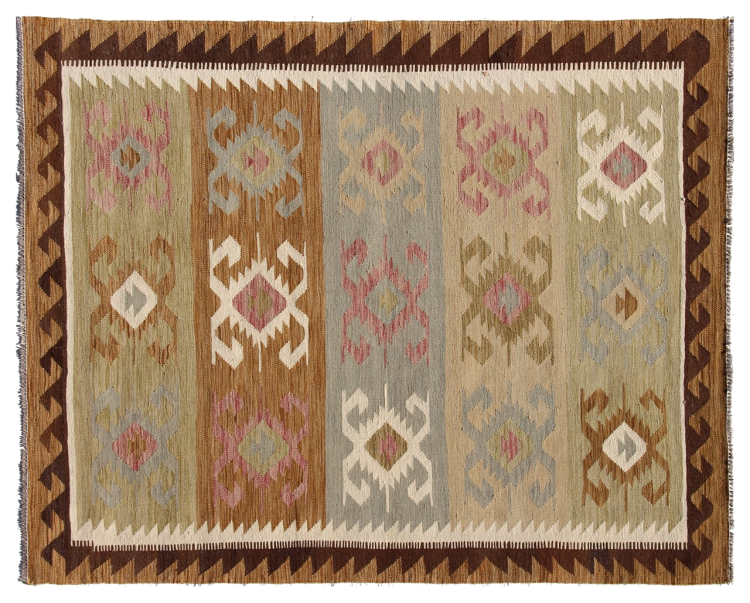These kilim rugs show a decisive difference to hand-knotted rugs - they are woven by hand. Thus, they do not have a high pile of wool and are often flatter and rougher than knotted wool rugs. Their making is less elaborate and so they are usually much more affordable. As an advantage, kilim rugs are also much lighter and can be laid out from the front and back side. Hand-woven kilims originally come from the former Persia and are now also often made in Afghanistan. They have rather simple, straightforward patterns, which are determined by their weaving technique.