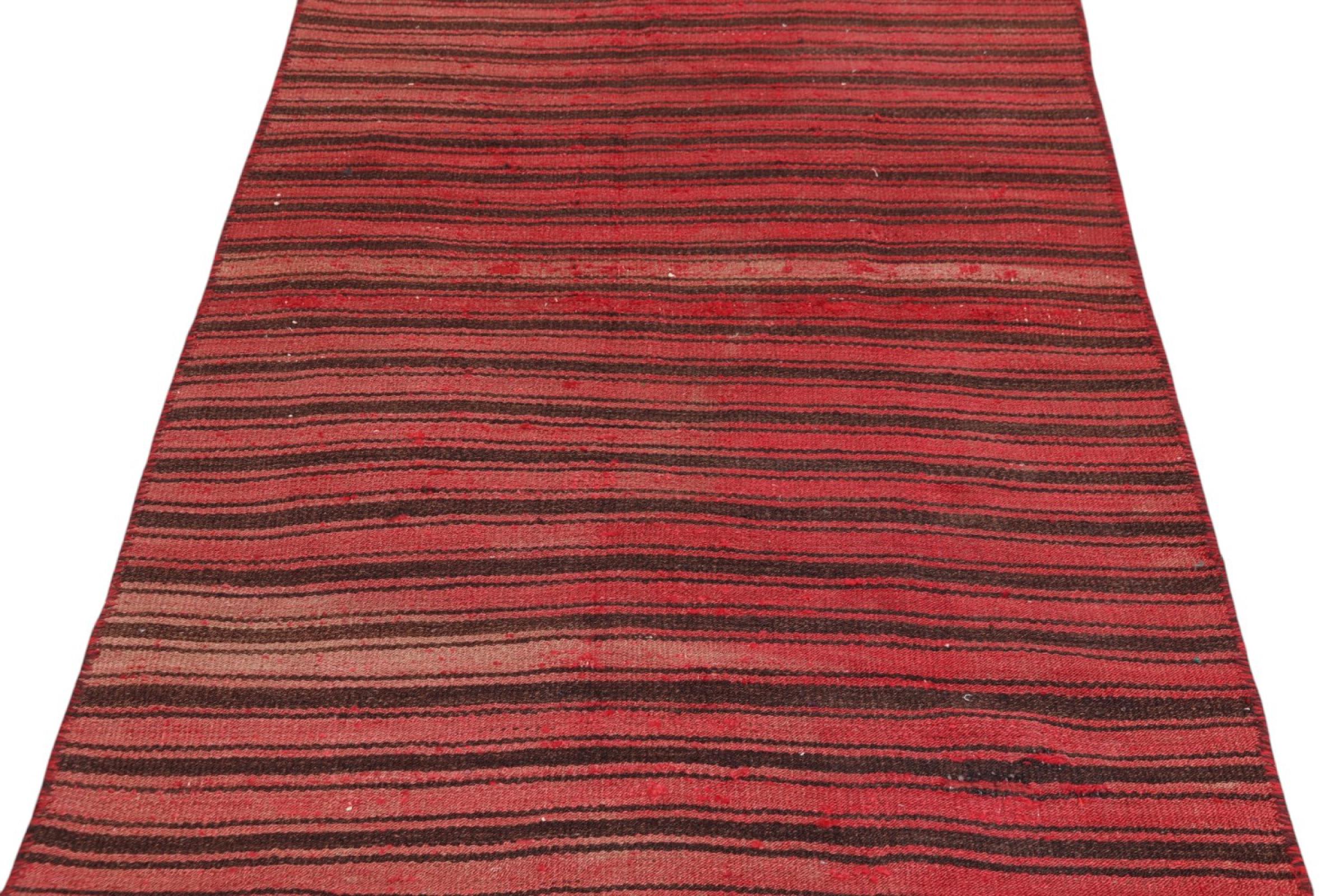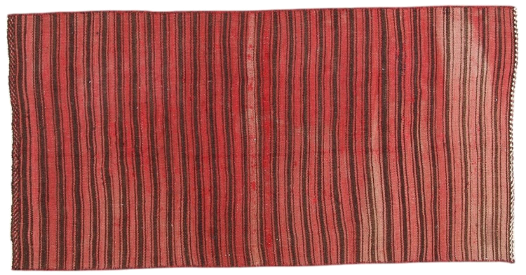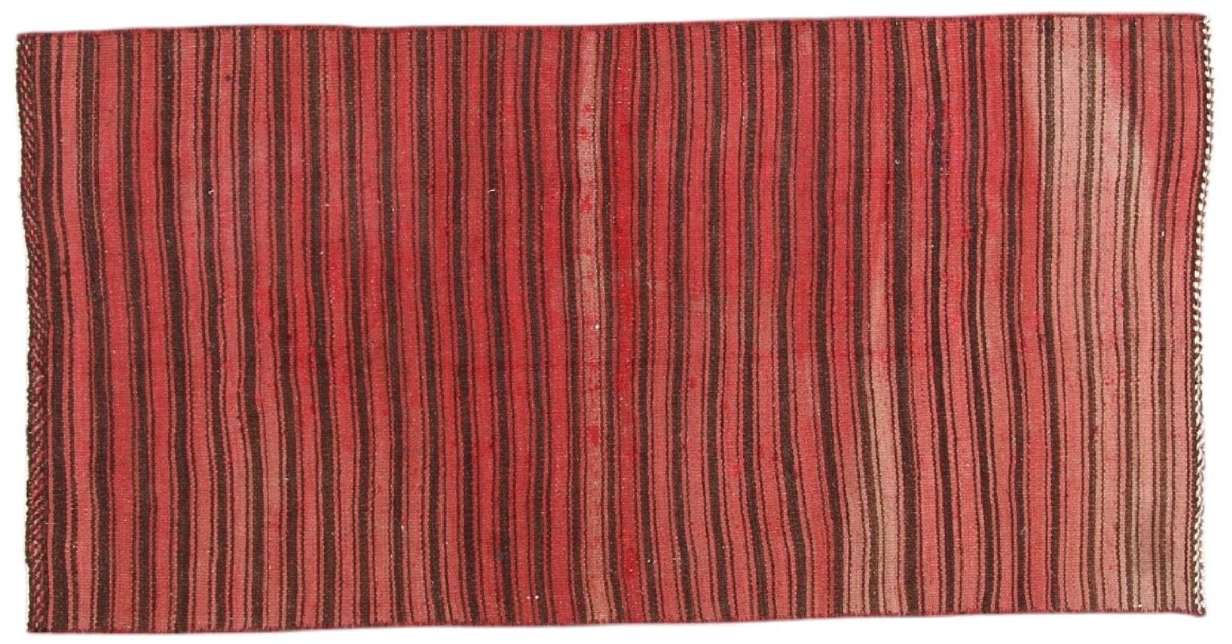 This rug was made as a flat weave by hand on a loom. Flatweave is the term used to describe rugs that have no pile. As the name promises, these rugs are woven and not knotted. This results in a flat rug with a structured surface. Flatweaves are not as soft and usually thinner than knotted rugs. At the same time they are much less complex to manufacture and can usually be laid out from both sides (front and back). Their patterns are usually geometric, which is determined by the fabric.