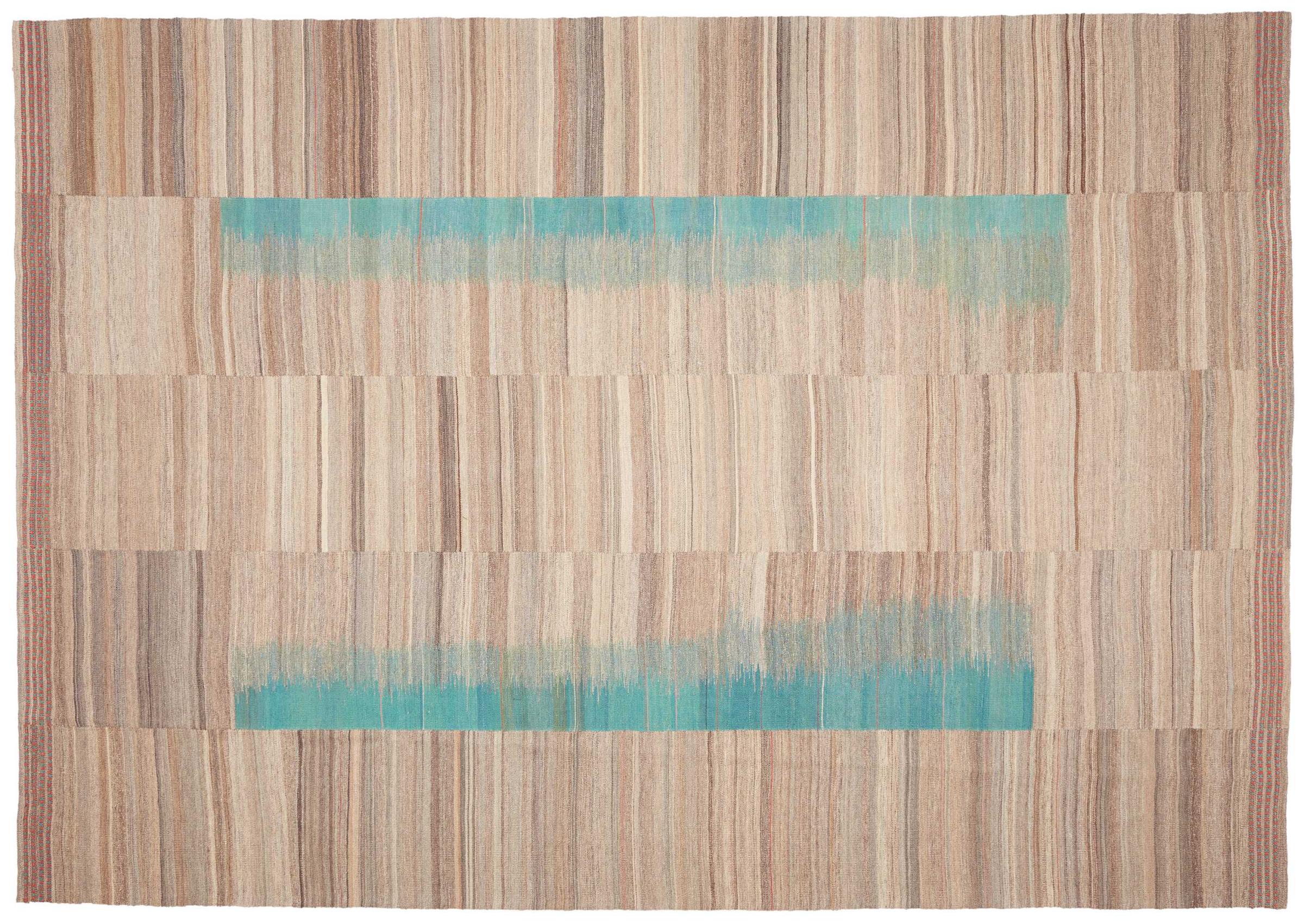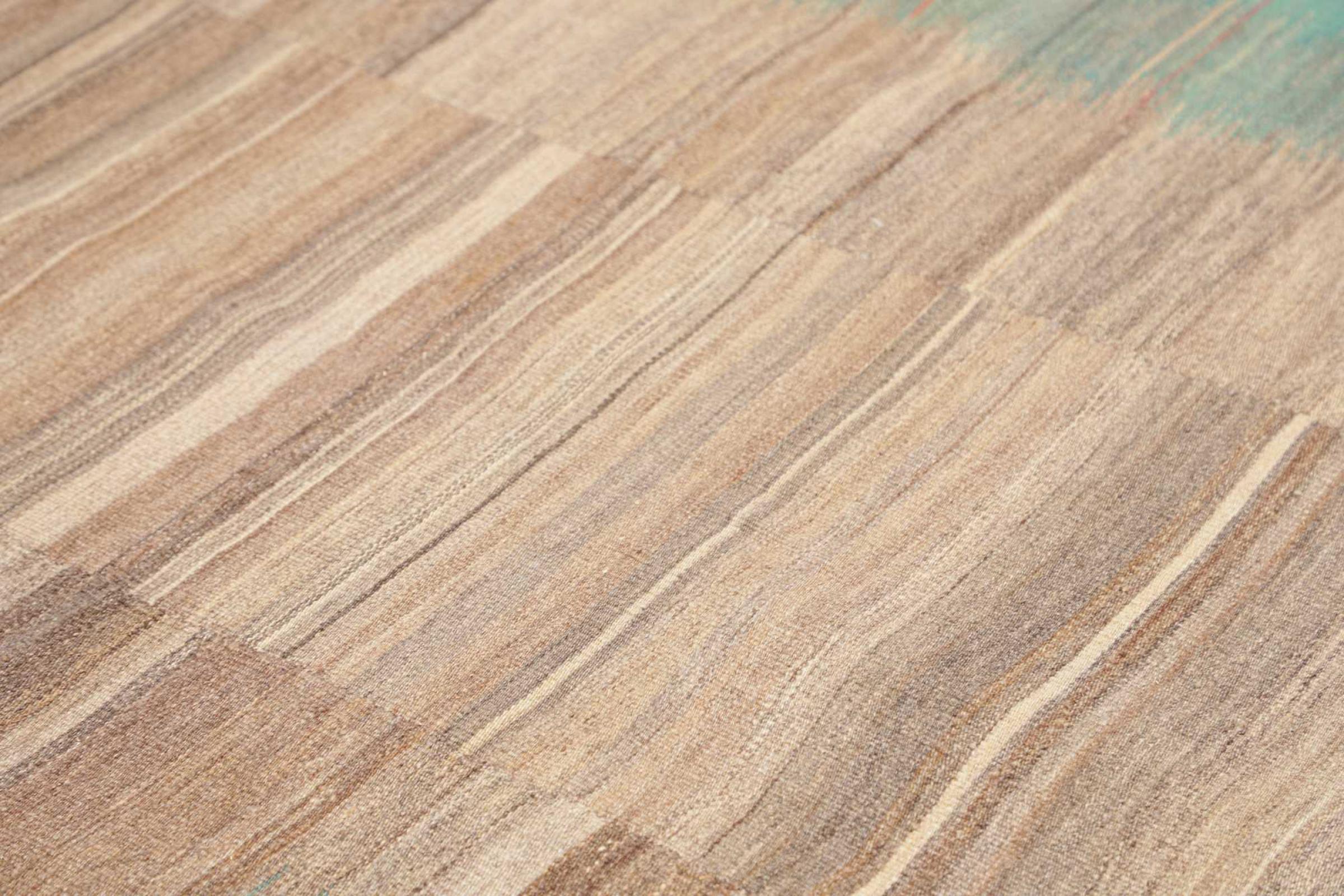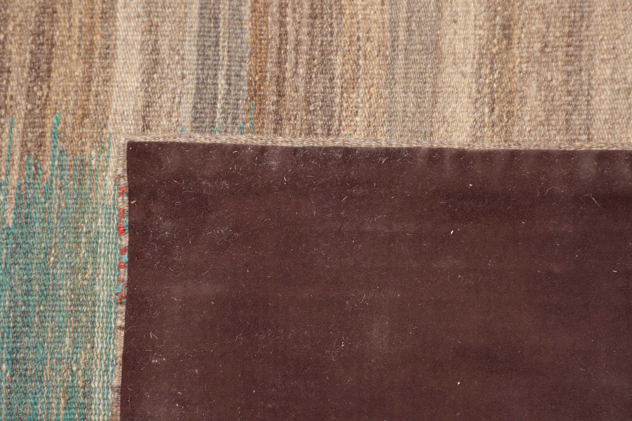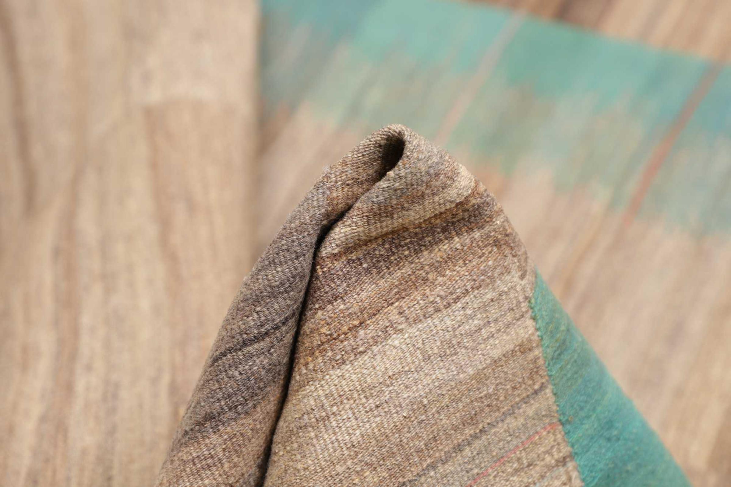 This rug was made as a flat weave by hand on a loom. Flatweave is the term used to describe rugs that have no pile. As the name promises, these rugs are woven and not knotted. This results in a flat rug with a structured surface. Flatweaves are not as soft and usually thinner than knotted rugs. At the same time they are much less complex to manufacture and can usually be laid out from both sides (front and back). Their patterns are usually geometric, which is determined by the fabric.