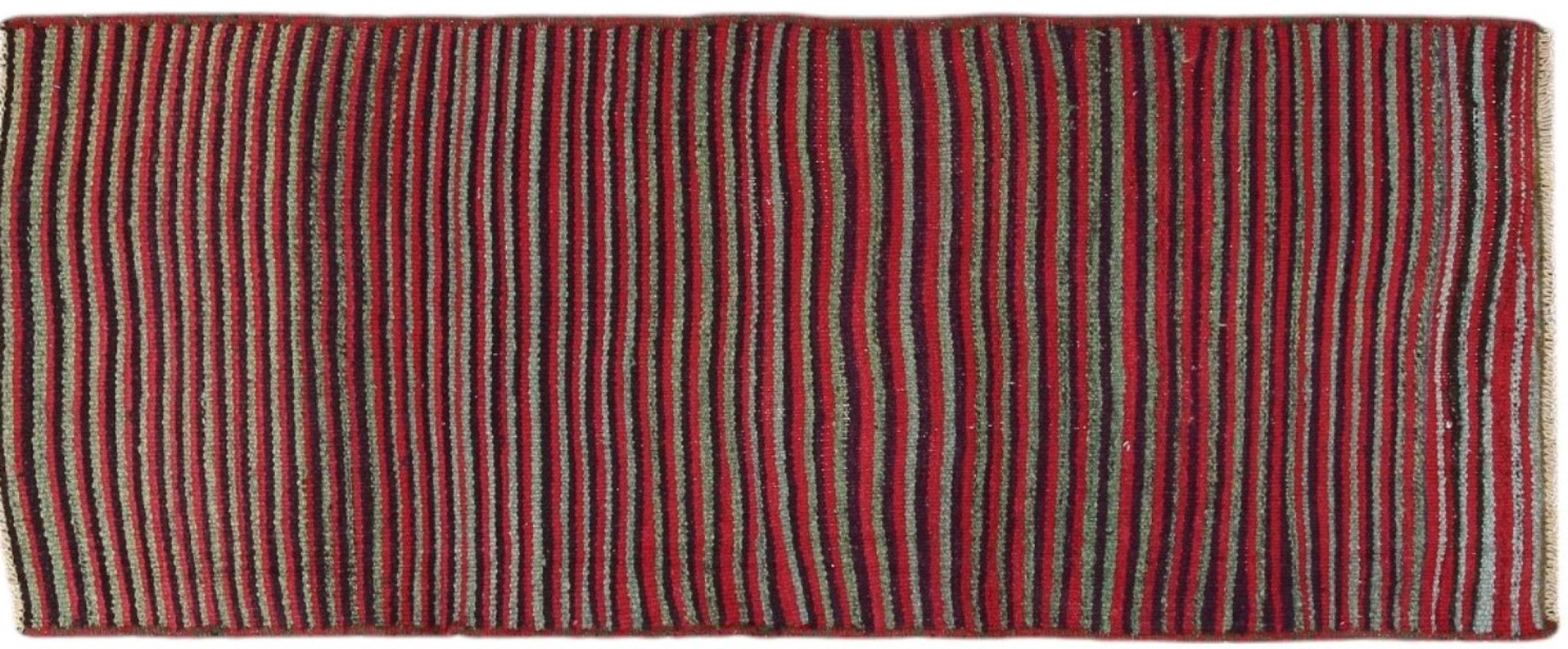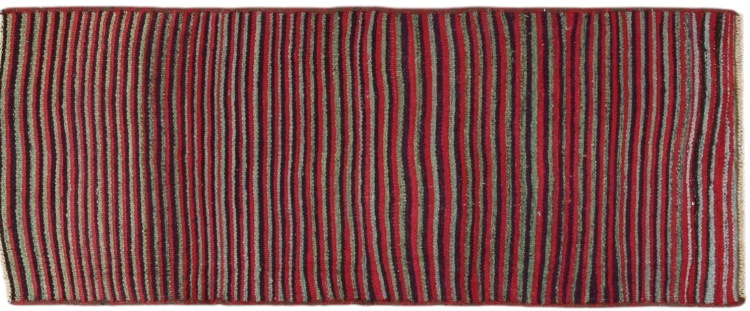 This rug was made as a flat weave by hand on a loom. Flatweave is the term used to describe rugs that have no pile. As the name promises, these rugs are woven and not knotted. This results in a flat rug with a structured surface. Flatweaves are not as soft and usually thinner than knotted rugs. At the same time they are much less complex to manufacture and can usually be laid out from both sides (front and back). Their patterns are usually geometric, which is determined by the fabric.