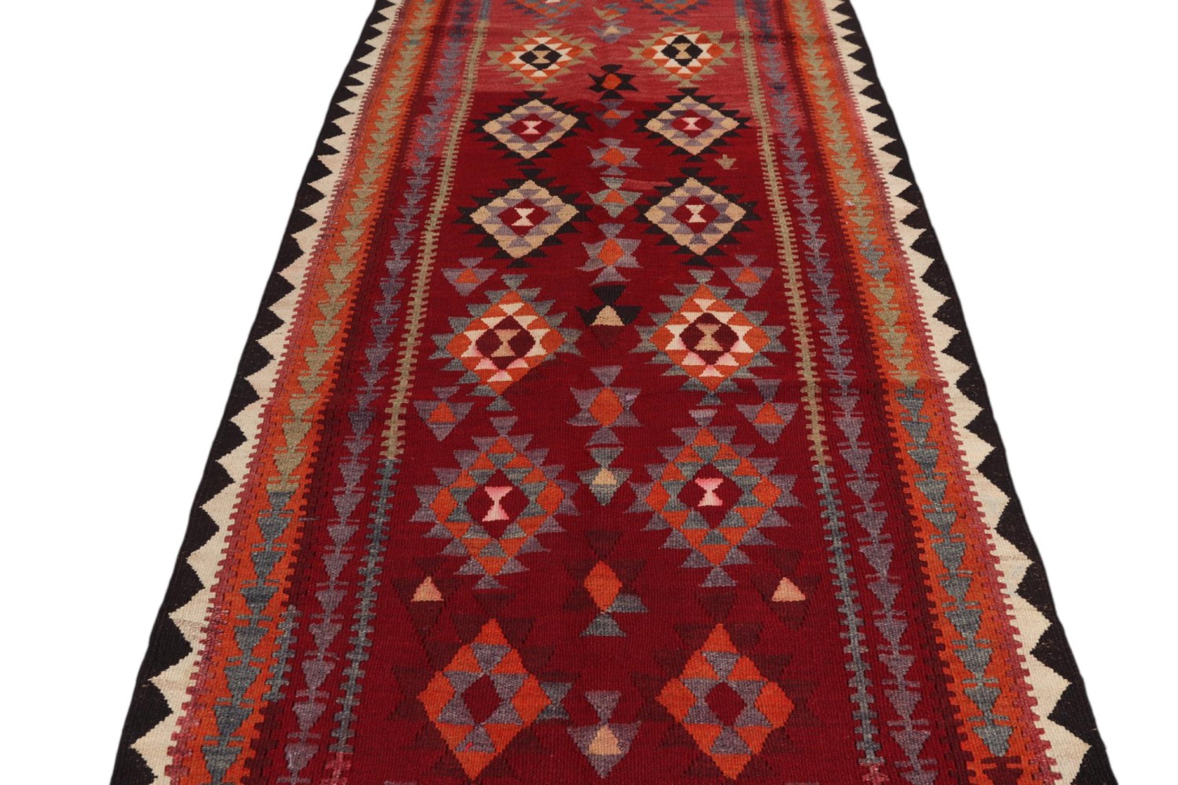 This handwoven Kilim Fars combines Persian patterns with the old tradition of flat fabrics. It represents a beautiful composition of contemporary Persian elements and a modern style. Due to the carpet's geometric patterns and its warm colours, this type of rug is extremely popular in modern interior magazines. Additionally, this Kilim can be used in many different ways. Whether you would like to use it as a bed cover or as a carpet in front of your sofa – a Kilim Fars fulfils nearly all wishes.