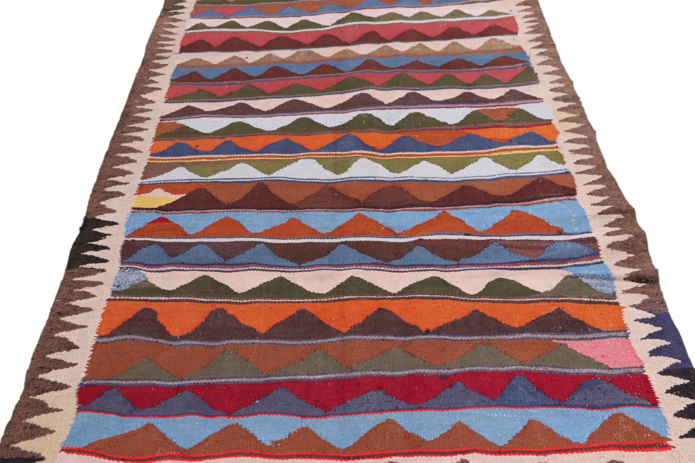 This handwoven Kilim Fars combines Persian patterns with the old tradition of flat fabrics. It represents a beautiful composition of contemporary Persian elements and a modern style. Due to the carpet's geometric patterns and its warm colours, this type of rug is extremely popular in modern interior magazines. Additionally, this Kilim can be used in many different ways. Whether you would like to use it as a bed cover or as a carpet in front of your sofa – a Kilim Fars fulfils nearly all wishes.