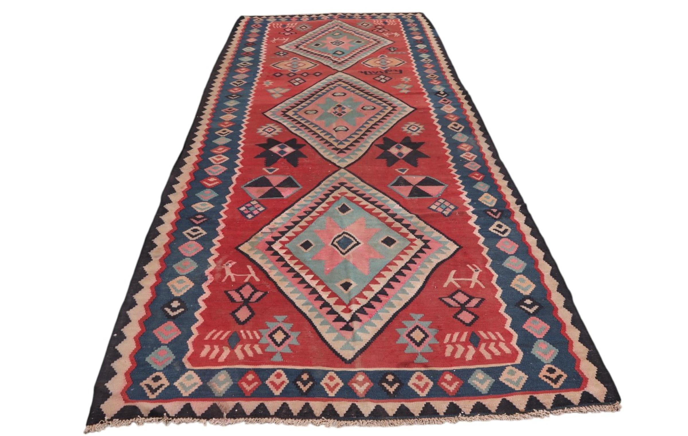 These kilim rugs show a decisive difference to hand-knotted rugs - they are woven by hand. Thus, they do not have a high pile of wool and are often flatter and rougher than knotted wool rugs. Their making is less elaborate and so they are usually much more affordable. As an advantage, kilim rugs are also much lighter and can be laid out from the front and back side. Hand-woven kilims originally come from the former Persia and are now also often made in Afghanistan. They have rather simple, straightforward patterns, which are determined by their weaving technique.