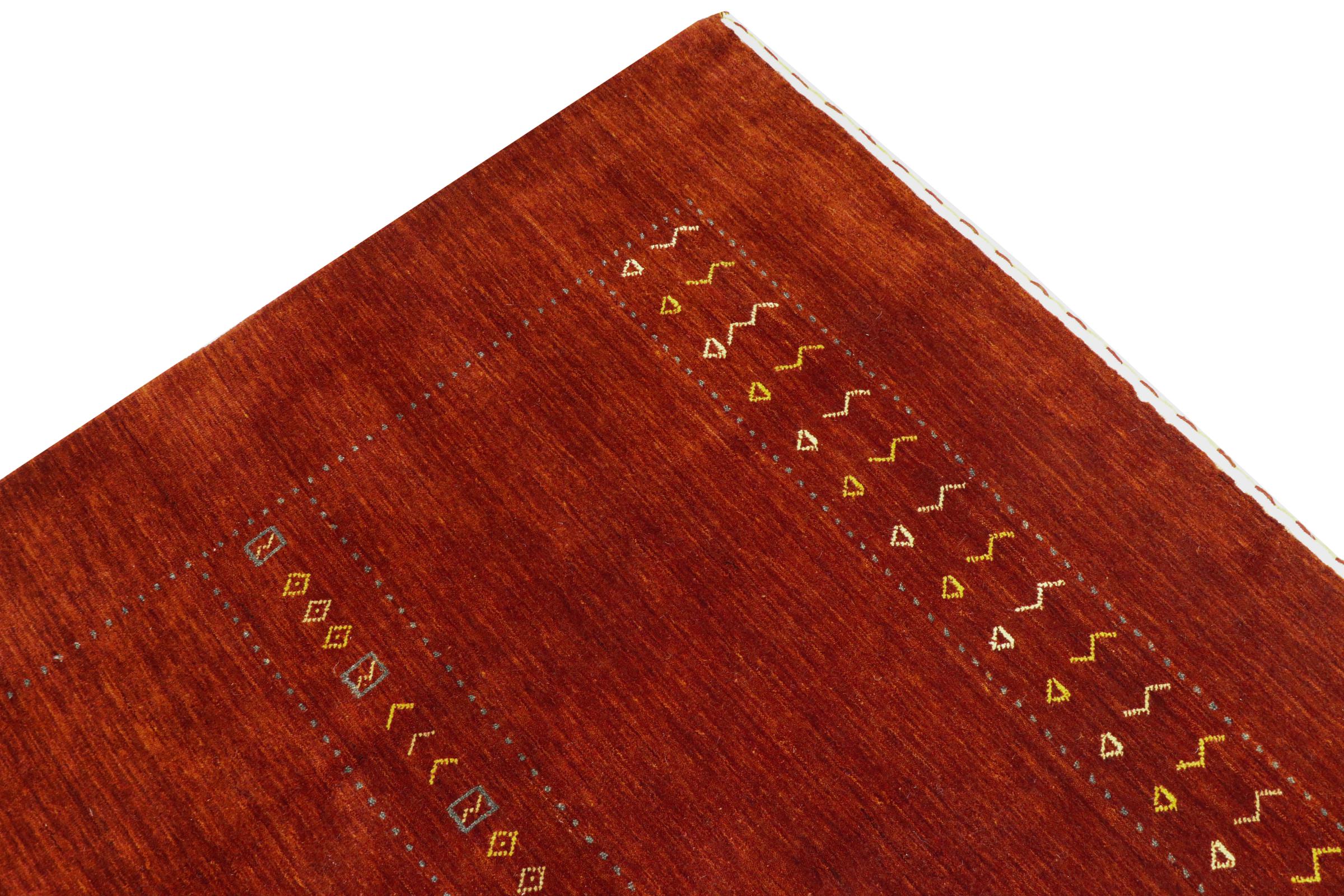 This Loom Gabbeh Lori rug was crafted by hand with a new knotting technique in the small town of Bhadohi in India. Beautiful and modern rugs in Gabbeh design and with a clearly outlined layout are crafted here. High-quality sheep wool is used for this kind of rug. The pile is soft, comfortable and robust. Definitely a very nice piece of handicraft for anyone who values an affordable hand-knotted carpet with its own character.