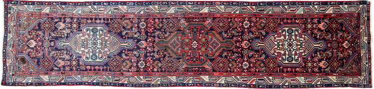 This carpet from Loristan was traditionally made by the Lori nomads. Amuse yourself, looking at it with its bright colours and the patterns, which are typical for this kind of Persian carpets.