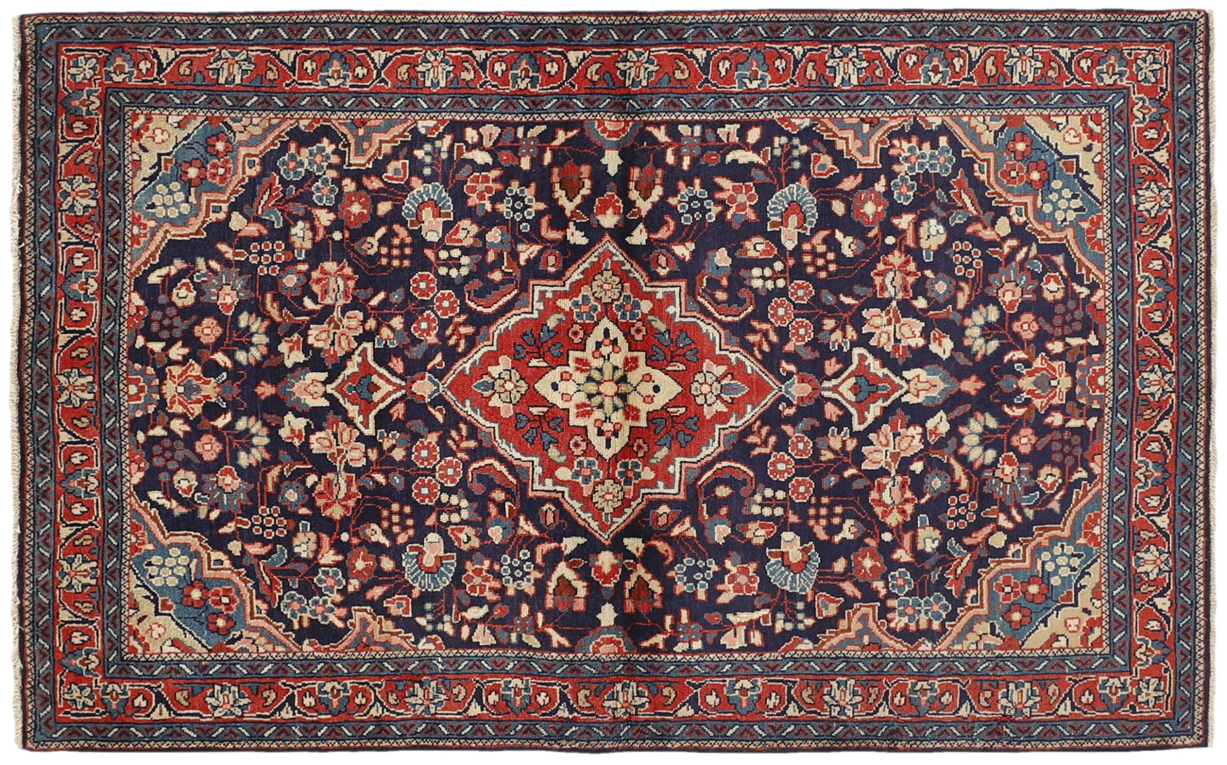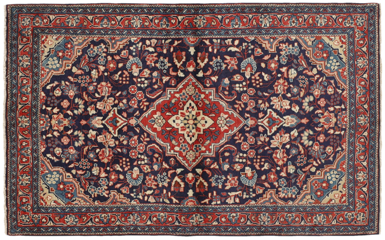 Carpet ID: 299827008509396 Size: 206x127 cm Thickness: ap. 12 mm Knot density: 160 000 - 200 000 / m² Manufacturing: Knotted by hand Pile: Handspun wool Warp: Cotton Origin: Persia Age: New Weight: ap. 9 kg Also know as Mahalat In stock: Unique - Only 1 in stock