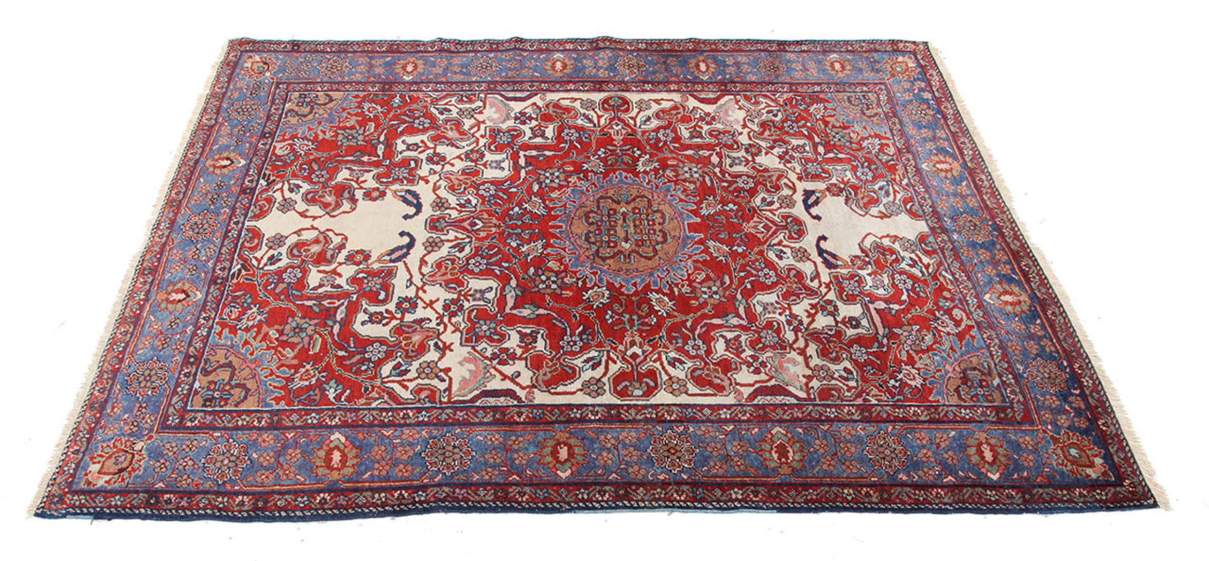 Carpet ID: 309986004103632 Size: 180x140 cm Thickness: ap. 12 mm Knot density: 200 000 - 250 000 / m² Manufacturing: Knotted by hand Pile: Handspun wool Warp: Sheep wool Condition / Conservation Perfect Origin: Persia Age: Antique, over 80 years Weight: ap. 9 kg Also know as Huseinabad In stock: Unique - Only 1 in stock
