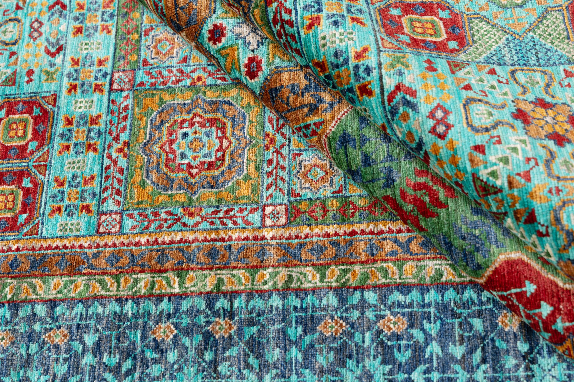 This rug is made of hand spun sheep wool of the highest quality. Especially in Iran (former Persia), Afghanistan and Pakistan wool is still spun by hand before the actual knotting of the rug begins. Wool has proven itself as a natural and extremely hard-wearing material over centuries. Among other things, it has dirt-repellent and heat-insulating properties. At the same time, wool is incomparably soft and has a natural shine.