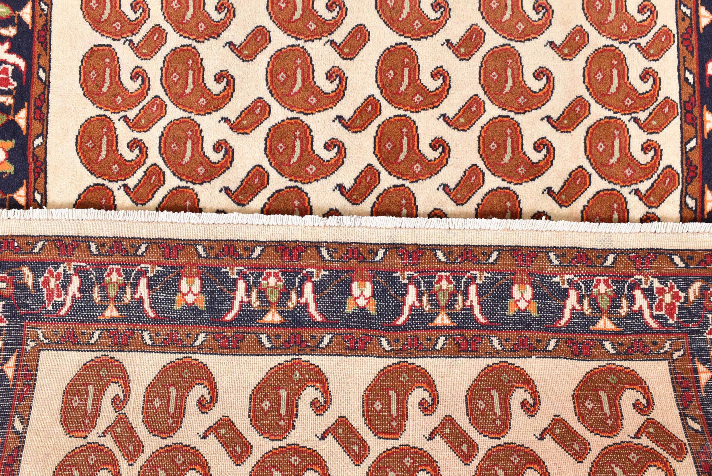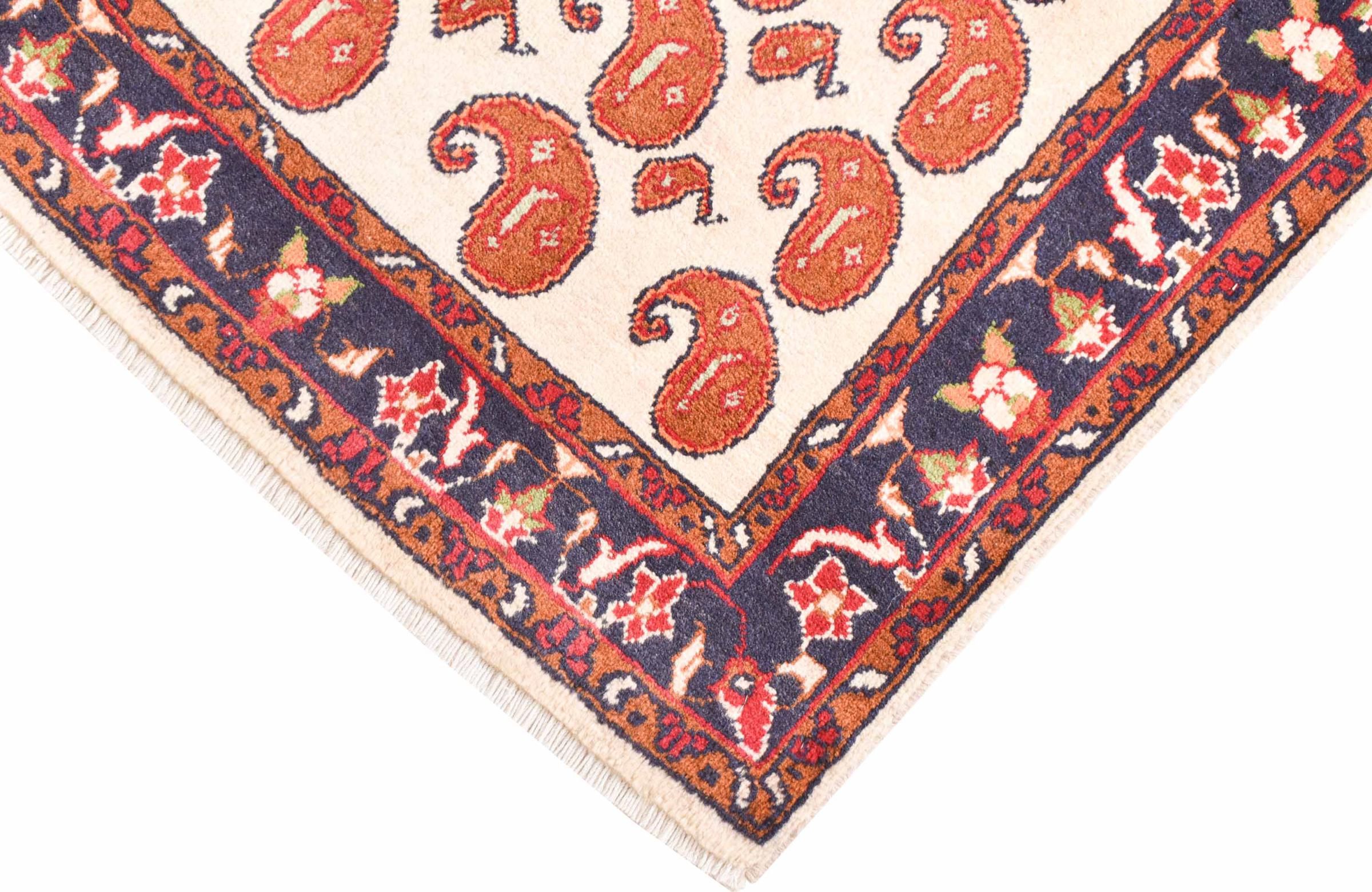 This rug belongs to village and nomadic rugs from Iran, formerly Persia. This type of rug is knotted by hand in smaller towns and villages in old tradition. Even nomads still knot Persian rugs in the open air. The rugs are knotted without a draft and completely from the mind. They are characterized by classical ornaments, which are arranged in straight and geometrical patterns. Thanks to their cultural-traditional origin, these rugs have a unique character that embodies ancient Persia.