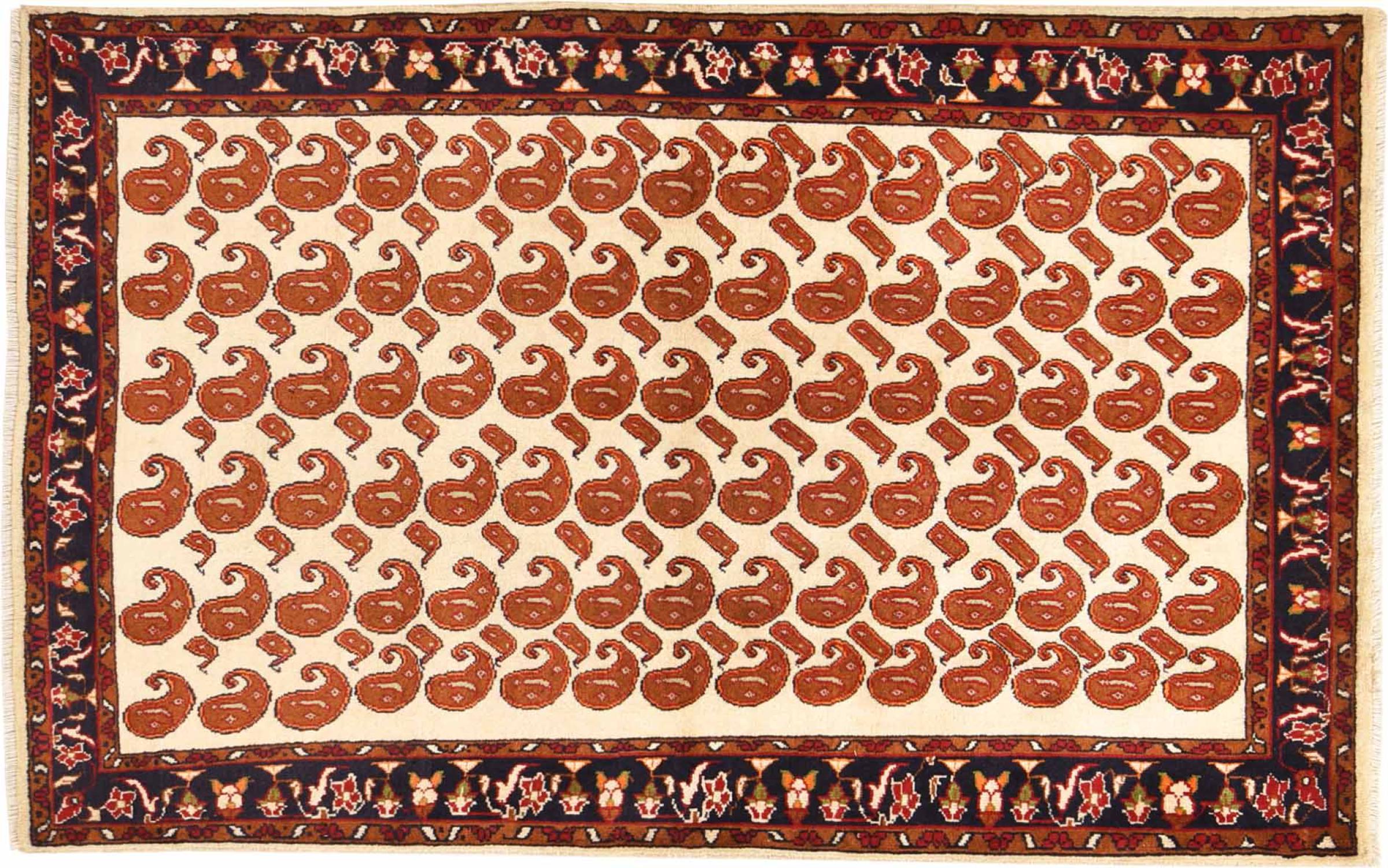 Carpet ID: 300981001596308 Size: 174x110 cm Thickness: ap. 12 mm Knot density: 128 000 - 160 000 / m² Manufacturing: Knotted by hand Pile: Handspun wool Warp: Cotton Origin: Persia Age: New Weight: ap. 7 kg Also know as Meriban In stock: Unique - Only 1 in stock