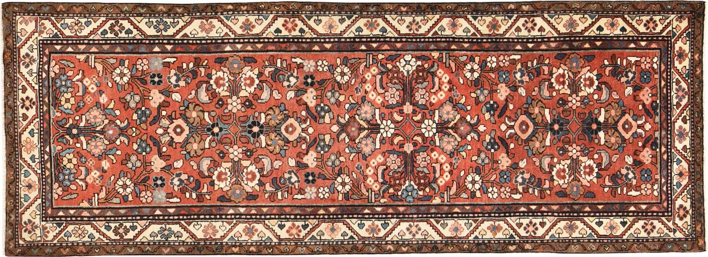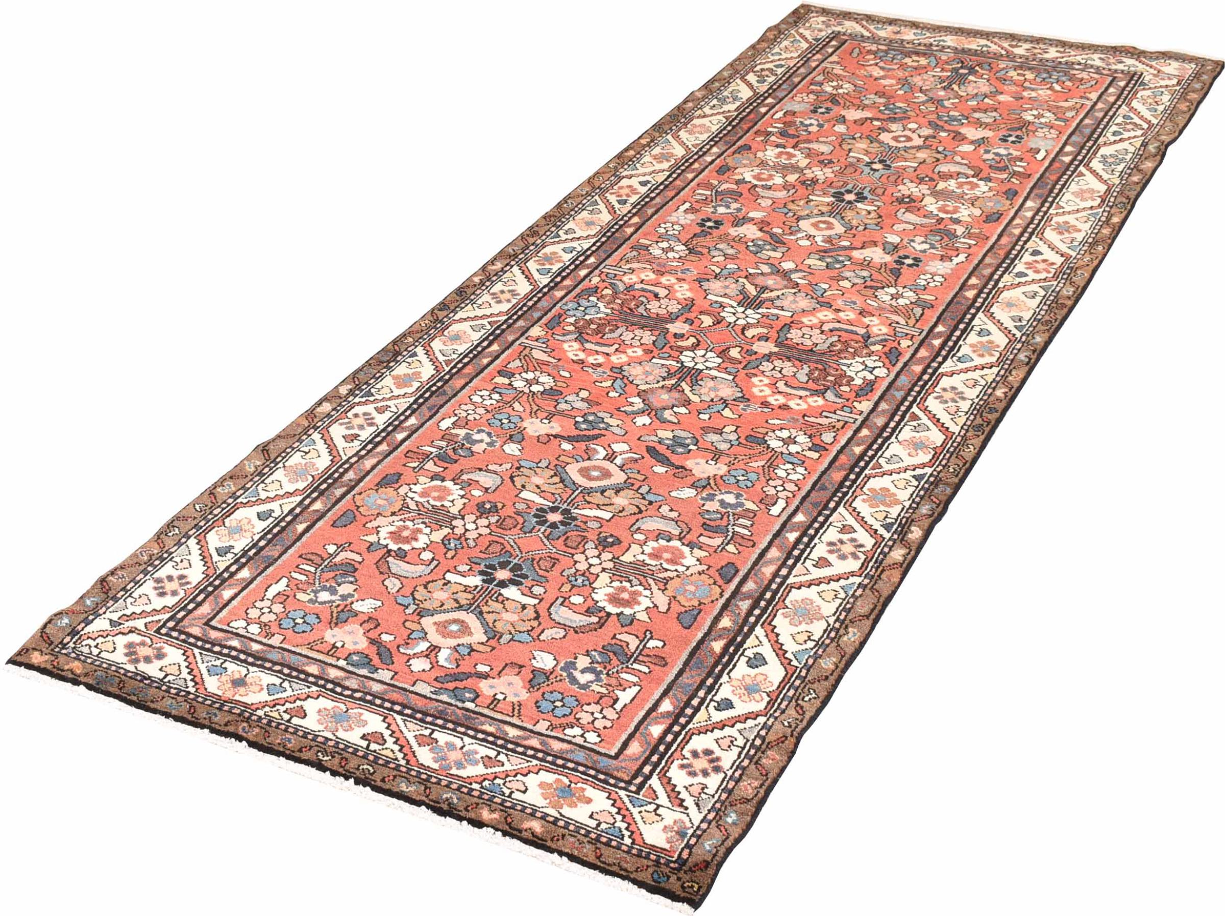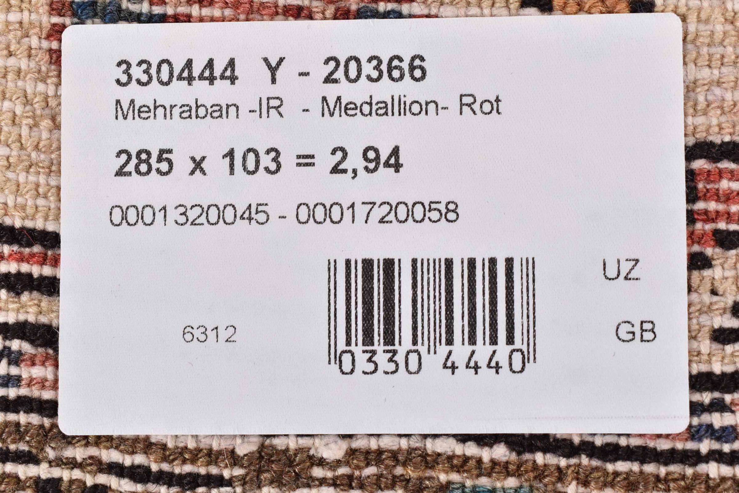 Carpet ID: 300877006616816 Size: 284x104 cm Thickness: ap. 12 mm Knot density: 128 000 - 160 000 / m² Manufacturing: Knotted by hand Pile: Handspun wool Warp: Cotton Origin: Persia Age: New Weight: ap. 10 kg Also know as Meriban In stock: Unique - Only 1 in stock