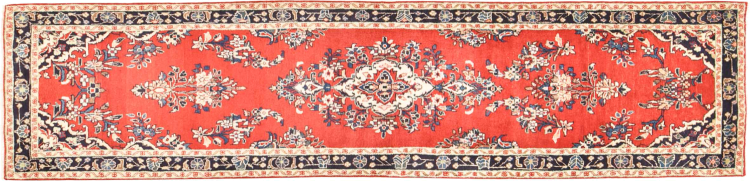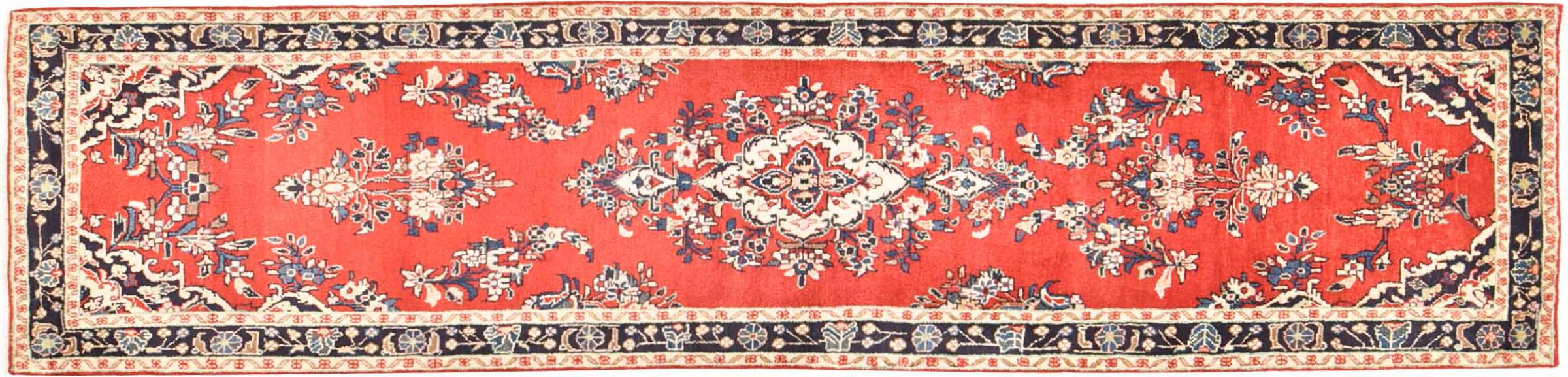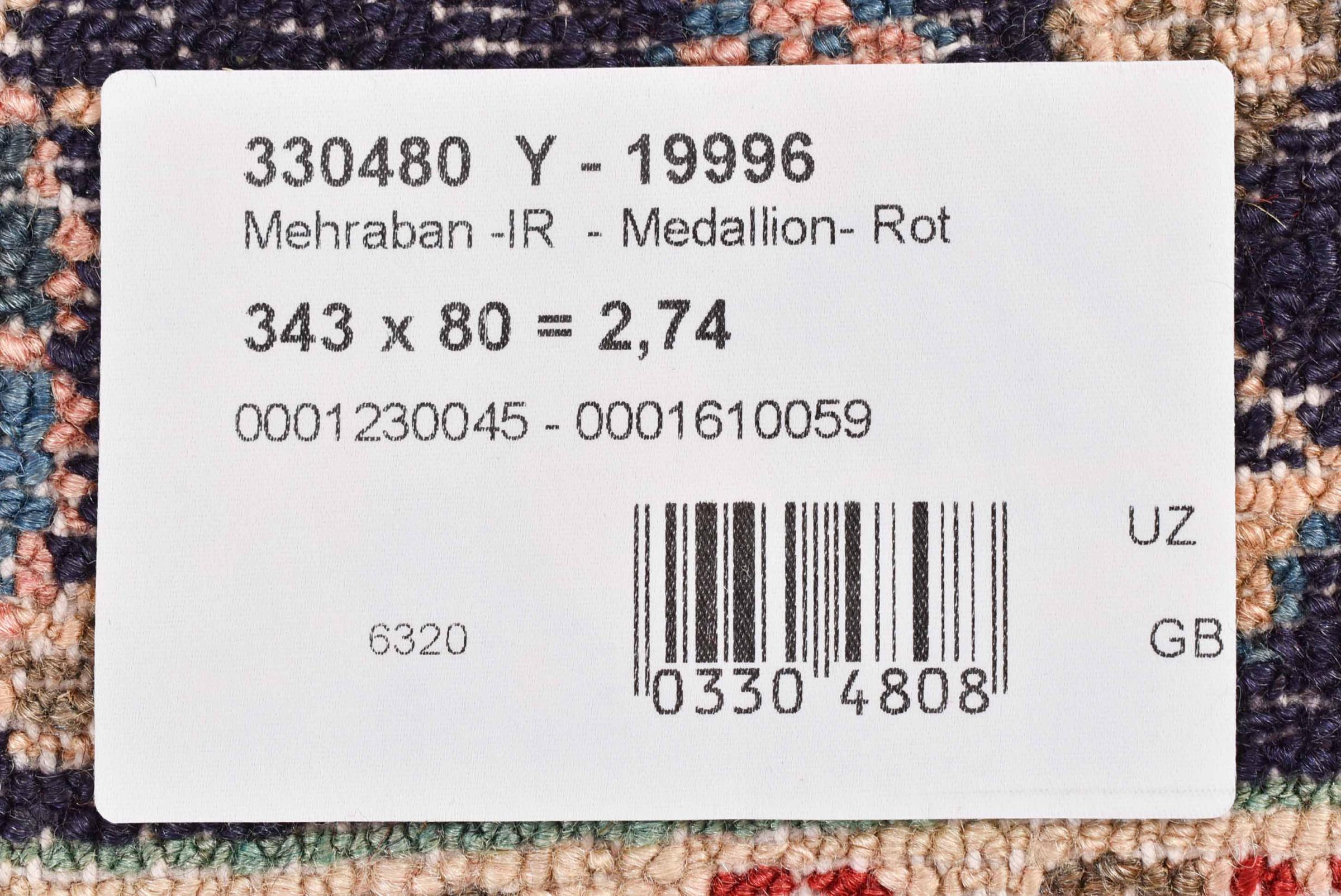 Carpet ID: 300908003414214 Size: 344x79 cm Thickness: ap. 12 mm Knot density: 128 000 - 160 000 / m² Manufacturing: Knotted by hand Pile: Handspun wool Warp: Cotton Origin: Persia Age: New Weight: ap. 10 kg Also know as Meriban In stock: Unique - Only 1 in stock